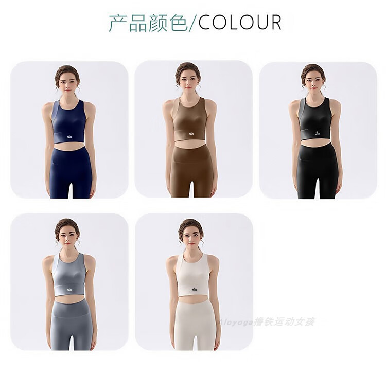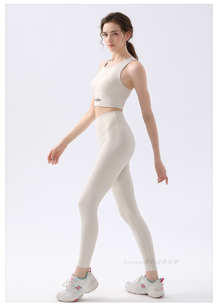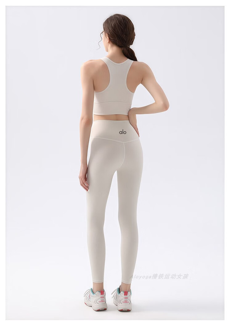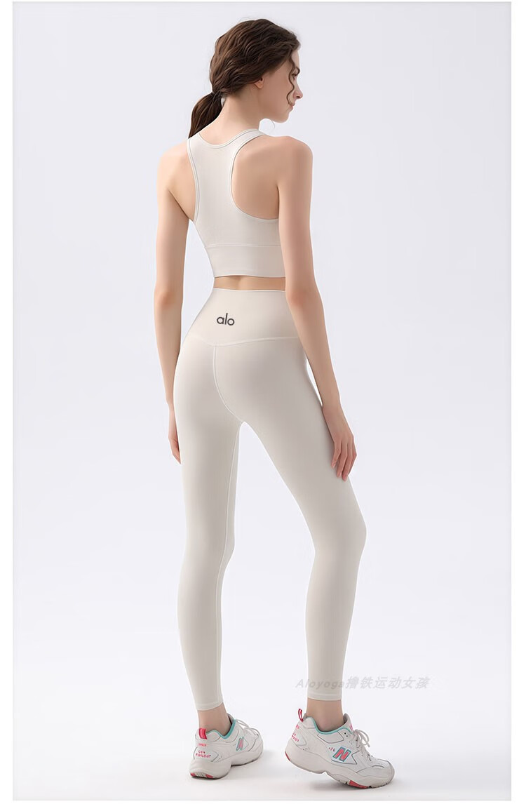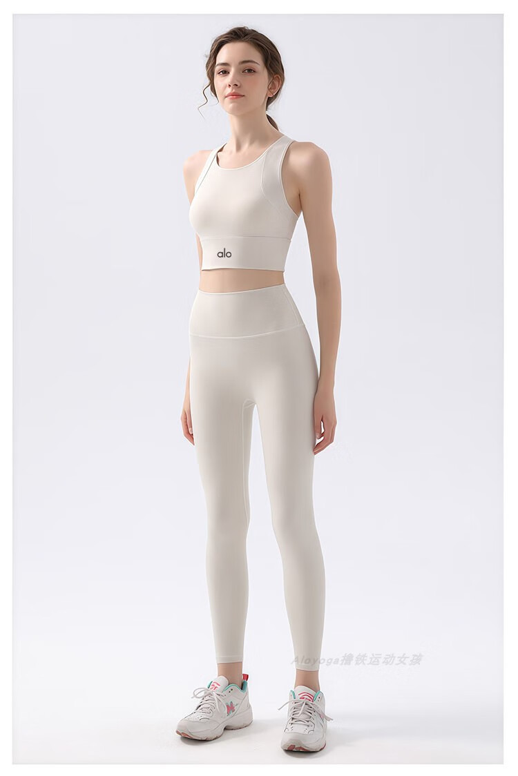 ALO YOGA Yoga Suit Women's Nude Shockproof Pilates Fitness Vest Two-piece Flagship Ivory Top + Pants M 100-110Jin Jin equals 0.5 kg