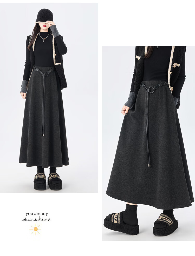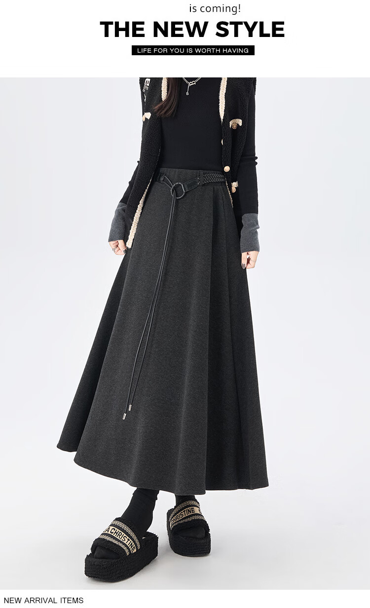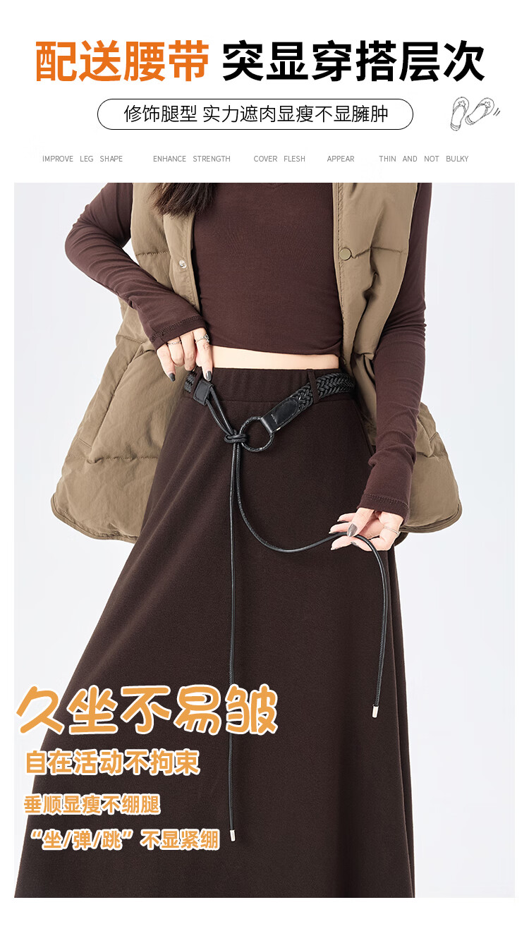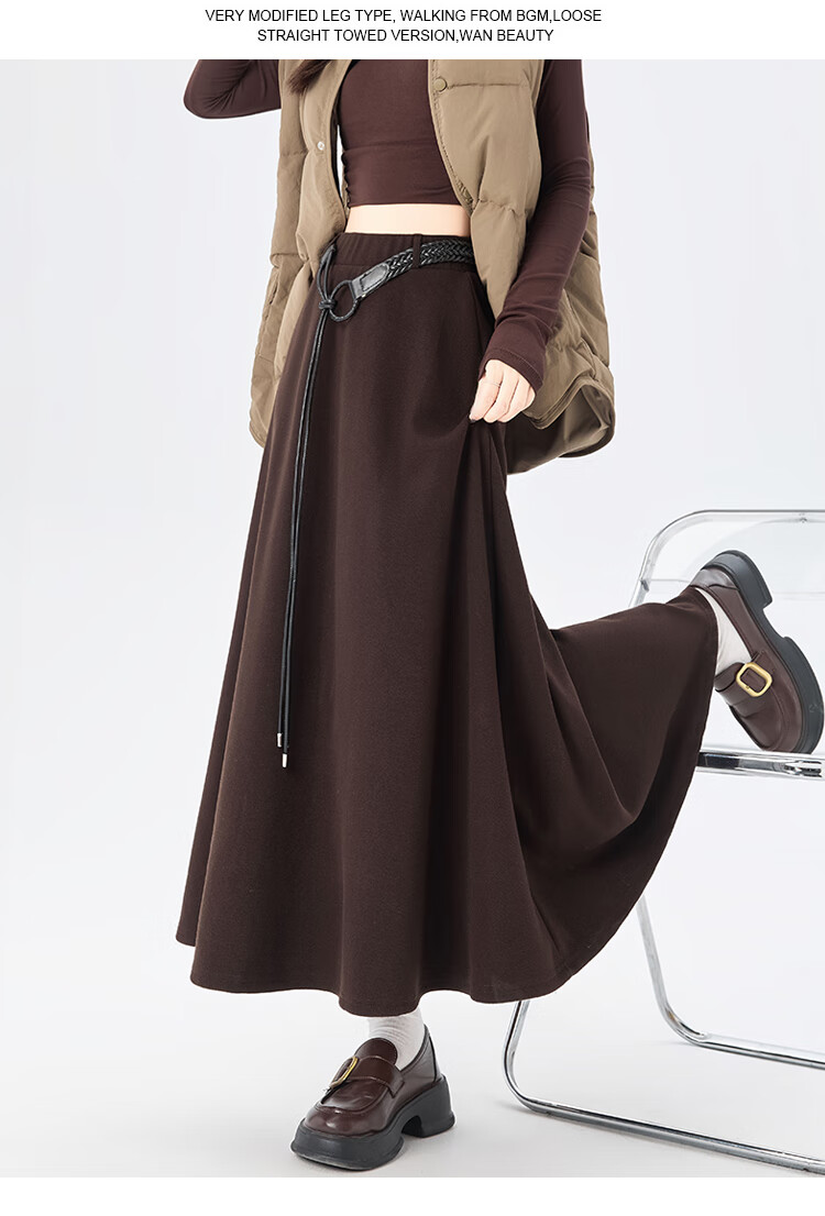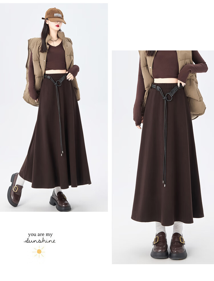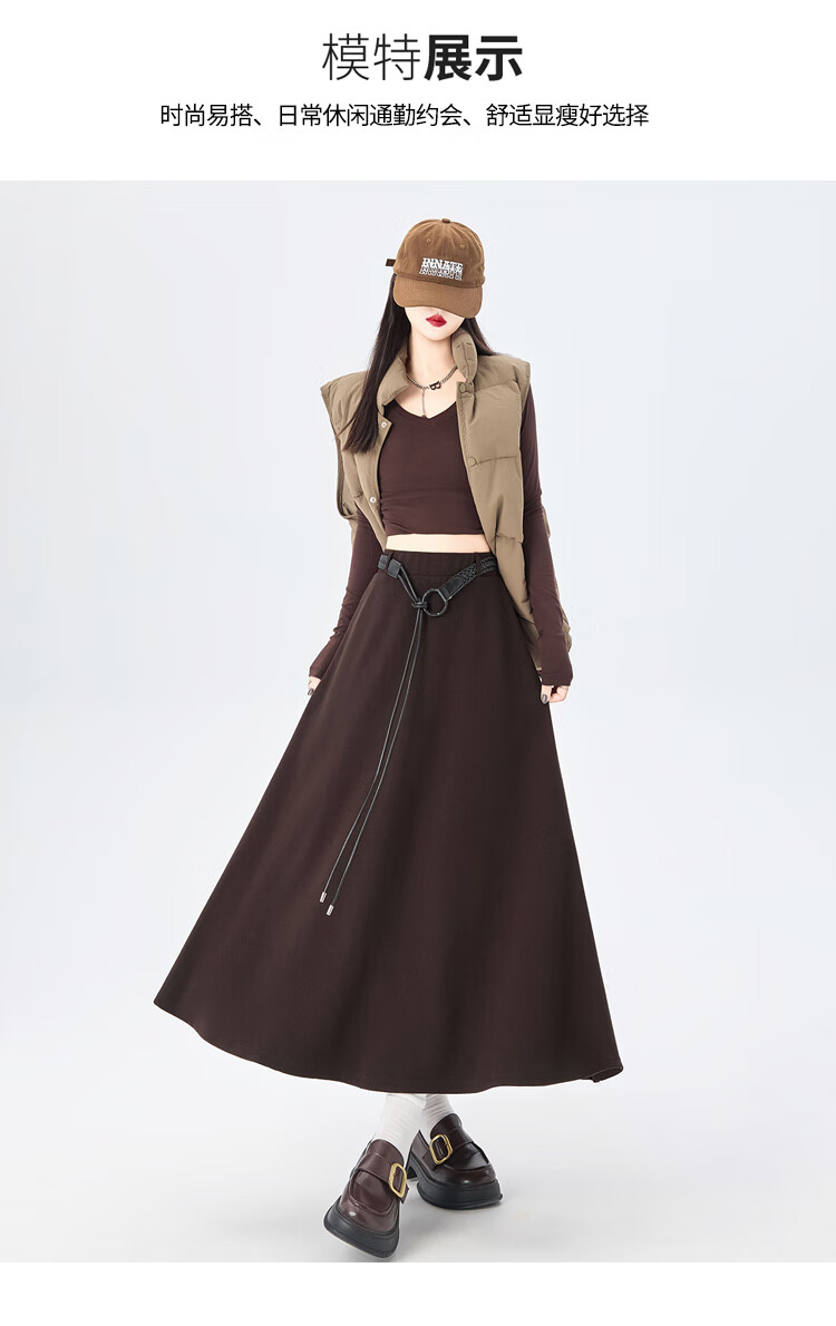 Skirt Autumn and Winter 2025 New Brown Slim Retro High Waist Maillard Temperament A-Line Long Skirt Versatile Gray M 80-105Jin Jin is equal to 0.5 kg