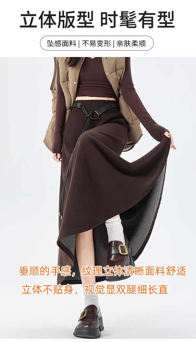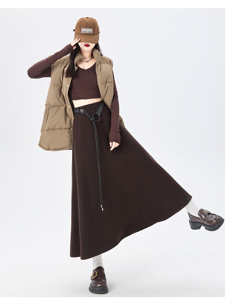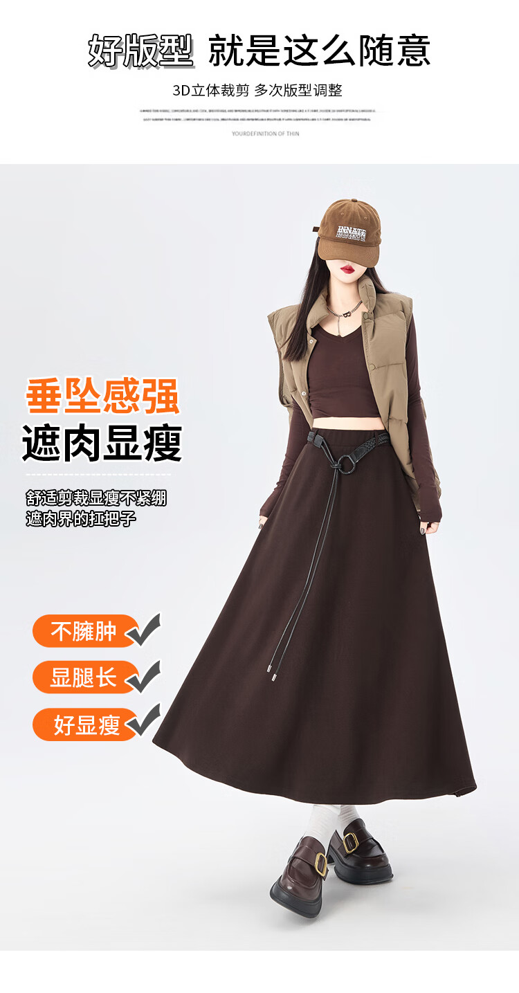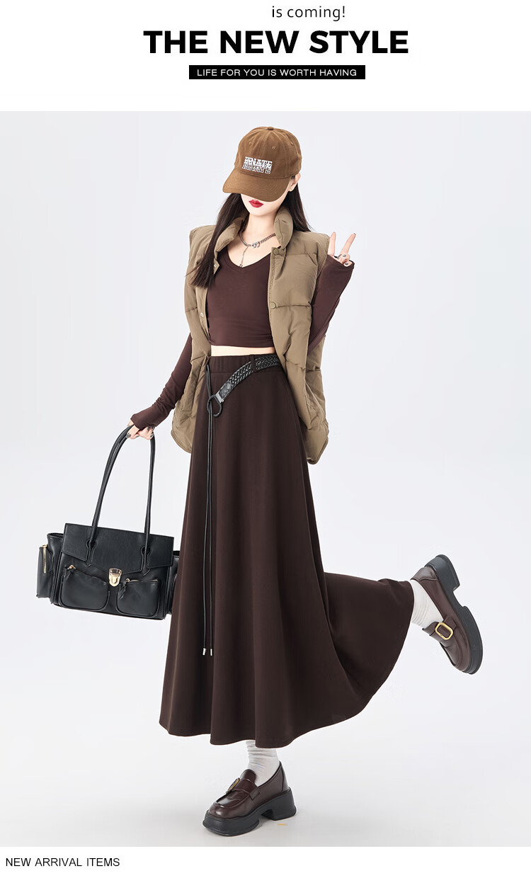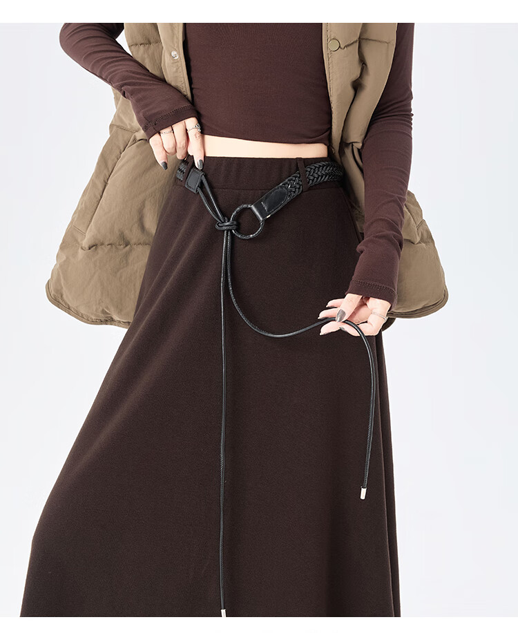 Skirt Autumn and Winter 2025 New Brown Slim Retro High Waist Maillard Temperament A-Line Long Skirt Versatile Gray M 80-105Jin Jin is equal to 0.5 kg