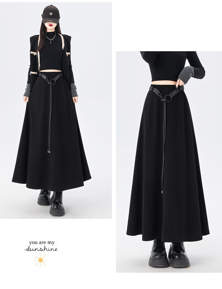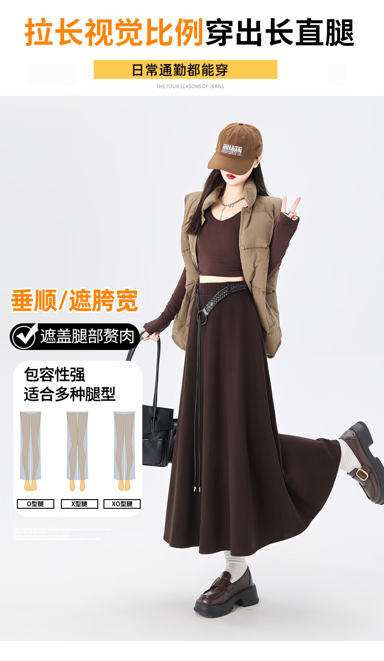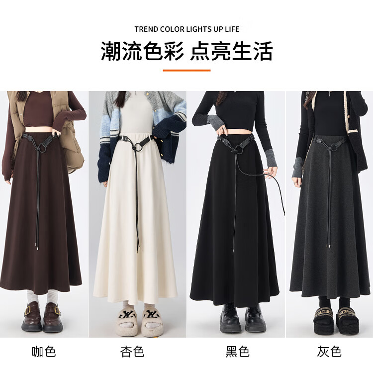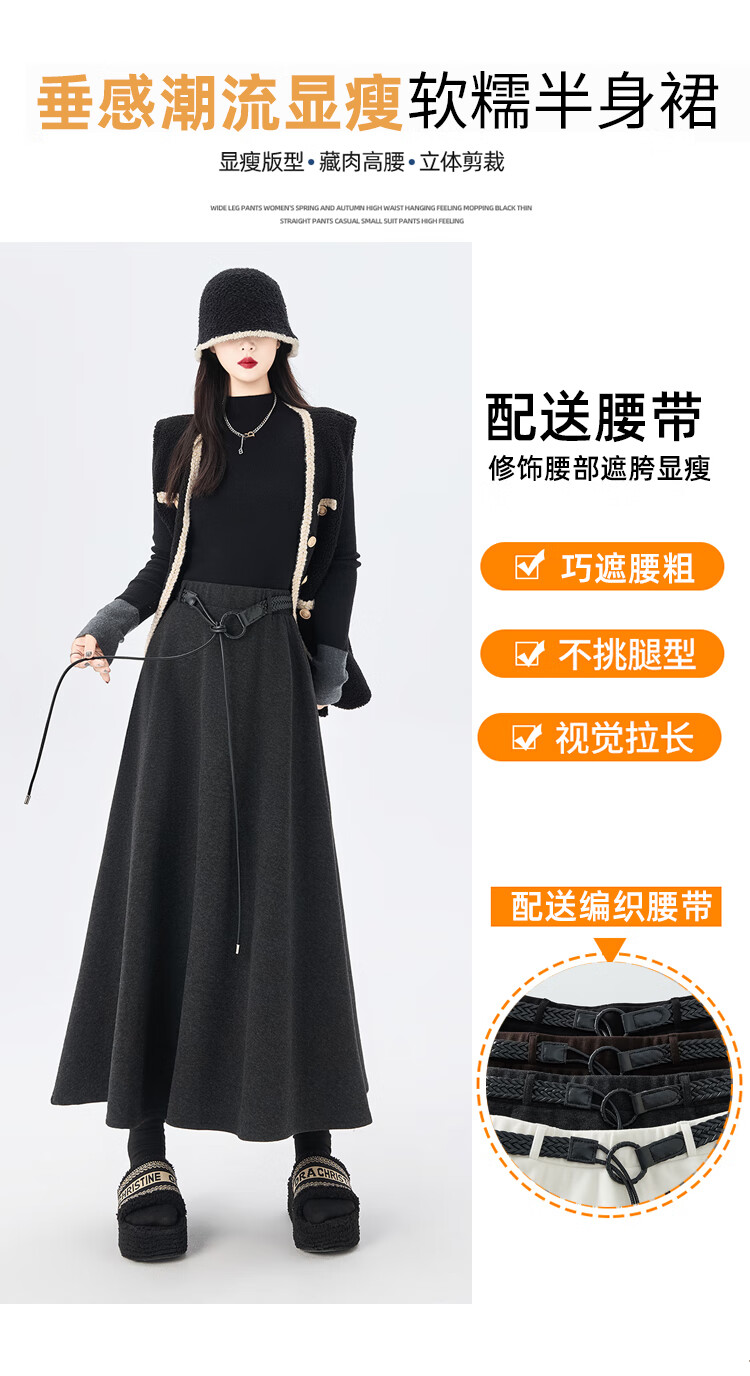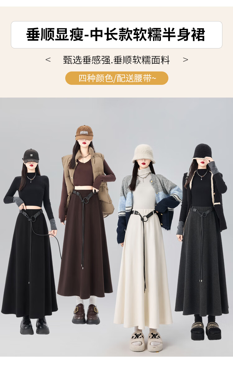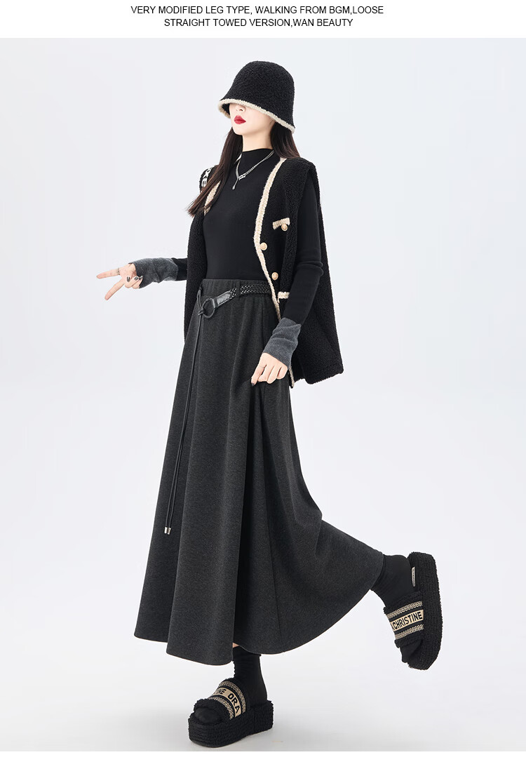 Skirt Autumn and Winter 2025 New Brown Slim Retro High Waist Maillard Temperament A-Line Long Skirt Versatile Gray M 80-105Jin Jin is equal to 0.5 kg