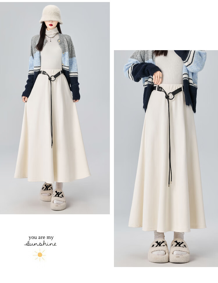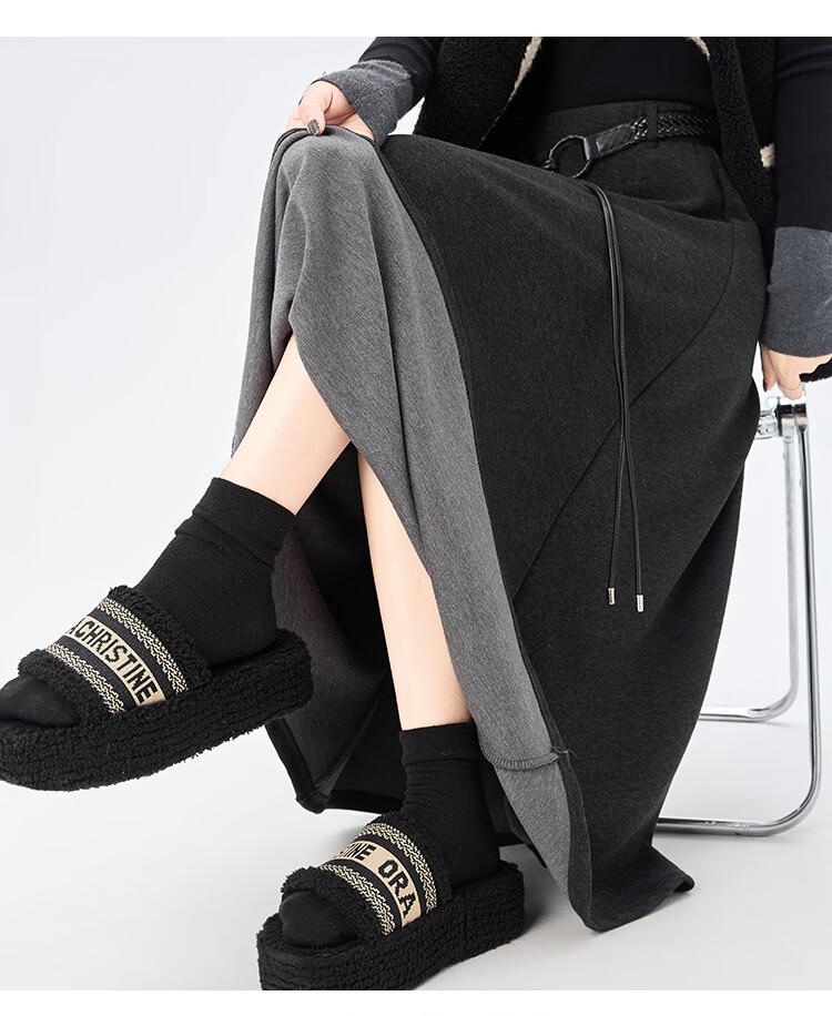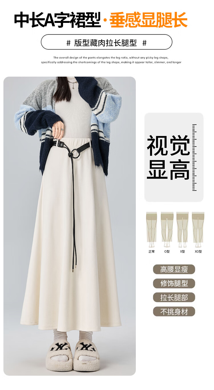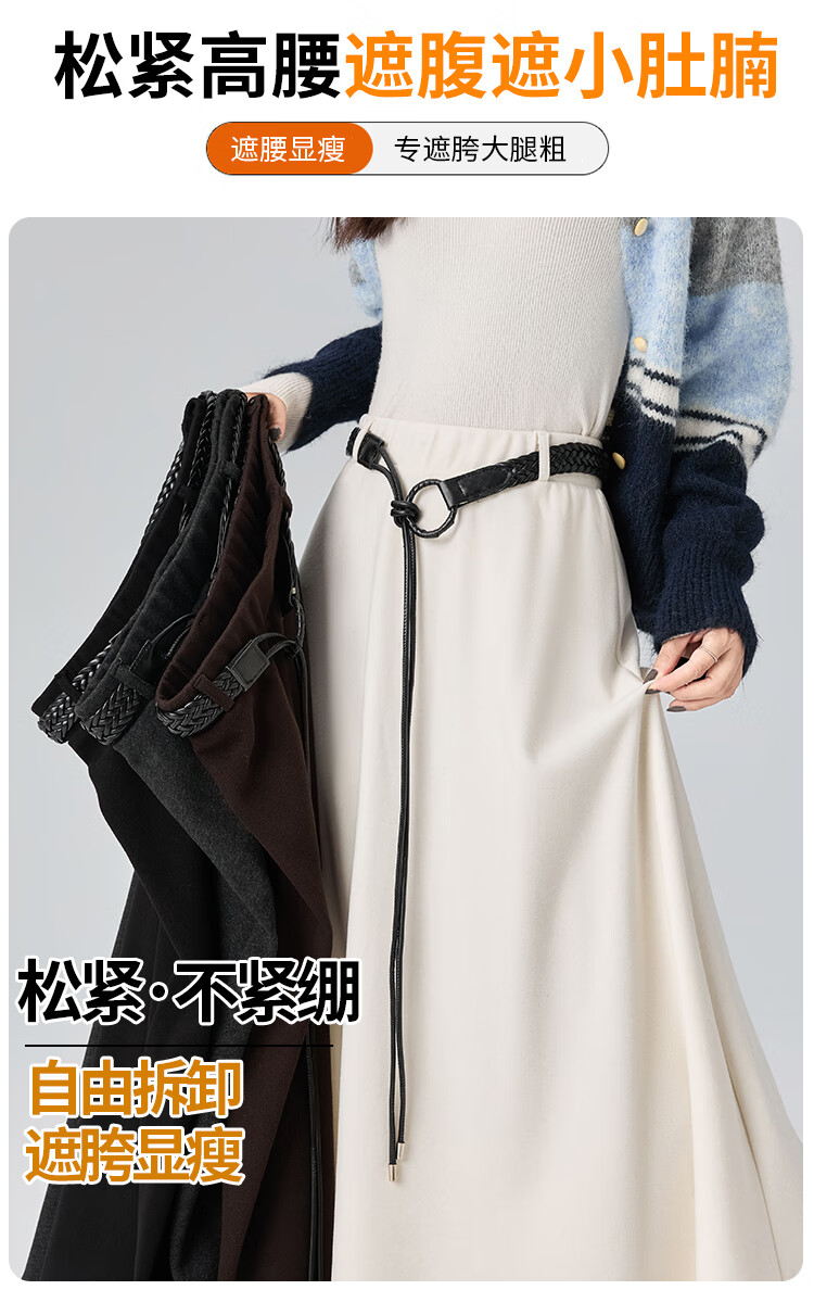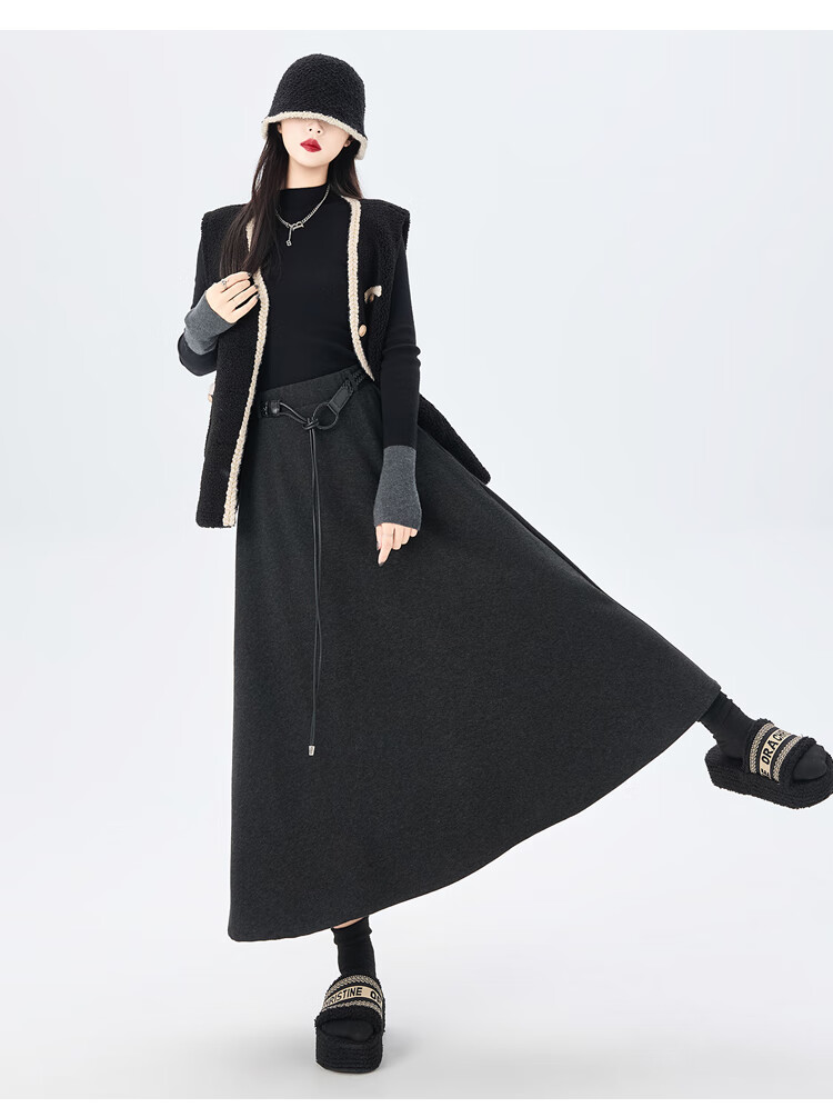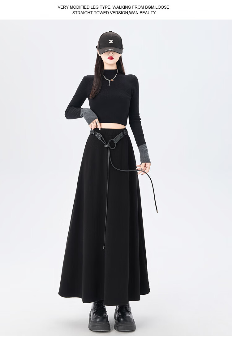 Skirt Autumn and Winter 2025 New Brown Slim Retro High Waist Maillard Temperament A-Line Long Skirt Versatile Gray M 80-105Jin Jin is equal to 0.5 kg
