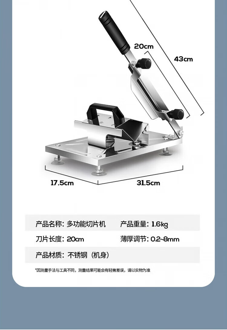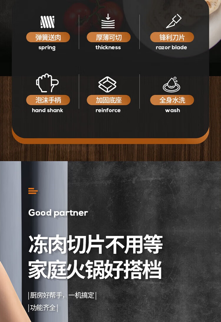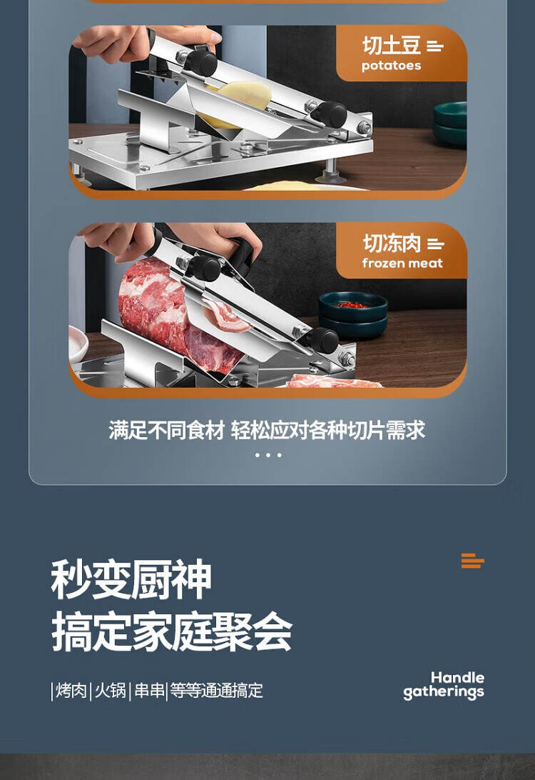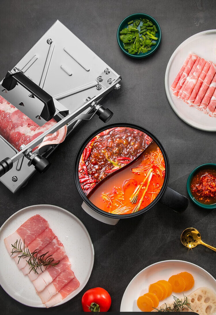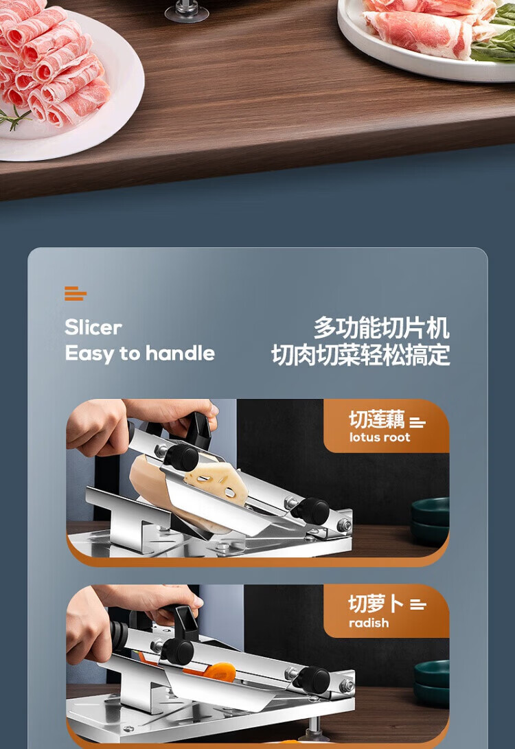 Meishute German meat slicer household mutton roll slicer meat slicer fat beef frozen meat planer hot pot vegetable cutter enlarged and thickened single machine + 10 frozen meat bags