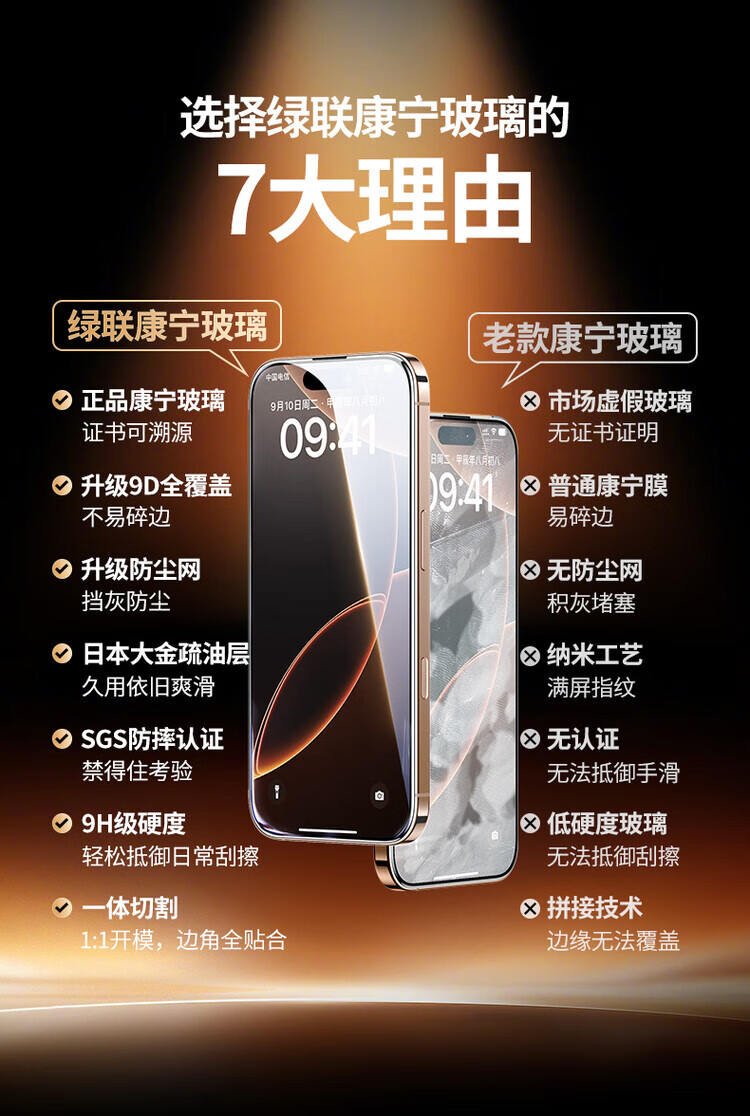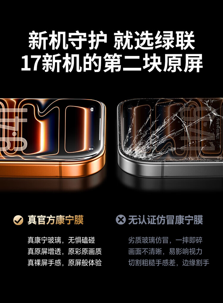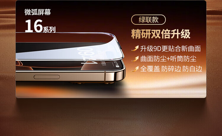 Green Alliance (UGREEN) authorized by Corning USA. Corning film anti-reflective film for iPhone17ProMax Apple 16P mobile phone film. Corning tempered film 15pro Gorilla Glass 13 new model. Ultra-clear 9D curved surface dustproof. Reinforced high alumina glass丨anti-explosion and anti-fall. 2-piece iPhone 16
