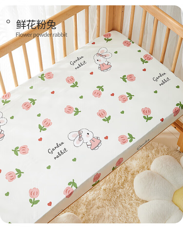 Li Mengsi crib fitted sheet children's spliced bed pure cotton Class A special baby bedding mattress cover customized flower pink rabbit (Class A quality, skin-friendly and breathable, comfortable sleep in all seasons) 60*150