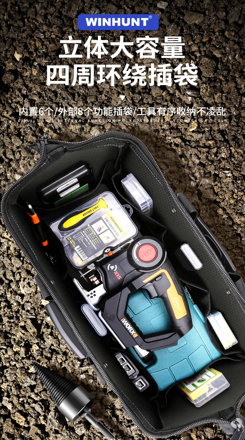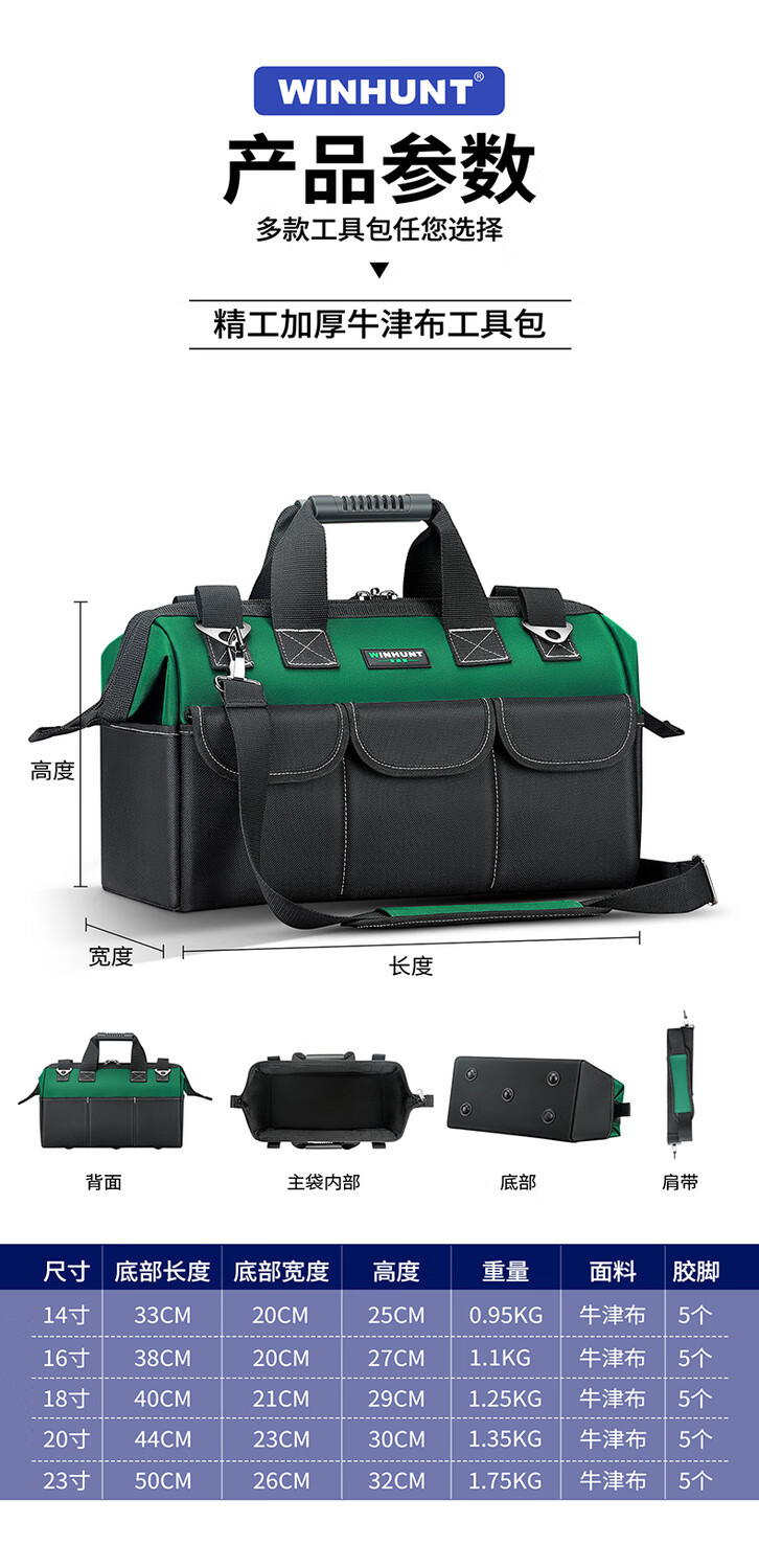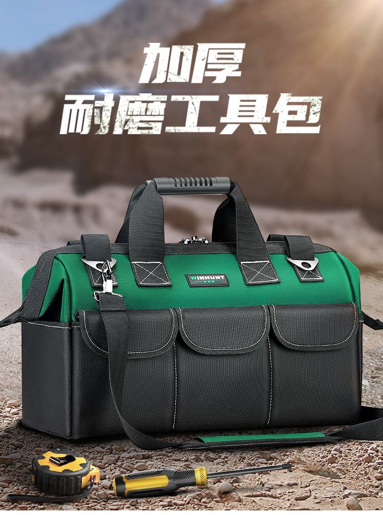 Shantou Lincun Electrician's Tool Bag, sturdy and durable, multi-functional repair-specific canvas thickened portable woodworking tool bag, thickened material 14-inch tool bag 13.8