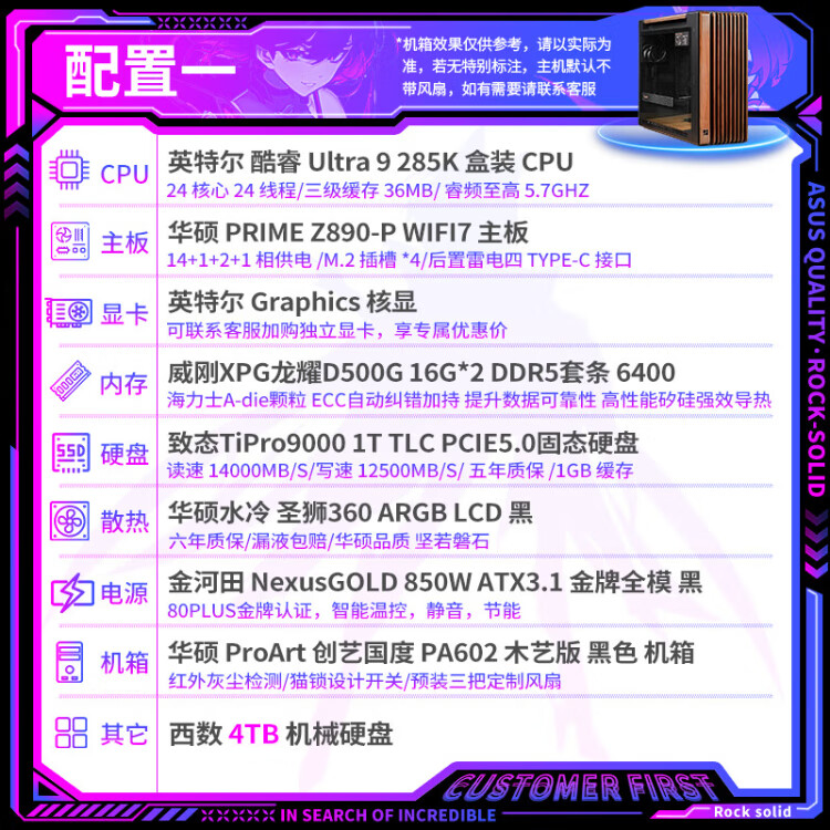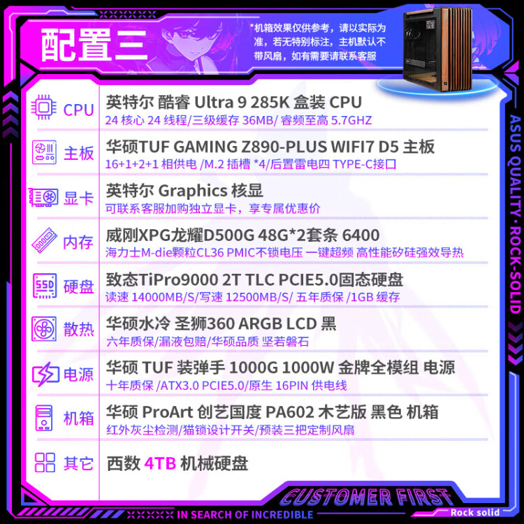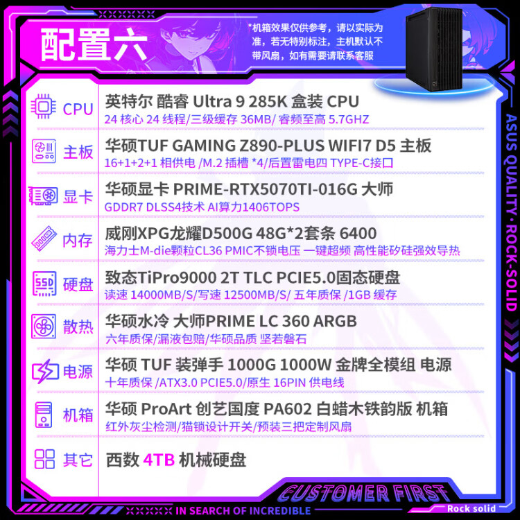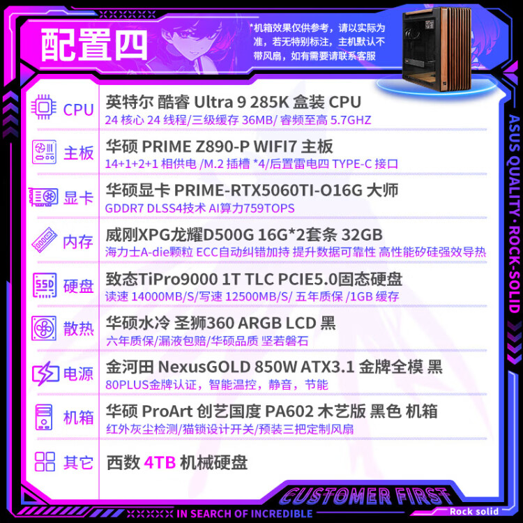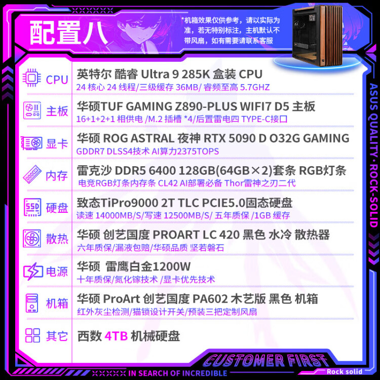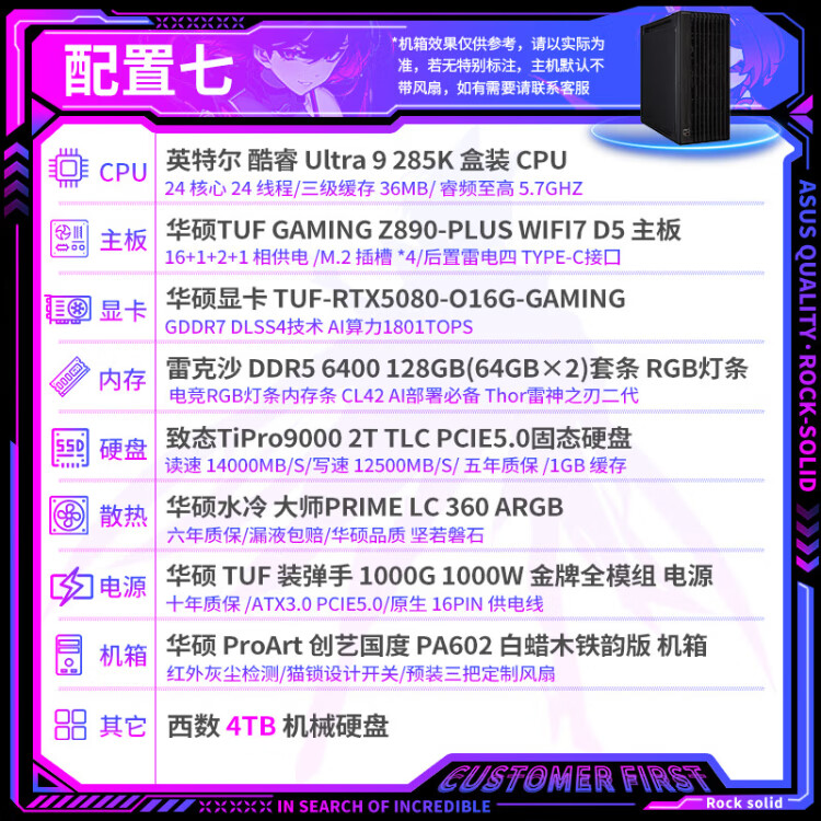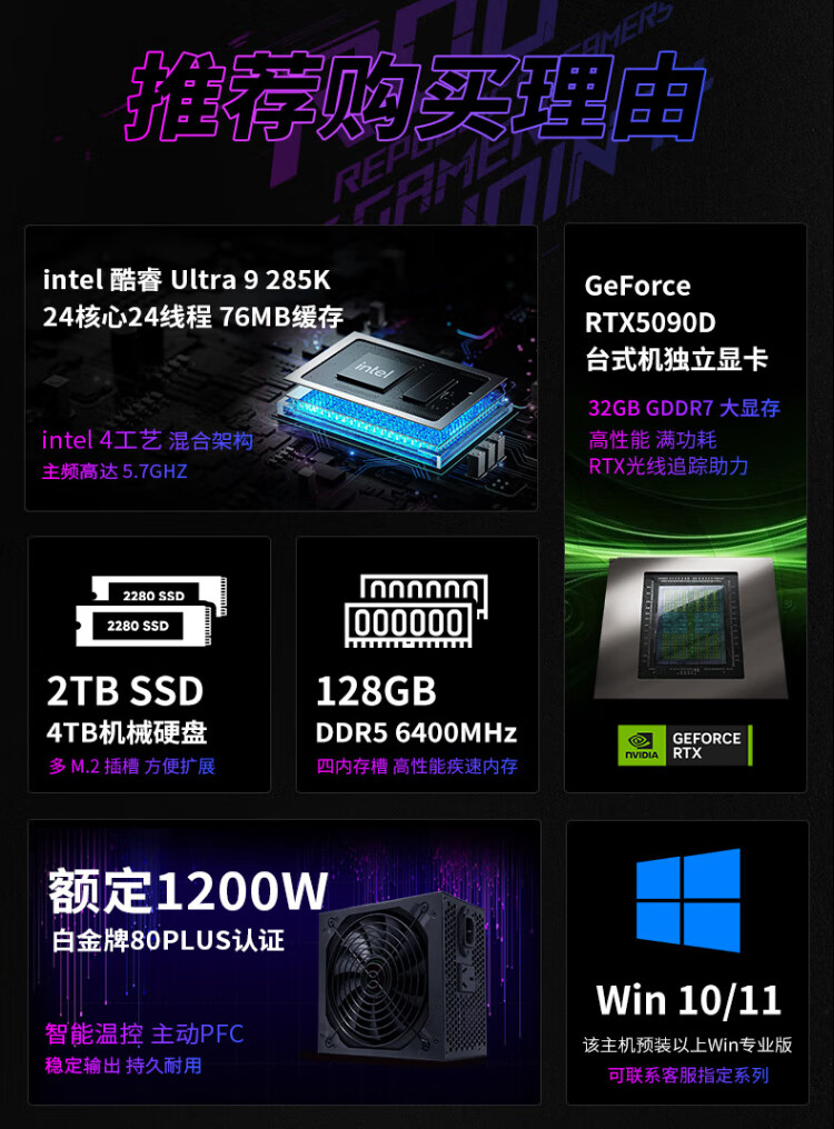 ASUS Ultra 9 285K/RTX5090/RTX5080 graphics workstation AI computing 3D rendering video creation studio designer dedicated desktop assembly host configuration three 285K+96G+2TB+4TB mechanical