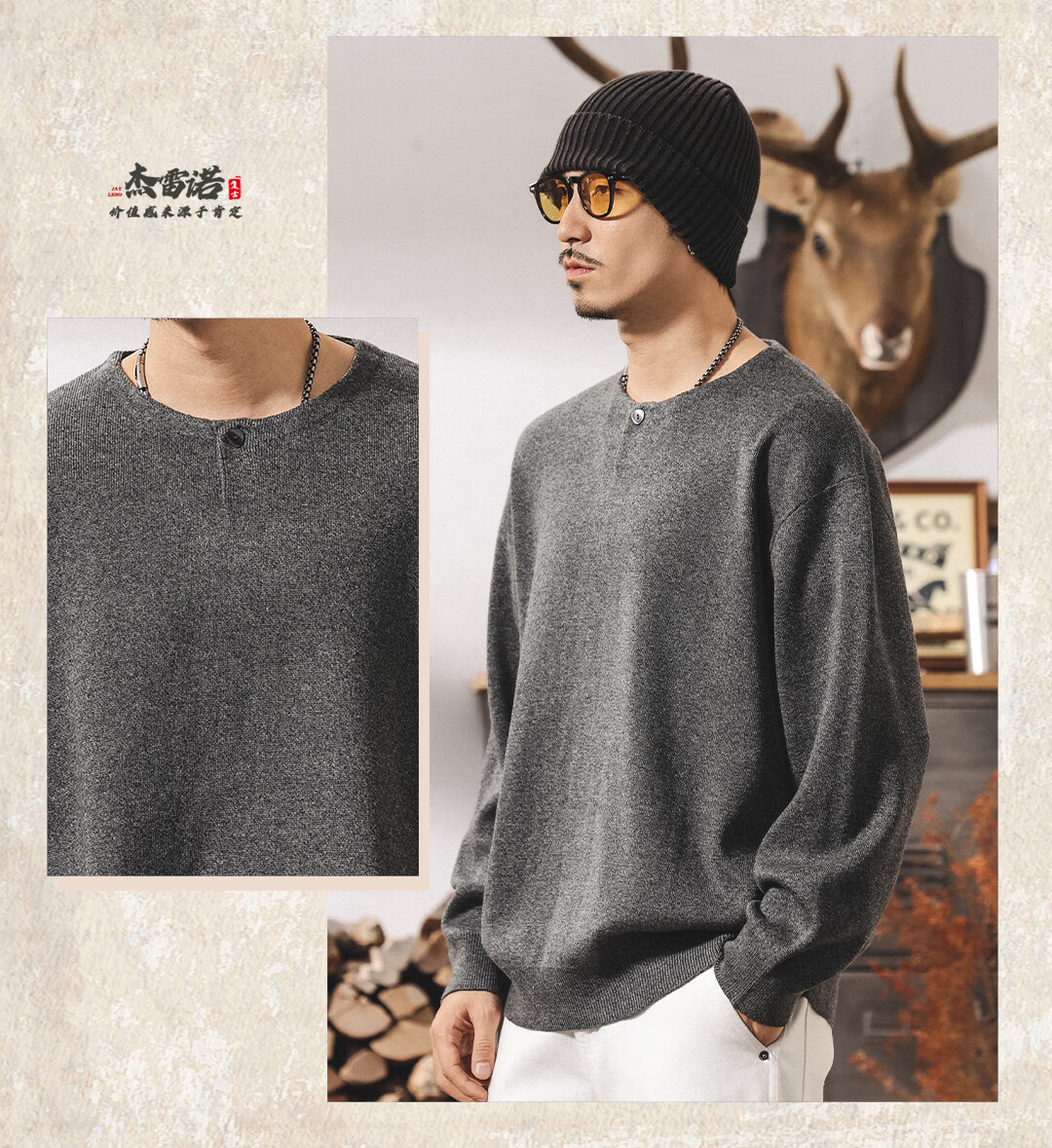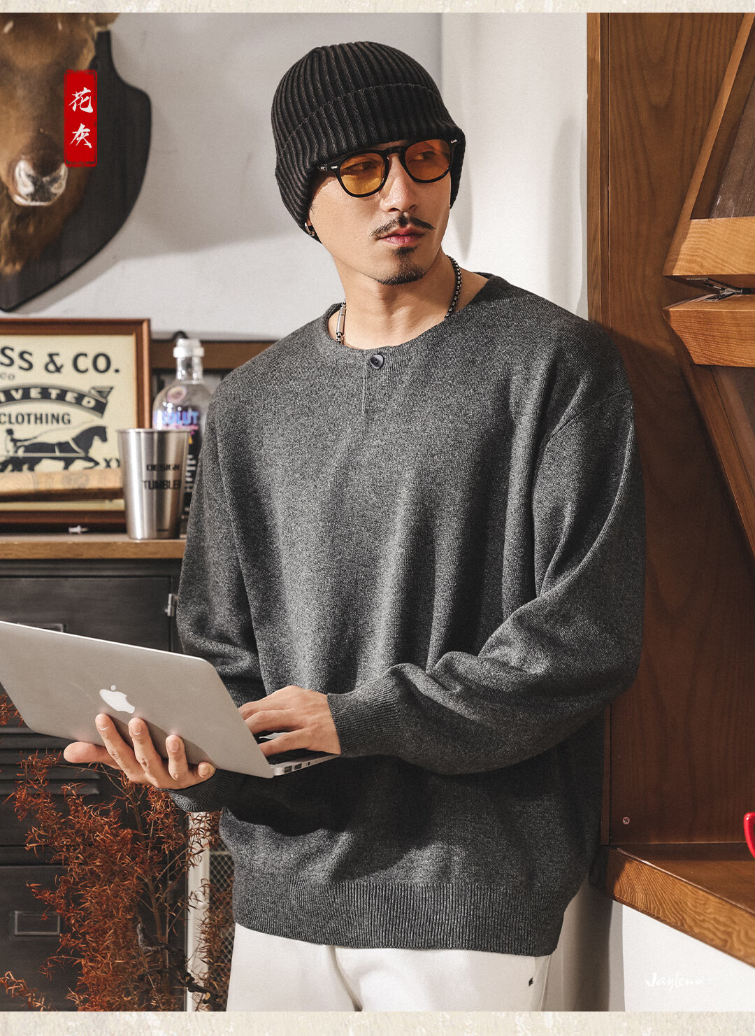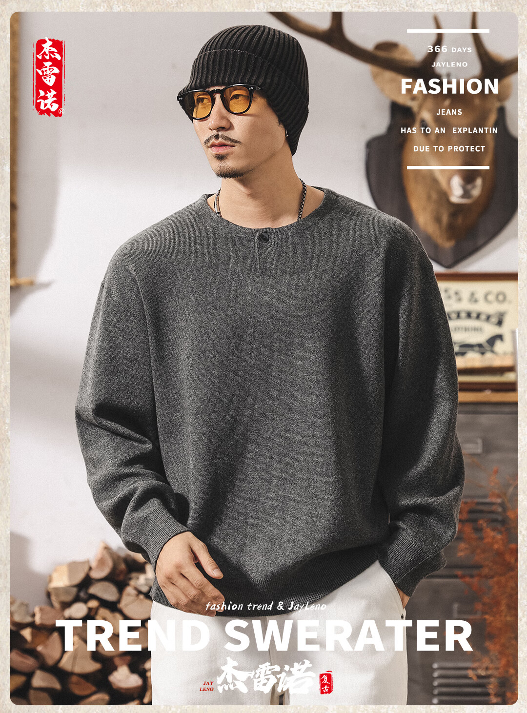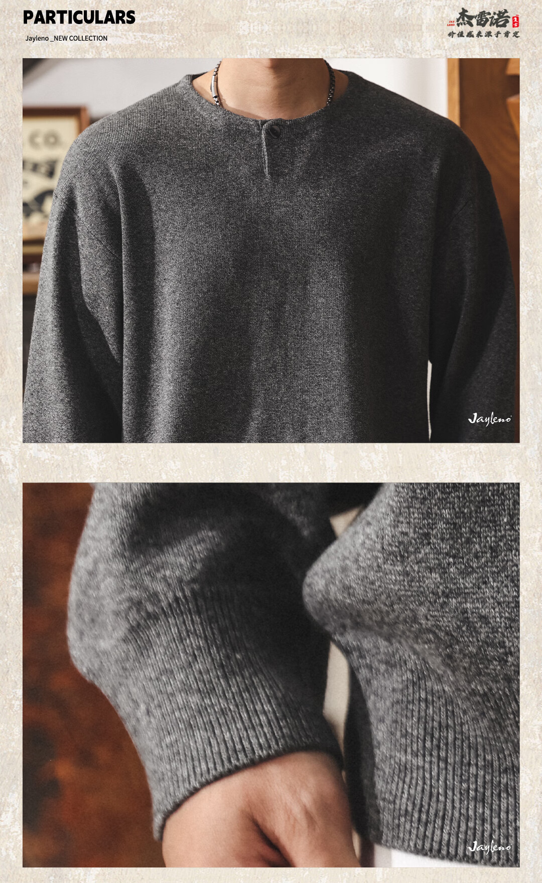 Jay Leno American style 520g heavy retro sweater for men winter thickened 2025 new lazy style casual henley collar sweater floral gray heavy 520g M suitable for 115-130Jin Jin equals 0.5 kg