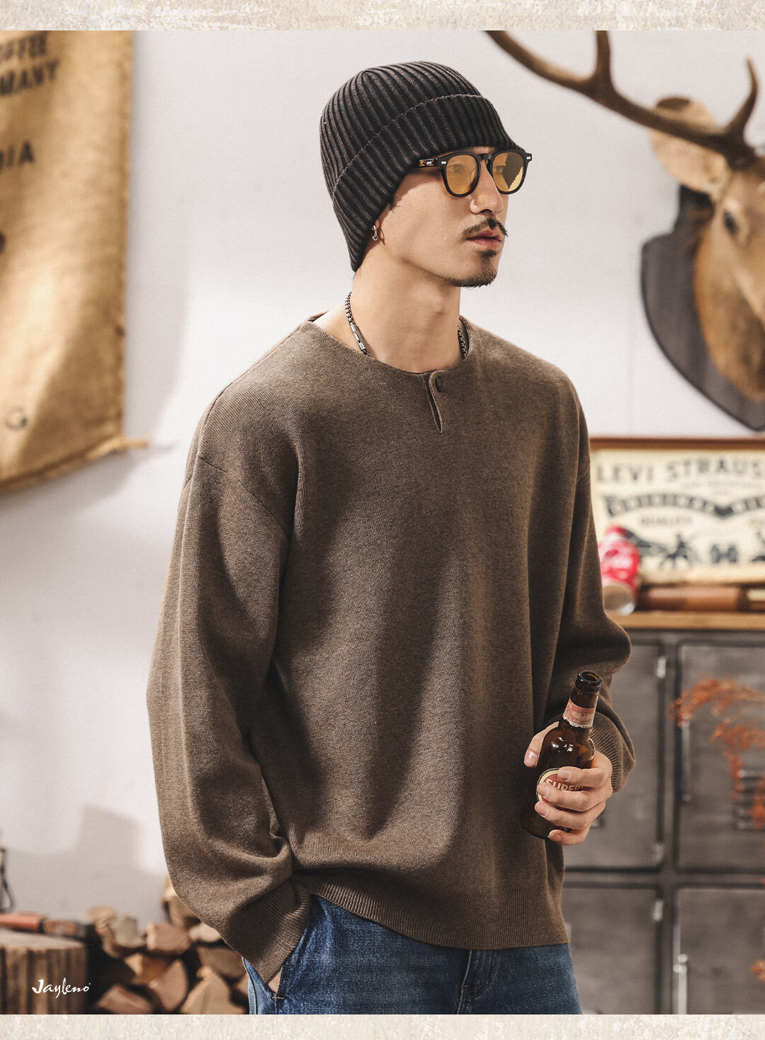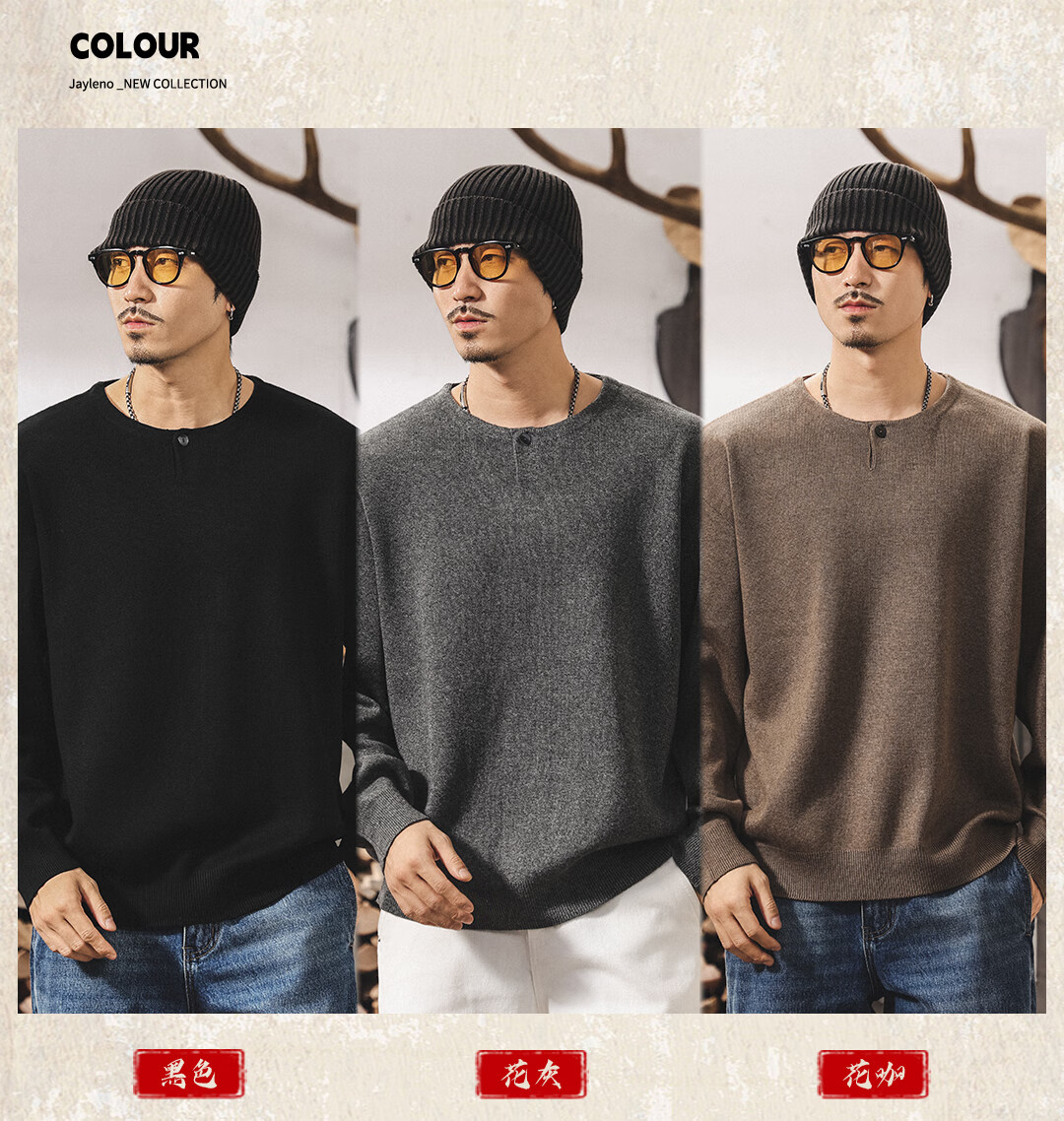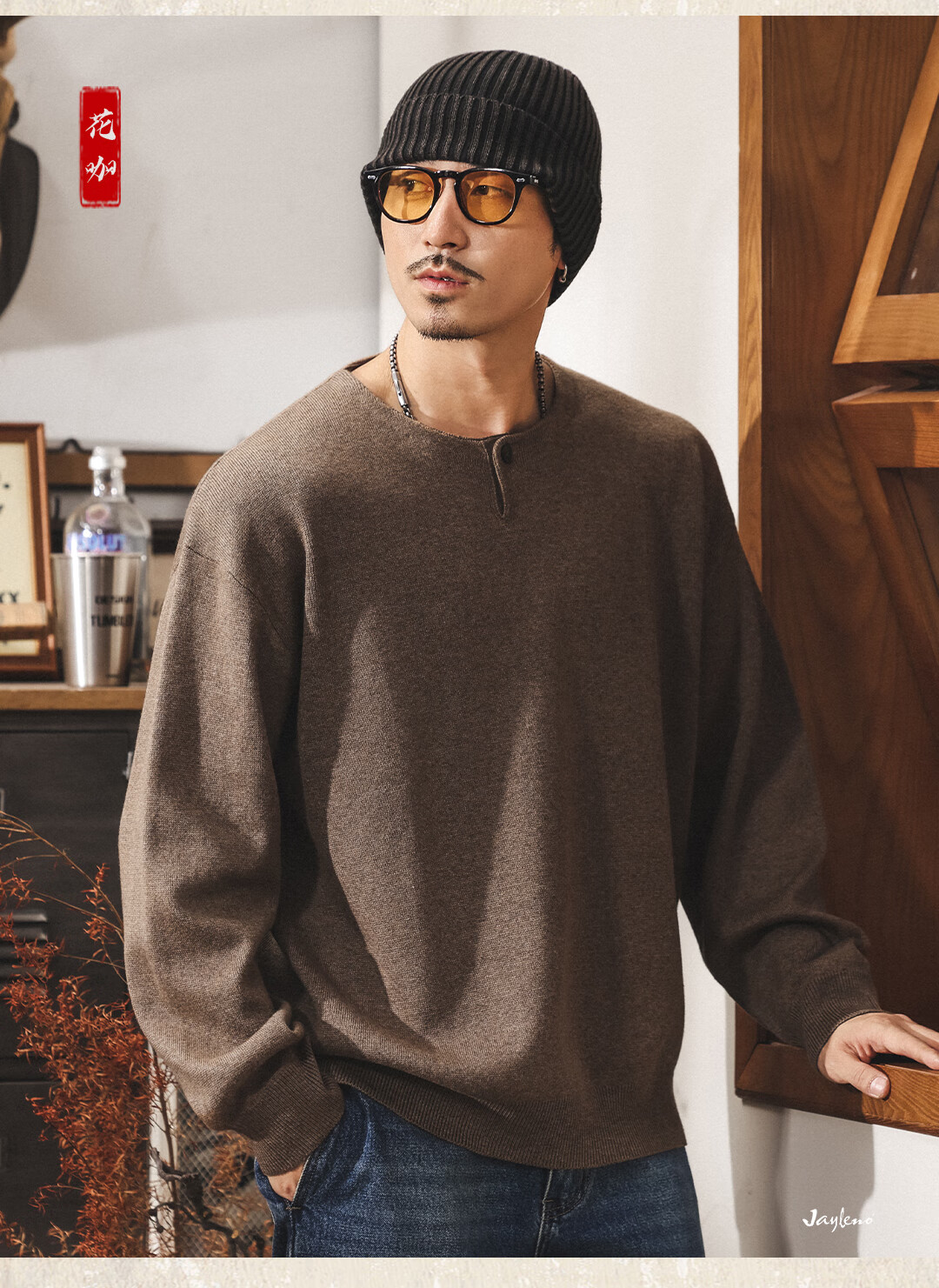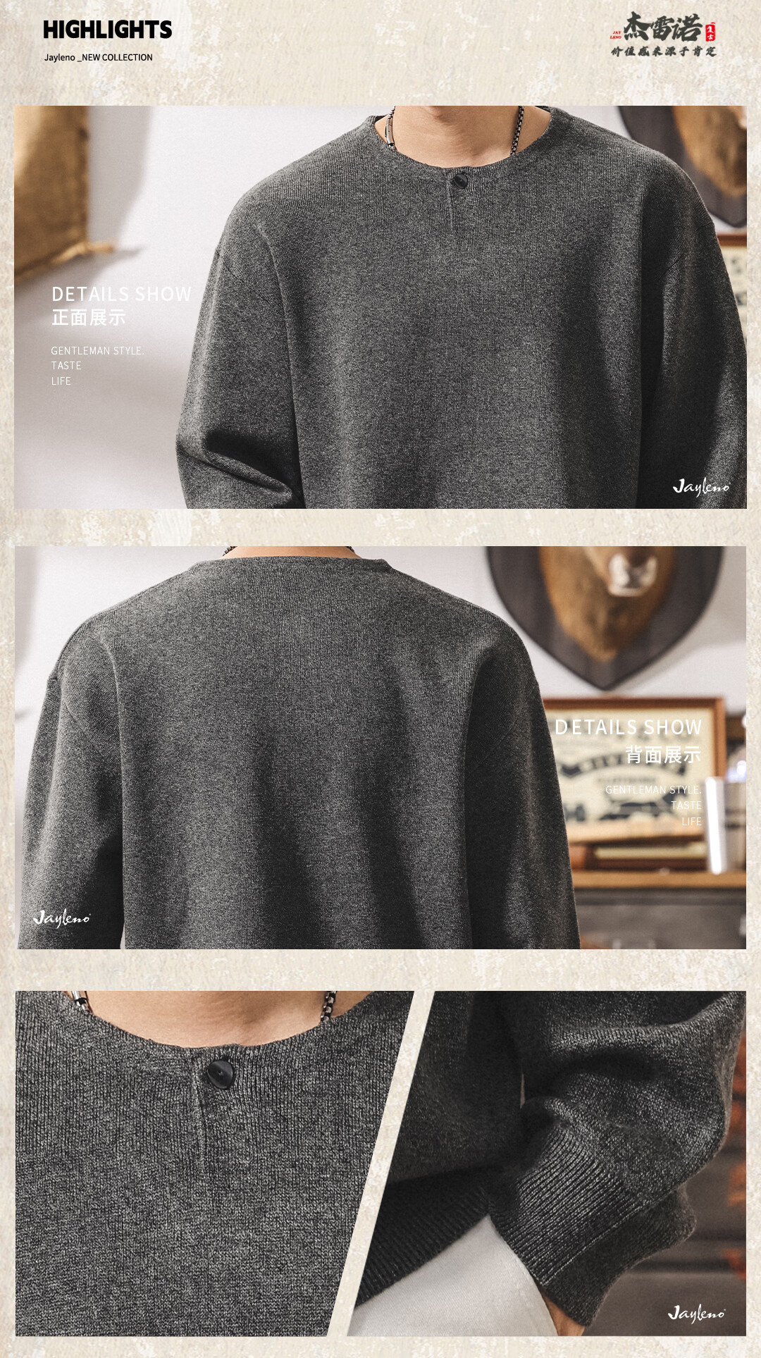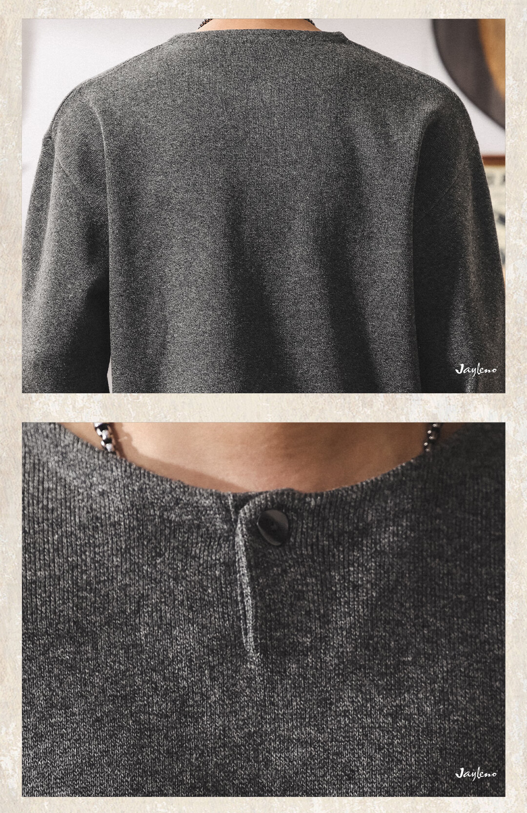 Jay Leno American style 520g heavy retro sweater for men winter thickened 2025 new lazy style casual henley collar sweater floral gray heavy 520g M suitable for 115-130Jin Jin equals 0.5 kg