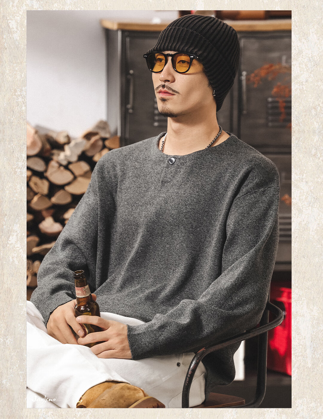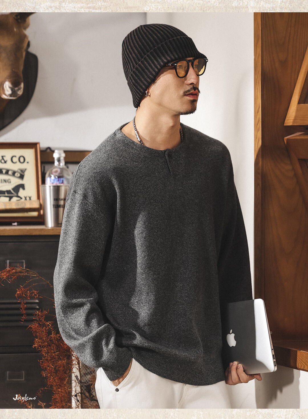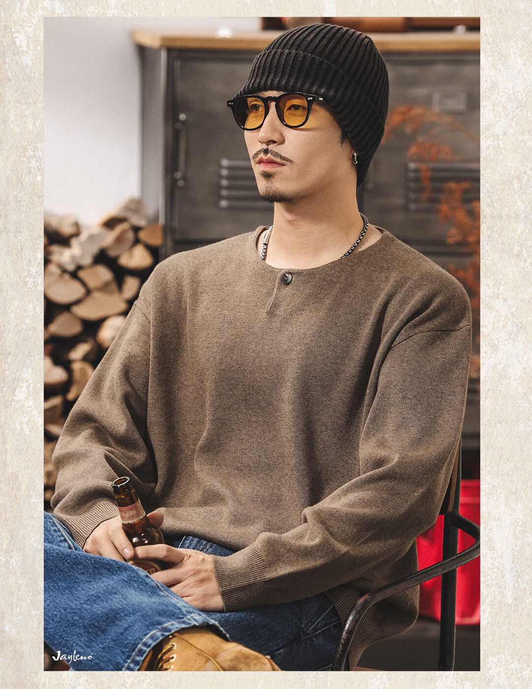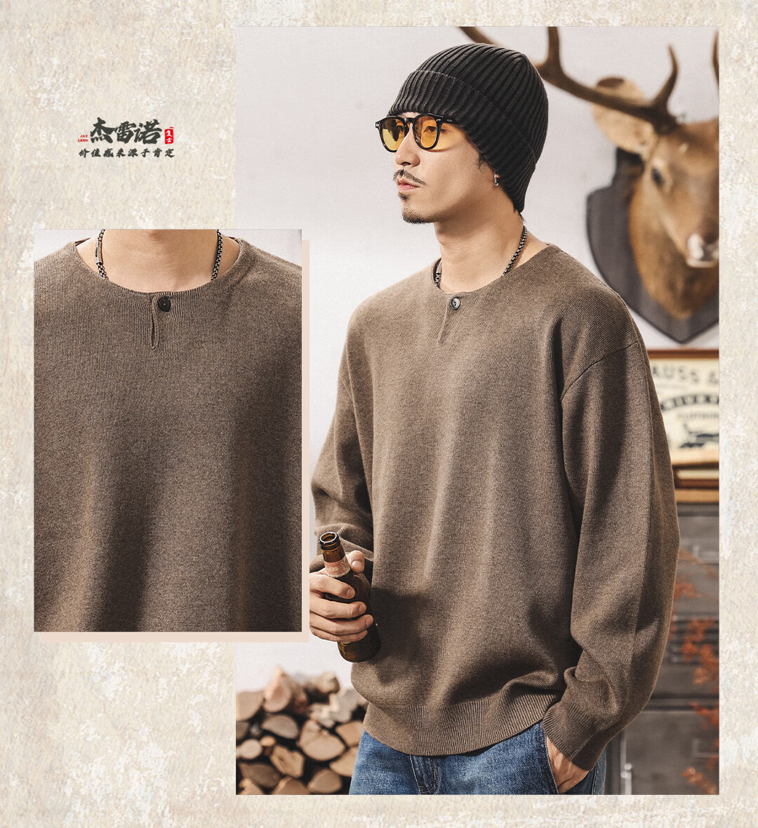 Jay Leno American style 520g heavy retro sweater for men winter thickened 2025 new lazy style casual henley collar sweater floral gray heavy 520g M suitable for 115-130Jin Jin equals 0.5 kg