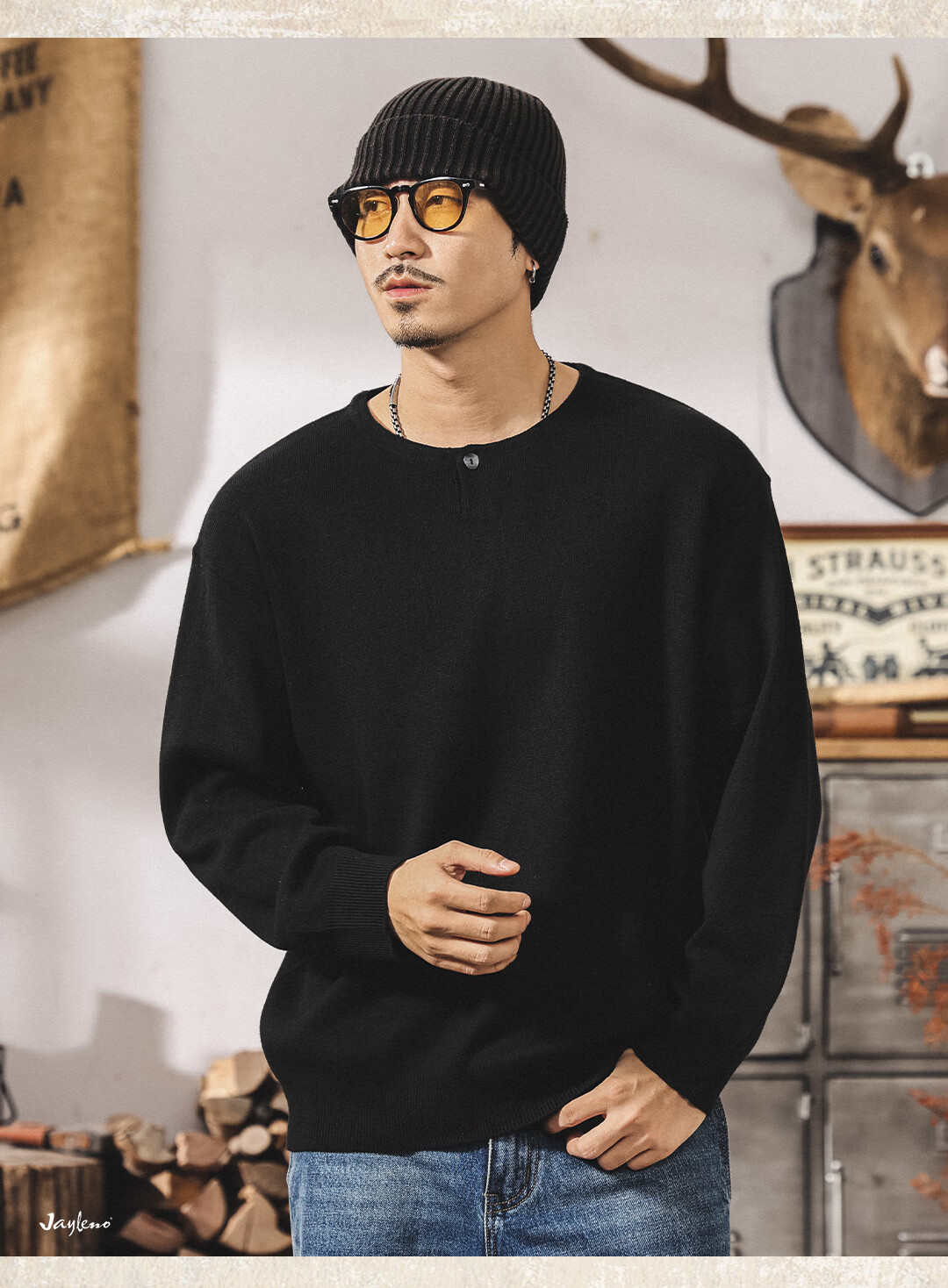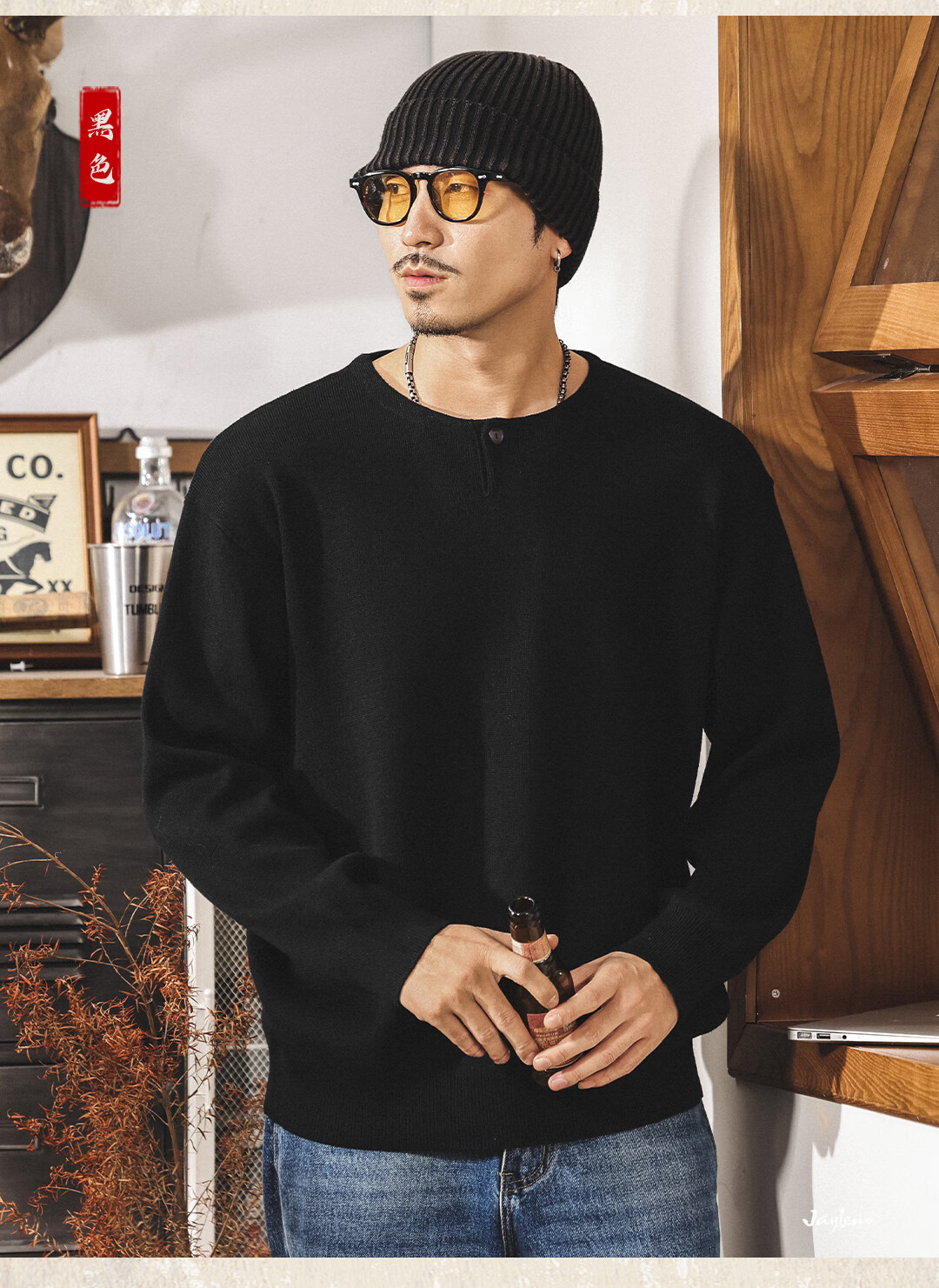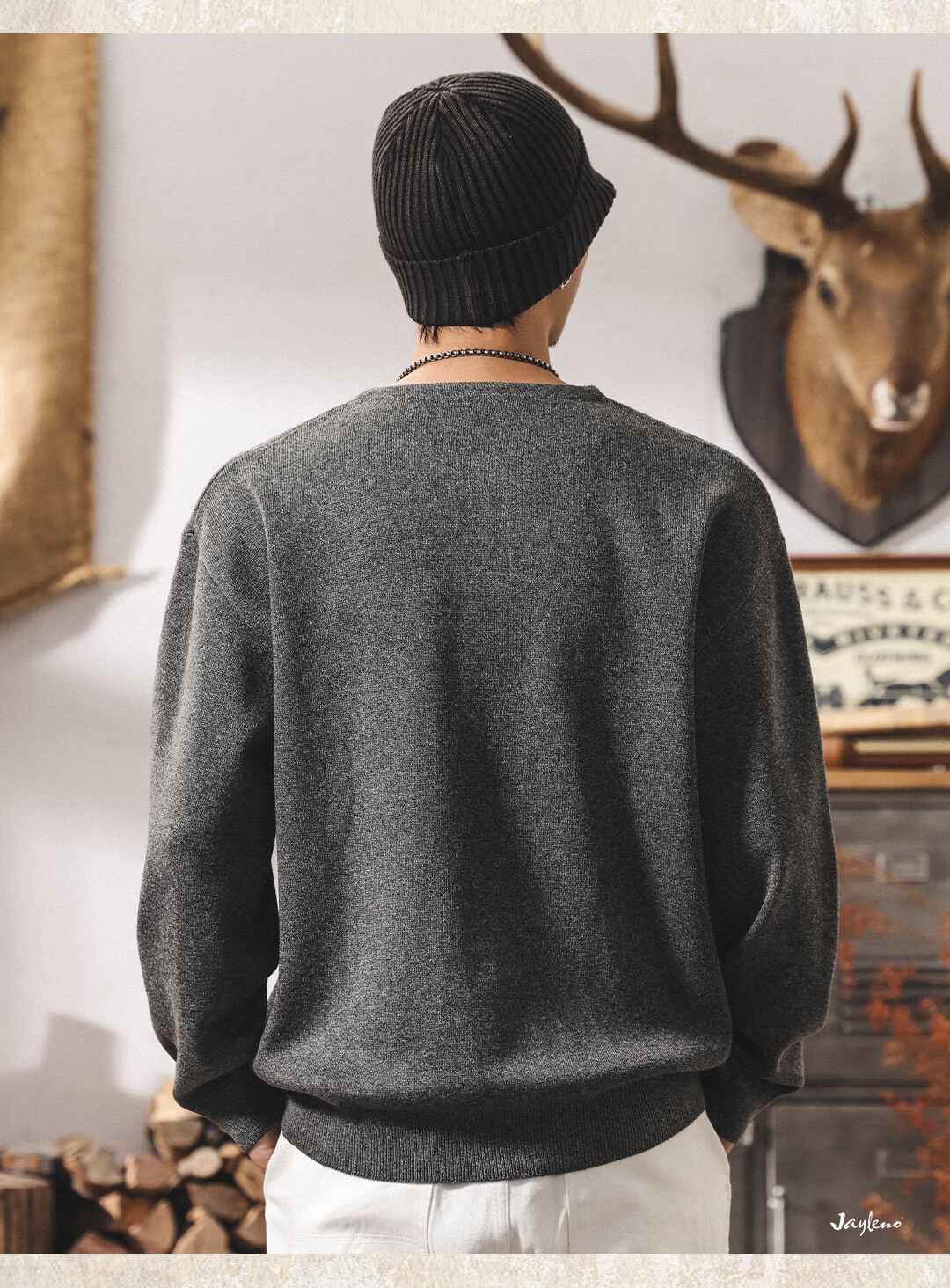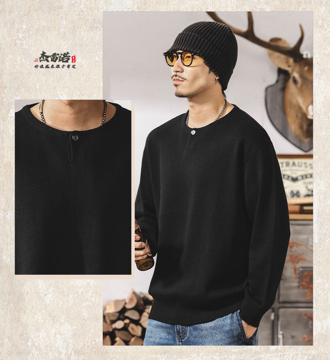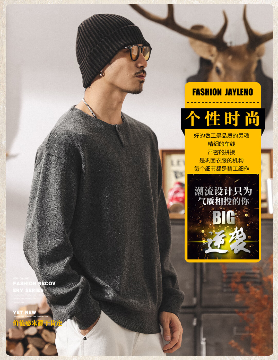 Jay Leno American style 520g heavy retro sweater for men winter thickened 2025 new lazy style casual henley collar sweater floral gray heavy 520g M suitable for 115-130Jin Jin equals 0.5 kg