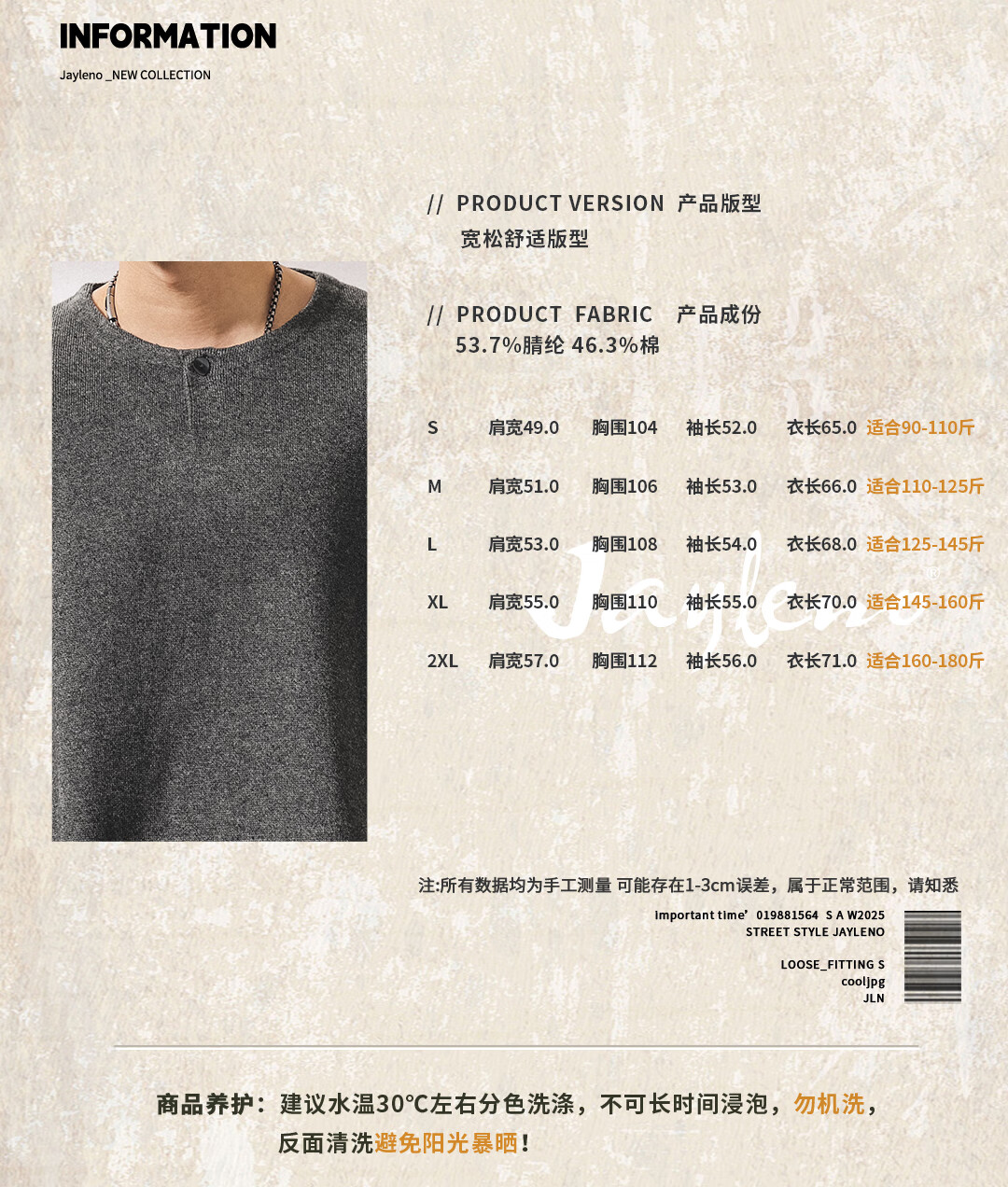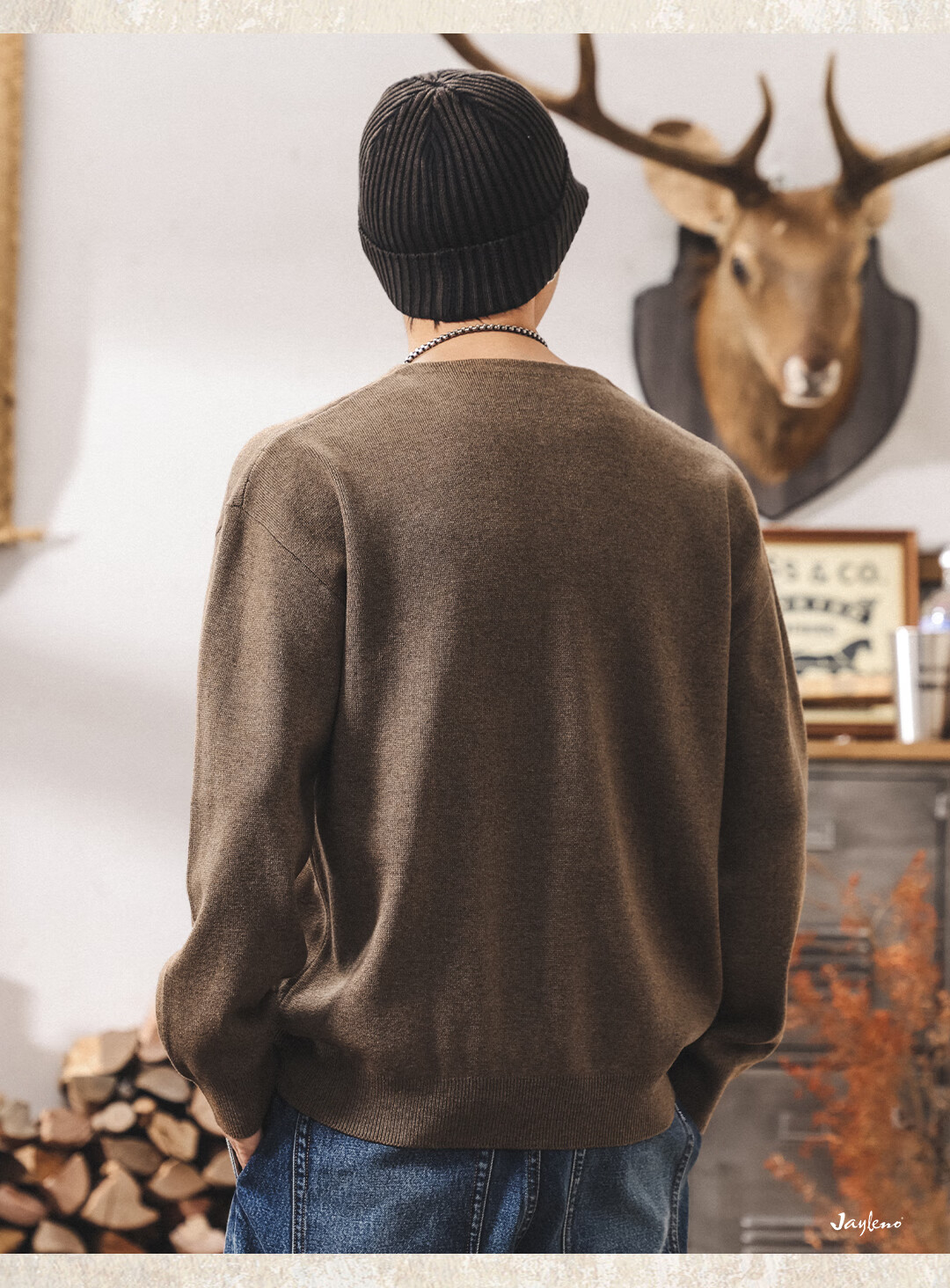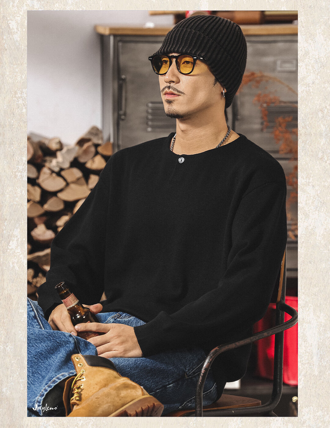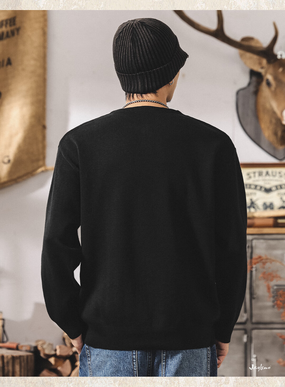 Jay Leno American style 520g heavy retro sweater for men winter thickened 2025 new lazy style casual henley collar sweater floral gray heavy 520g M suitable for 115-130Jin Jin equals 0.5 kg