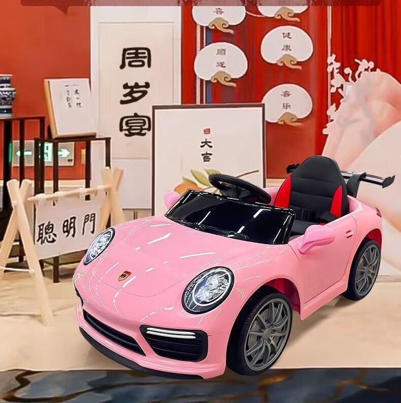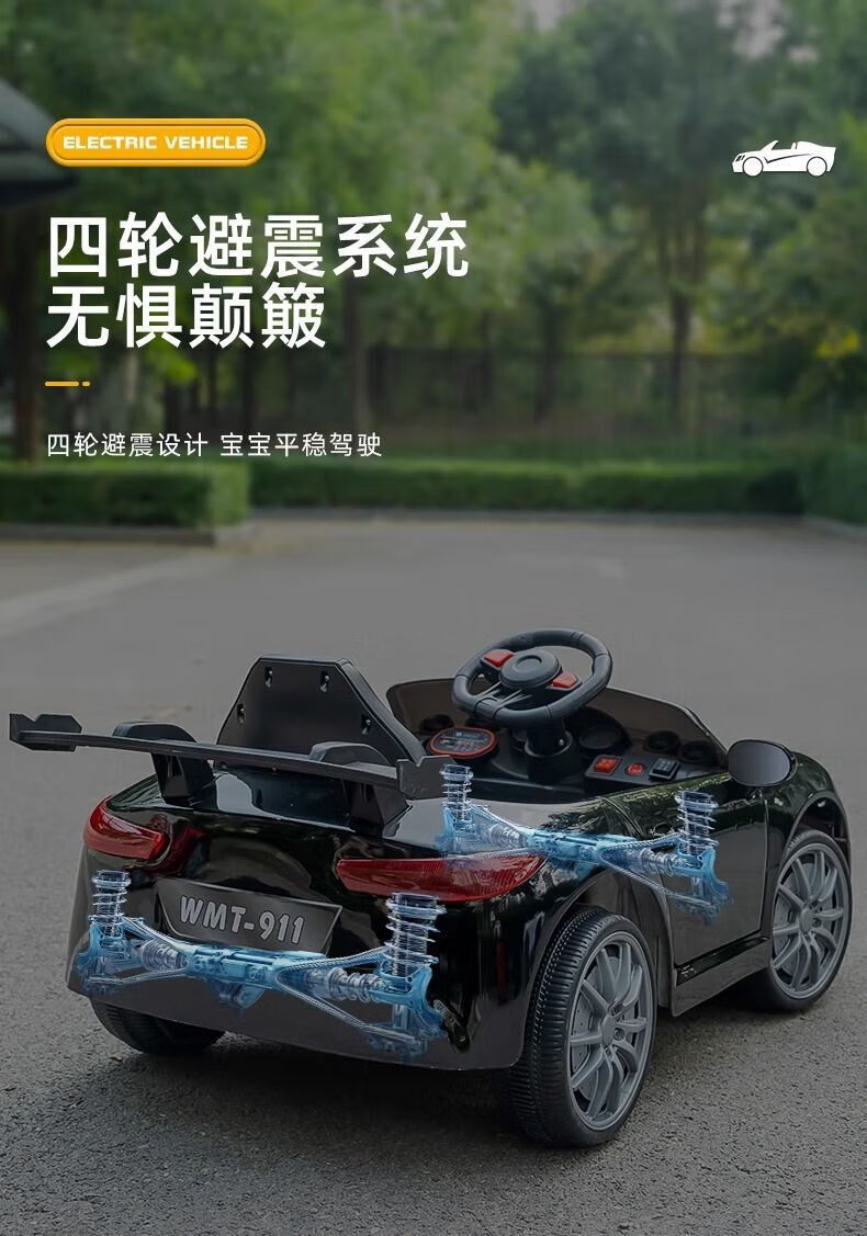 Children's electric car, four-wheeled car, rechargeable, seatable, with remote control baby toy car, child battery car, stroller model - no electricity, no music - cannot sit