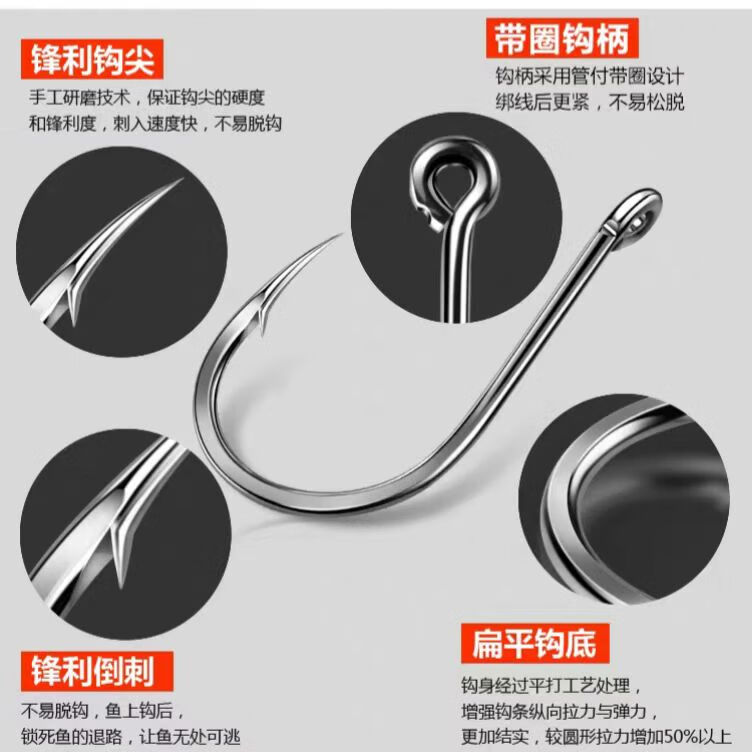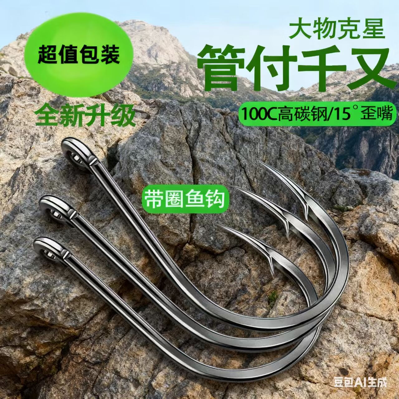 Authentic Guanfu Qianyou crooked mouth fish hook in bulk with ring large size barbed raft fishing Luyaji fishing sea bass fishing hook 4# 50 pieces