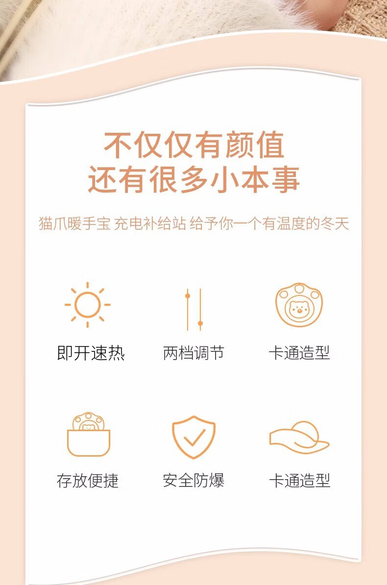 Lelok Girlfriend Gift Cat Claw Hand Warmer Baby Cute Pet Electric Heater Popular USB Warming Artifact Belly Warmer Portable Girls Rechargeable Explosion-proof Girlfriend Gift Hand Warmer Pink/24h Long Battery Life