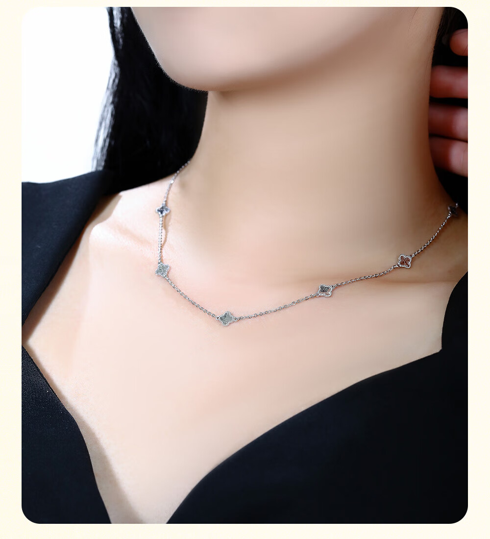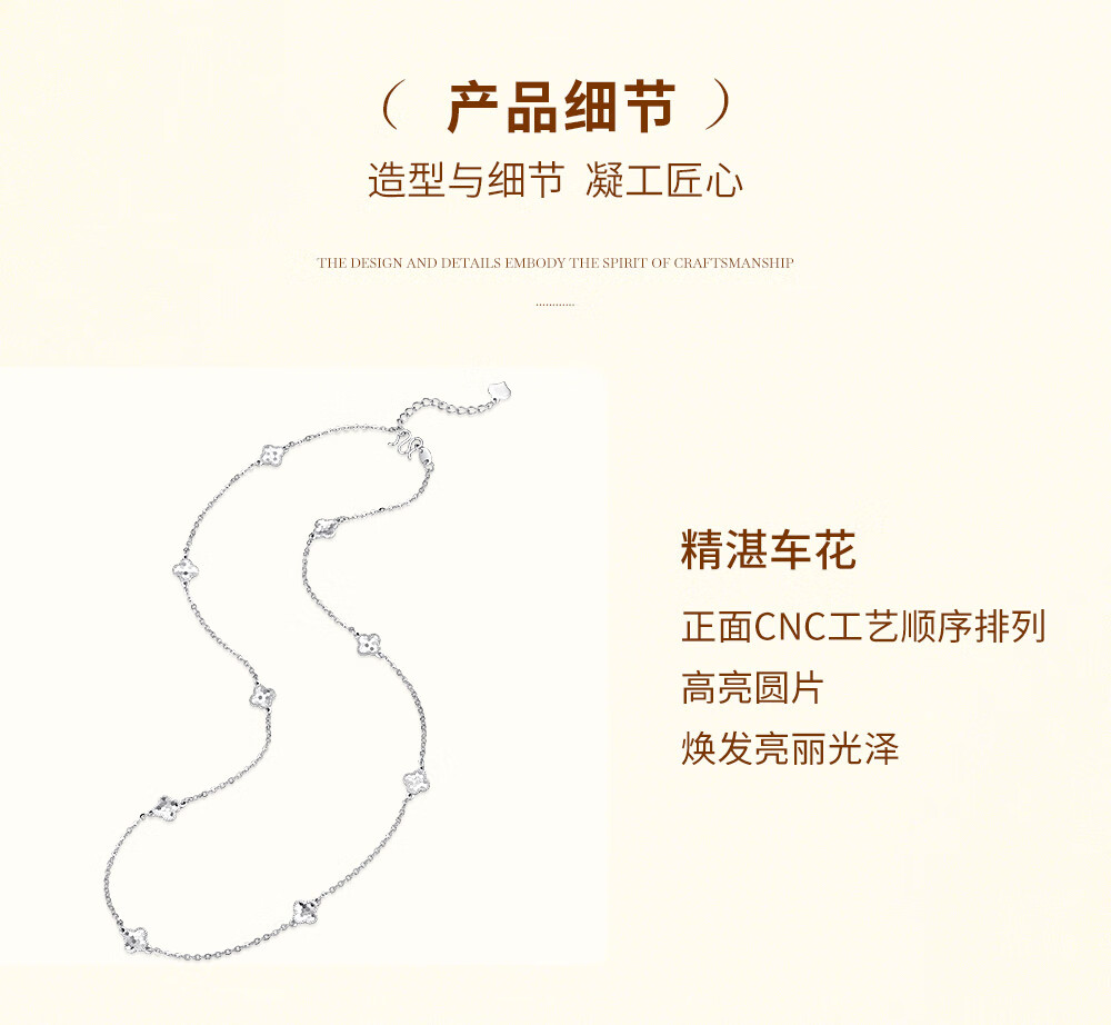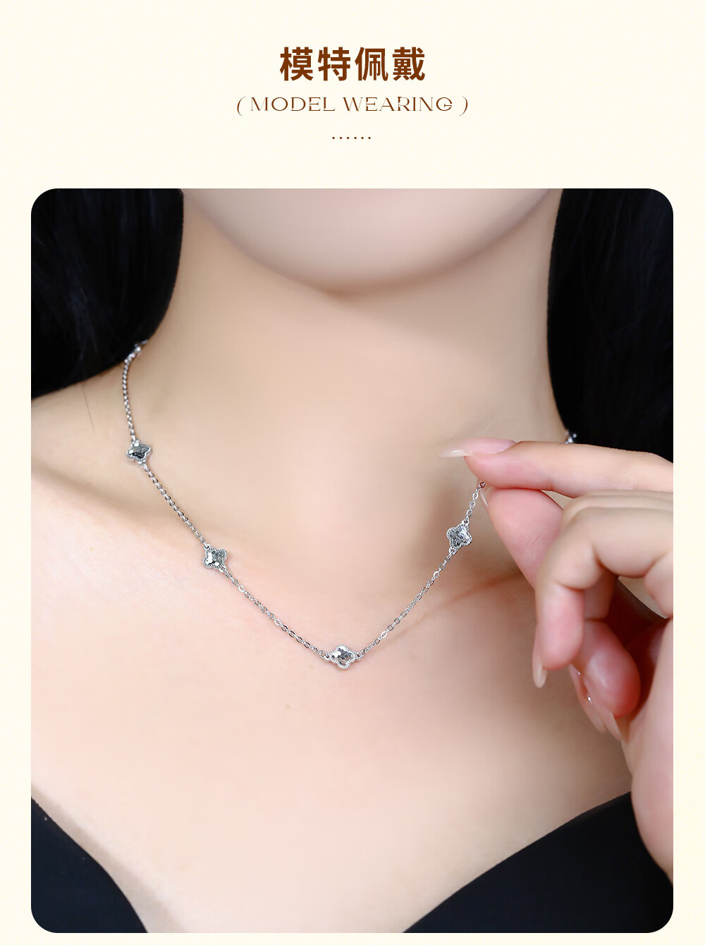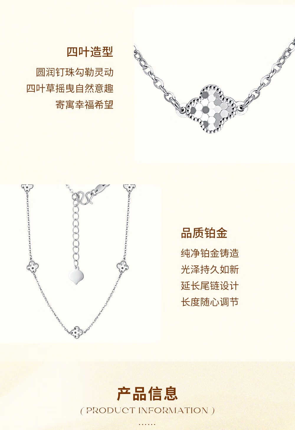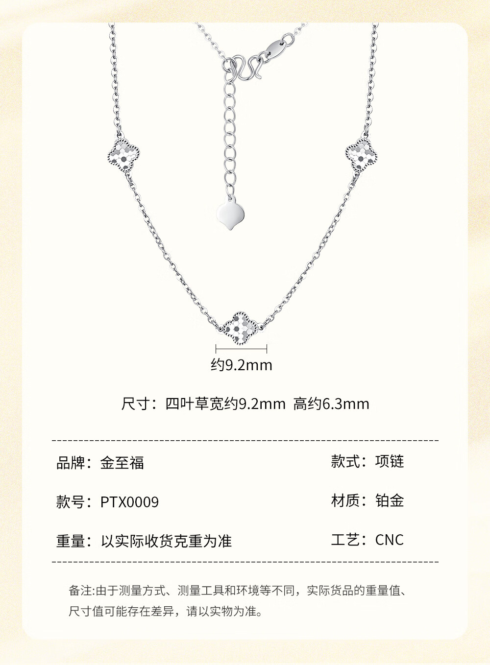 Jinzhifu Four-leaf Clover Platinum Necklace Pendant Women's Fish Scale Platinum Clavicle Chain for Girlfriend and Wife as Valentine's Day Birthday Gift, About 7.55 Grams (More Refund, Less Replenishment)