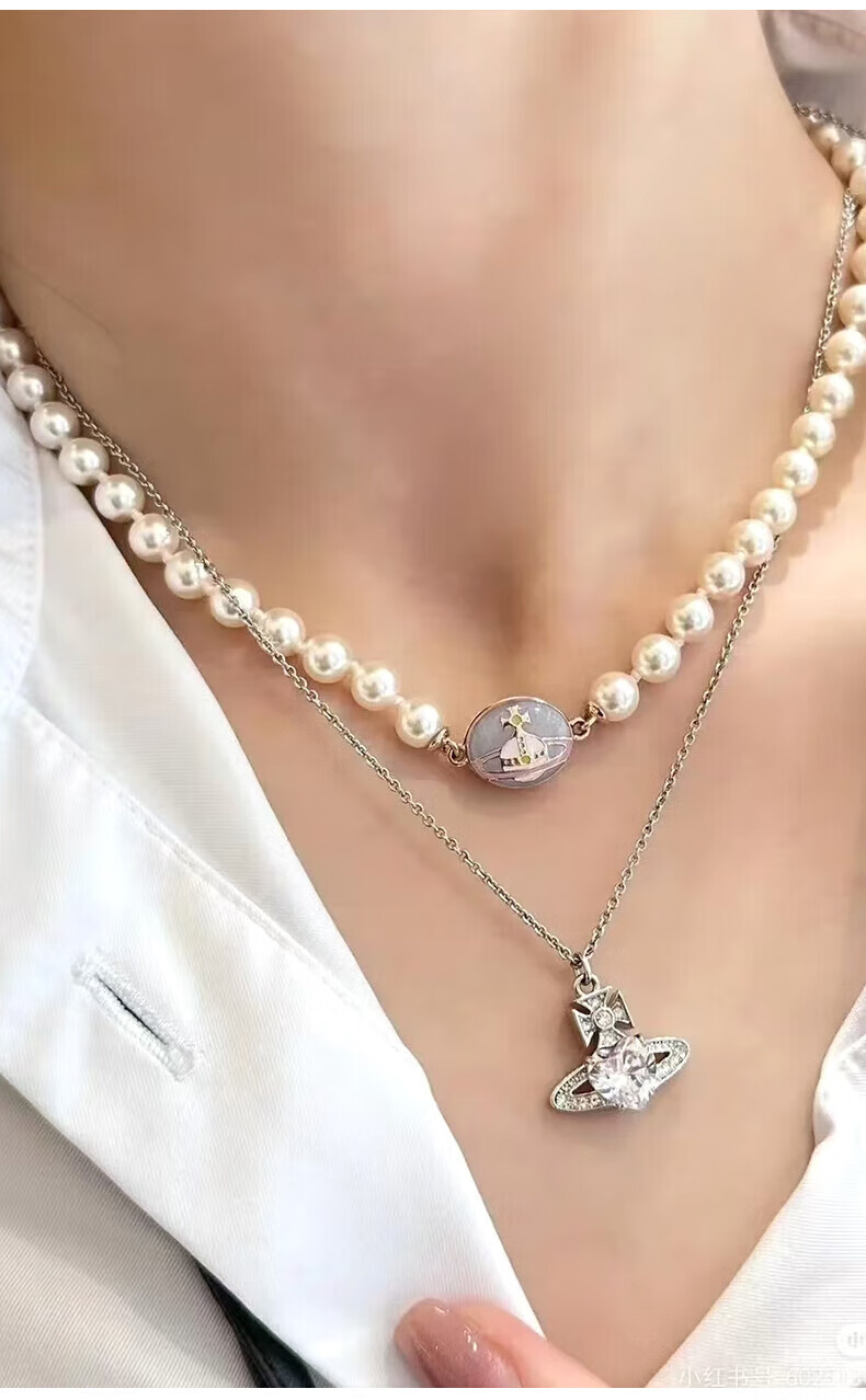 Queen Mother Vivian Necklace Women's High-Quality Light Luxury Gift Girl's Birthday Mother's Day Practical Niche Pendant Necklace Light Purple