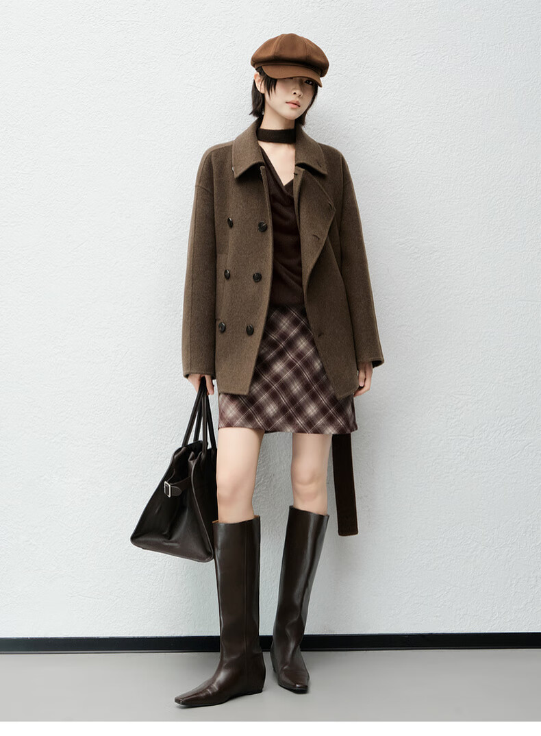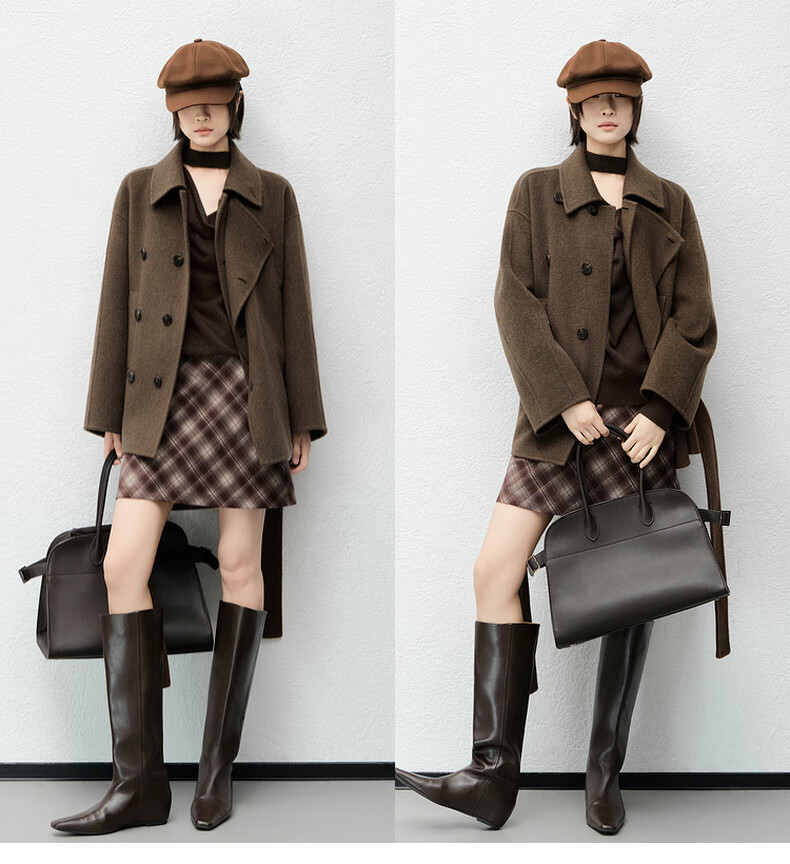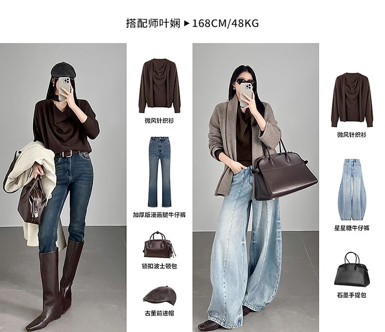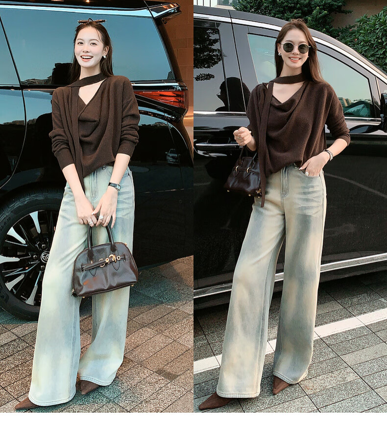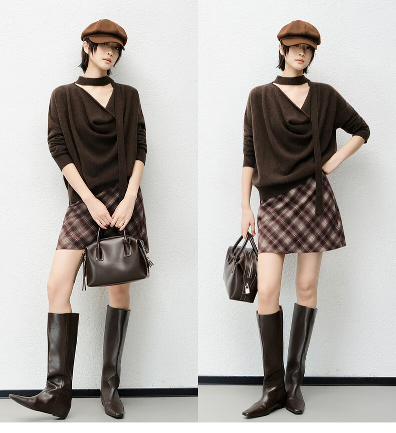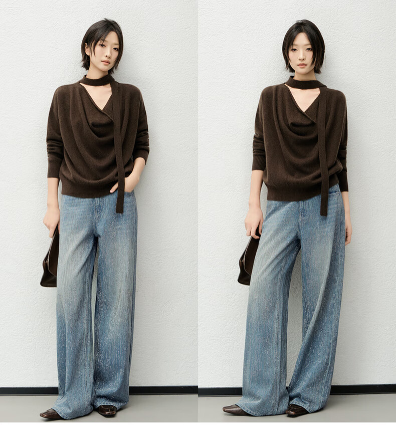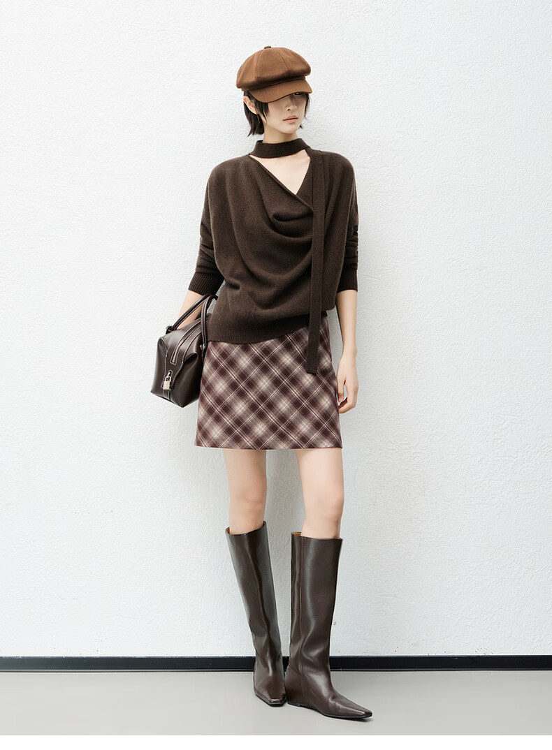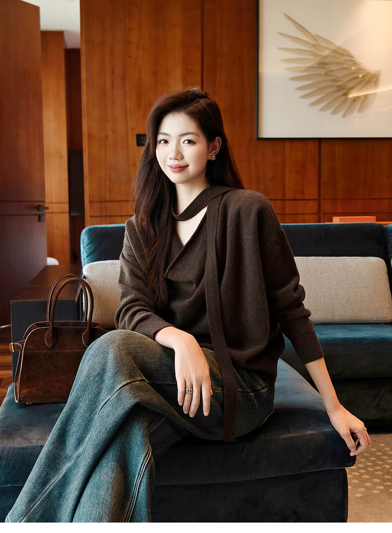 MEIYANG Breeze Knitted Sweater New Australia Merino Wool Design Pile Collar Ribbon Sweater Brown M