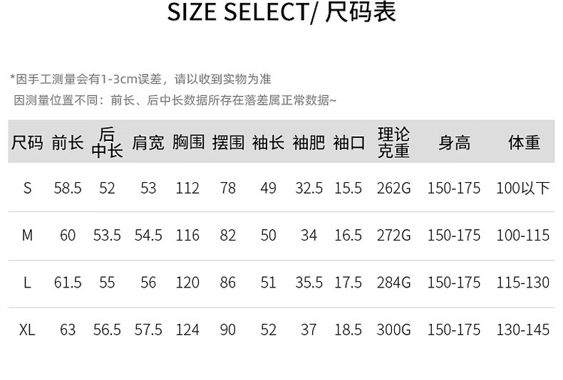 China (cm) 165 / 88-90 170 / 96-98 175 / 108-110 180 / 118-122 185 / 126-130