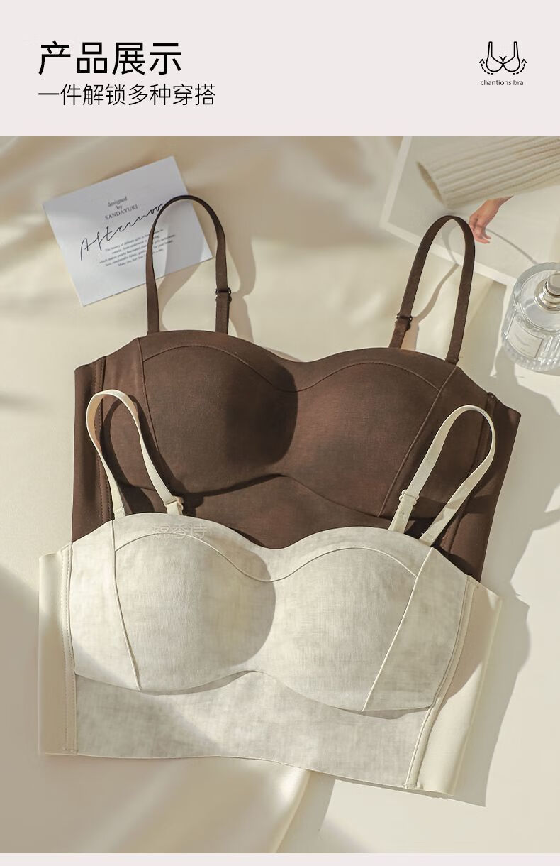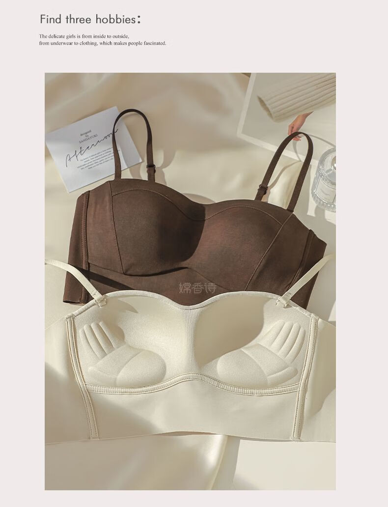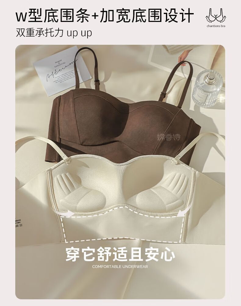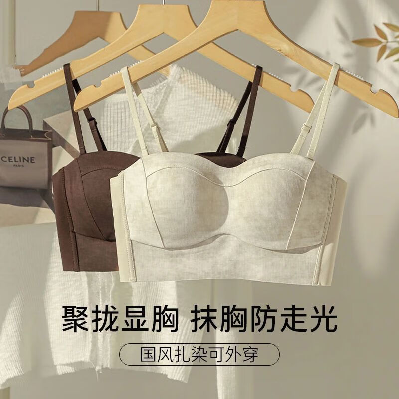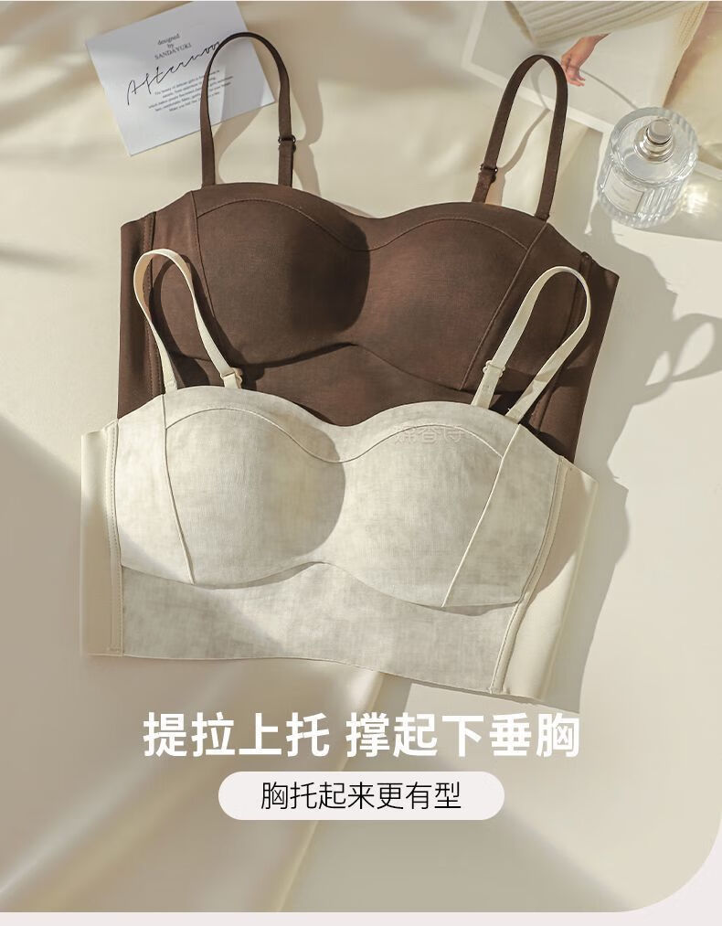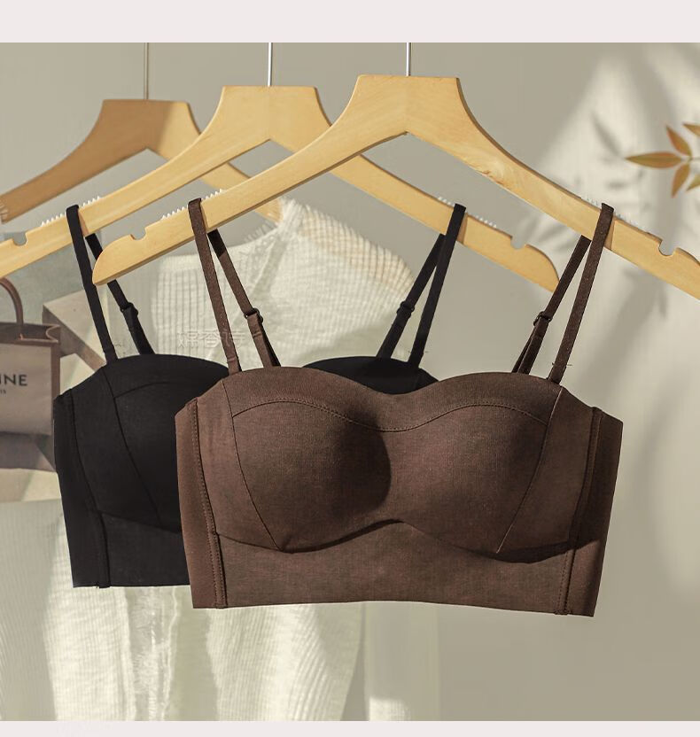 New style seamless small breast push-up underwear, feminine and comfortable, large tube top, anti-exposure, stylish bra, black + mocha brown, one size fits all 70B
