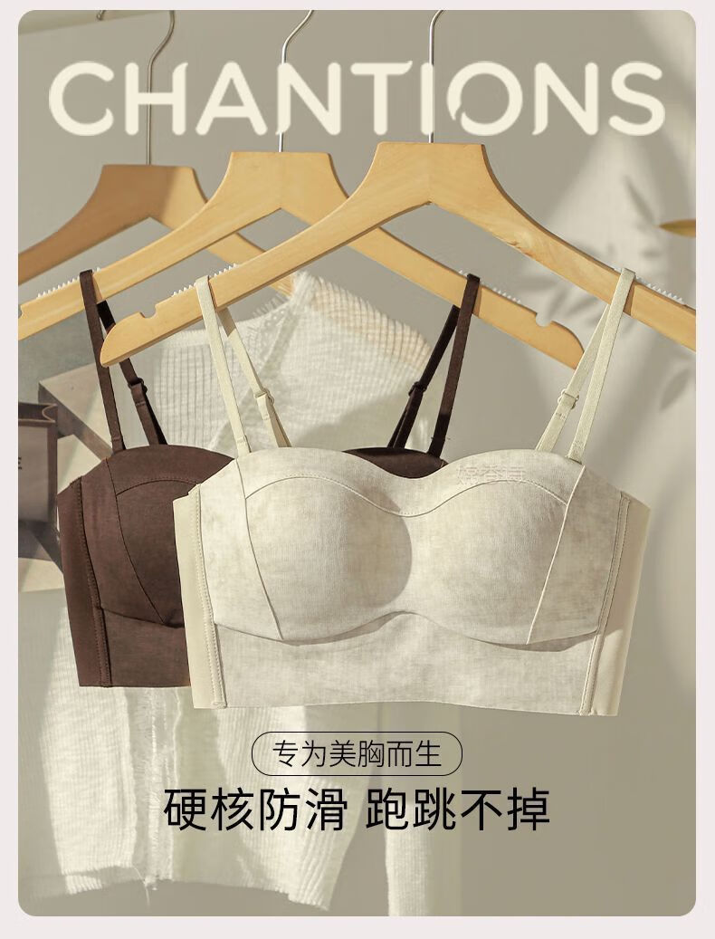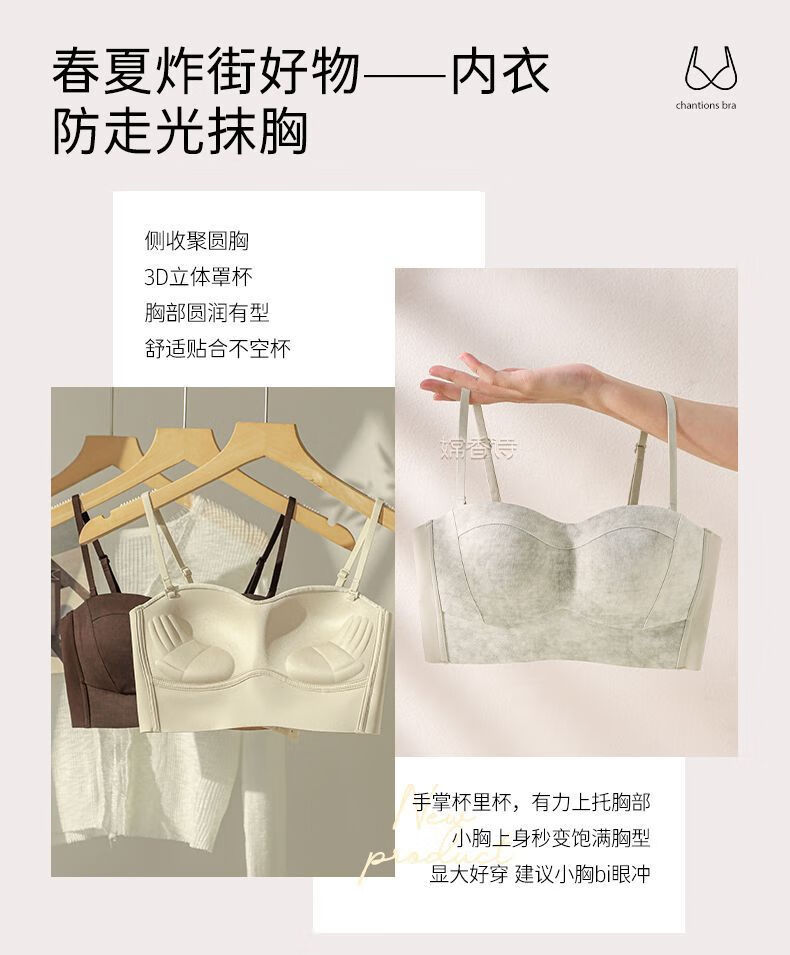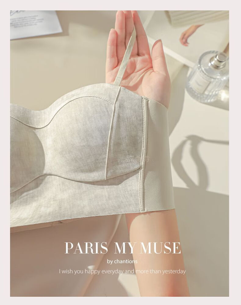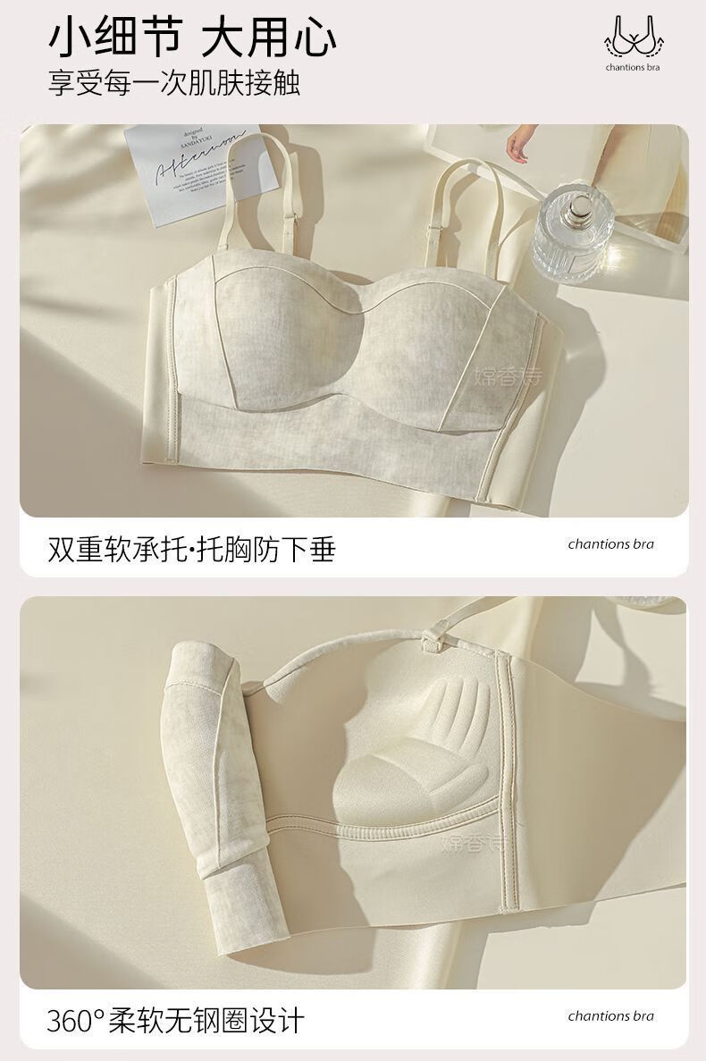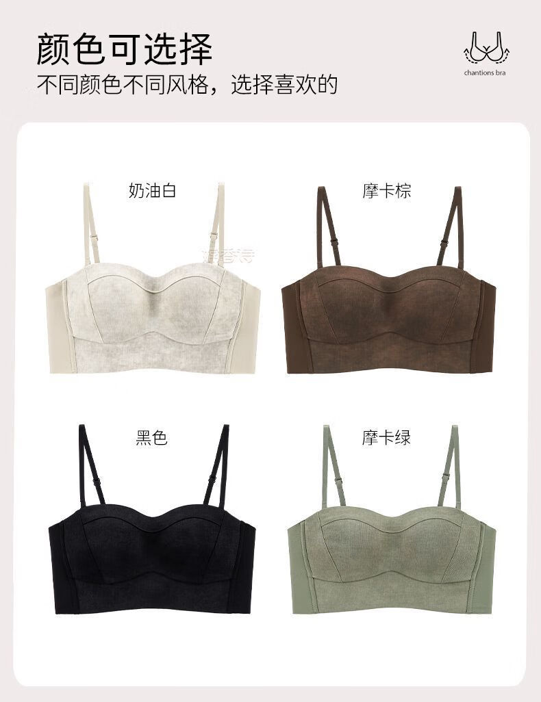 New style seamless small breast push-up underwear, feminine and comfortable, large tube top, anti-exposure, stylish bra, black + mocha brown, one size fits all 70B