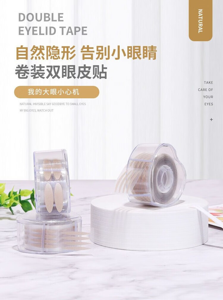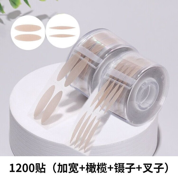 Yonghetang Invisible Double Eyelid Stickers Seamless Roll Olive-shaped Makeup Artist’s Special Tweezer Storage Box Crescent-Shaped Natural Beauty Eyes Wide Type 600 Stickers + Tools 1 Pair