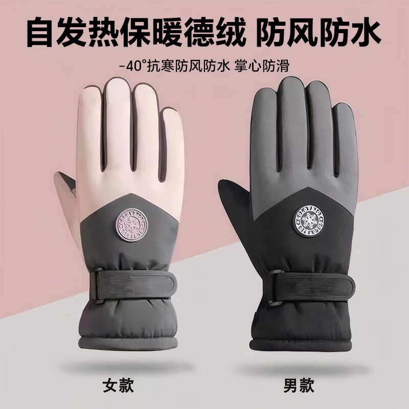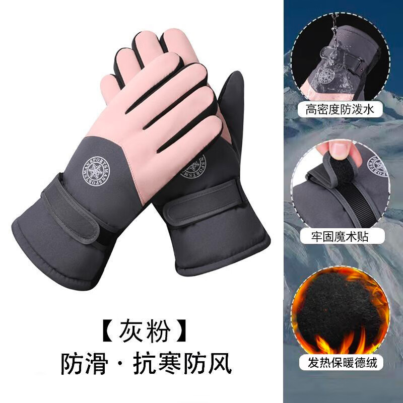 Lingte Constant Temperature Heating Warm Fishing Gloves Plus Velvet Windproof and Waterproof Men and Women Winter Thickened Touch Screen Anti-Ski Cycling Ski Style Gray Pink