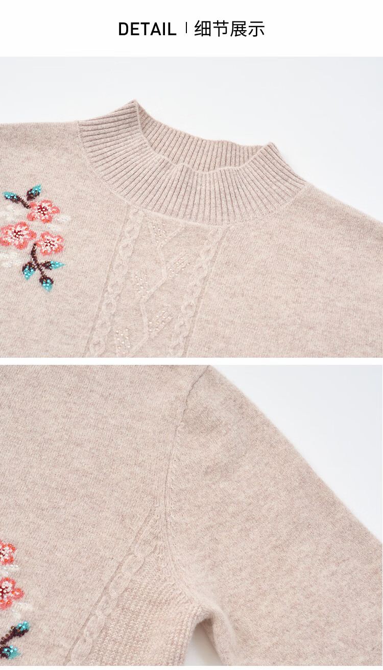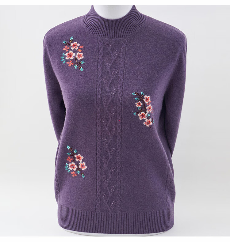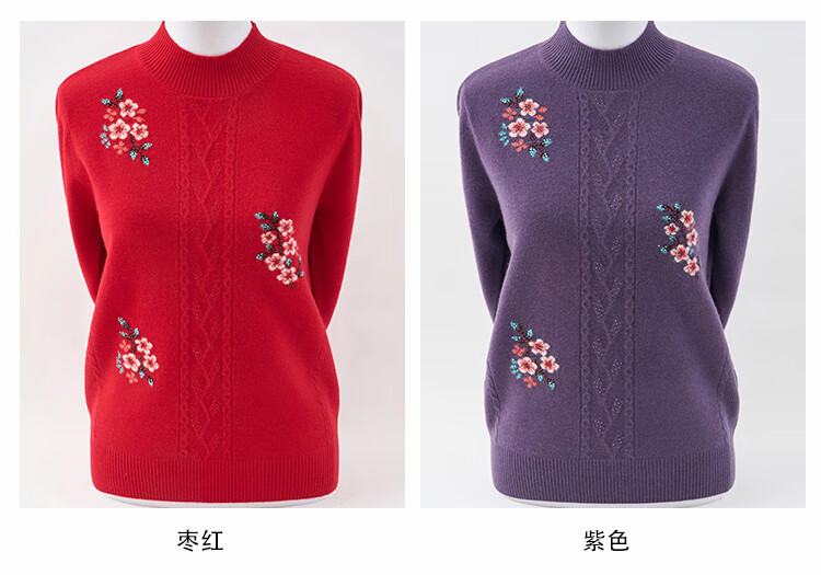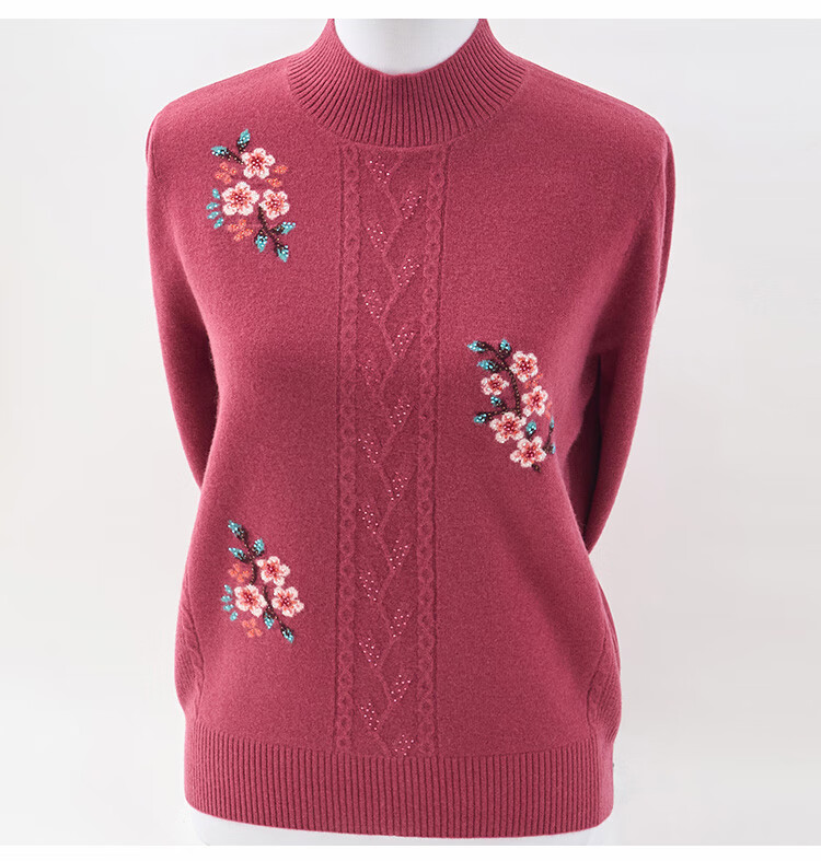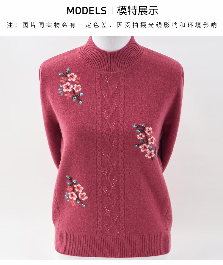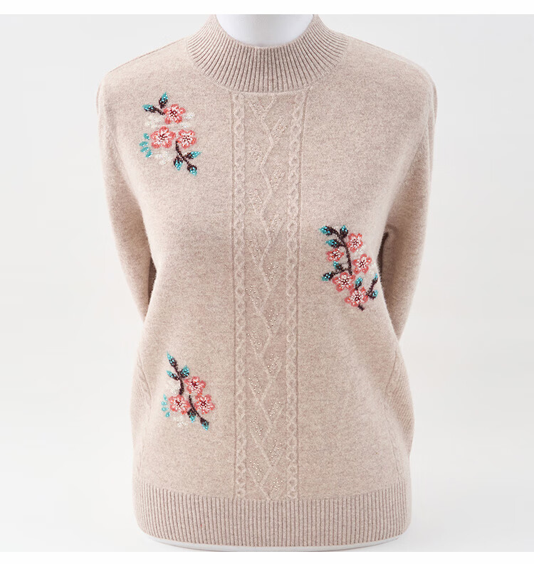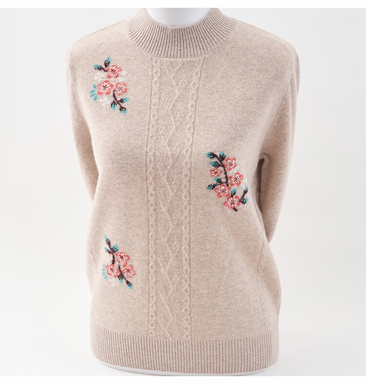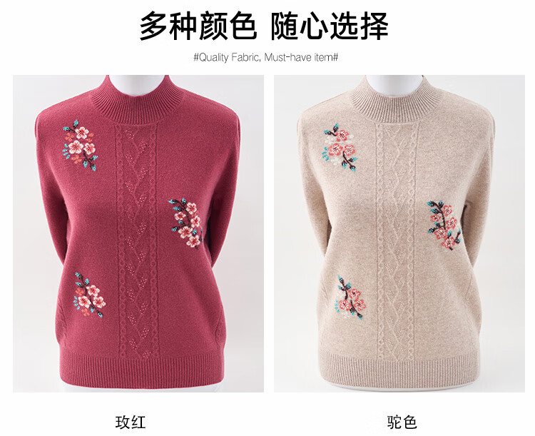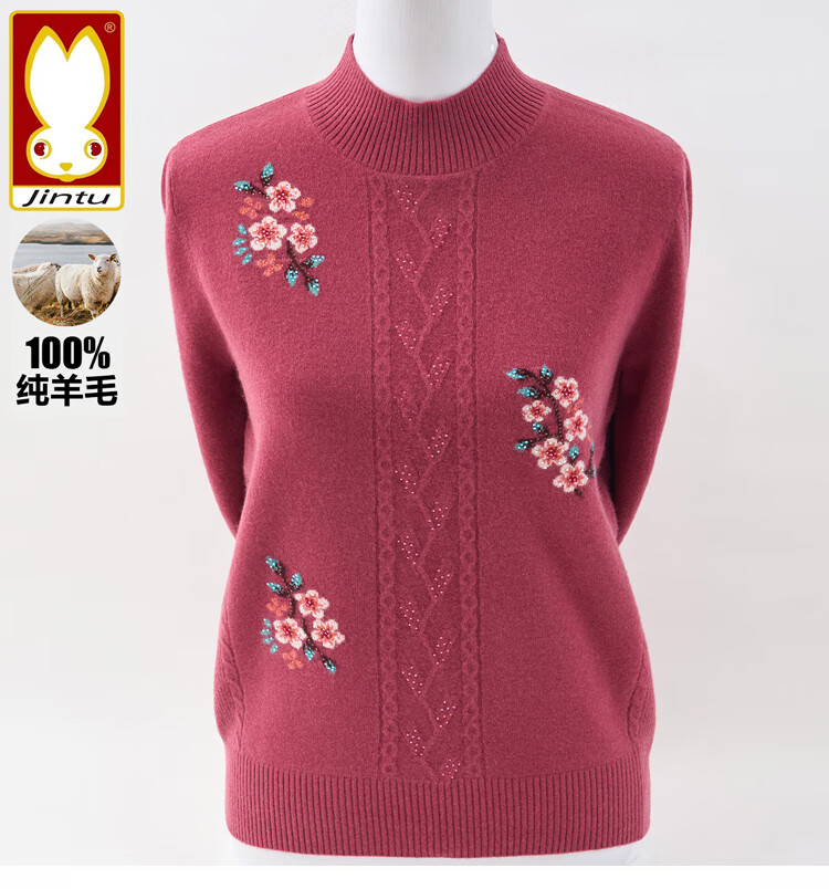 Jintu high-end 100% pure wool sweater for middle-aged and elderly women in autumn and winter, fashionable mother's wear, warm and thickened bottoming sweater, camel color, 100% pure wool, 2XL, recommended 120-135 Jin Jin is equal to 0.5 kg