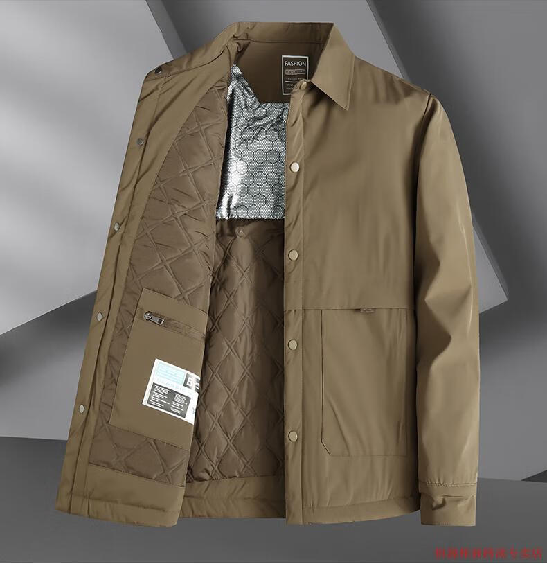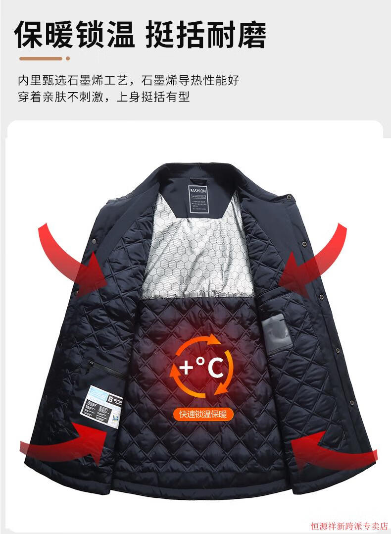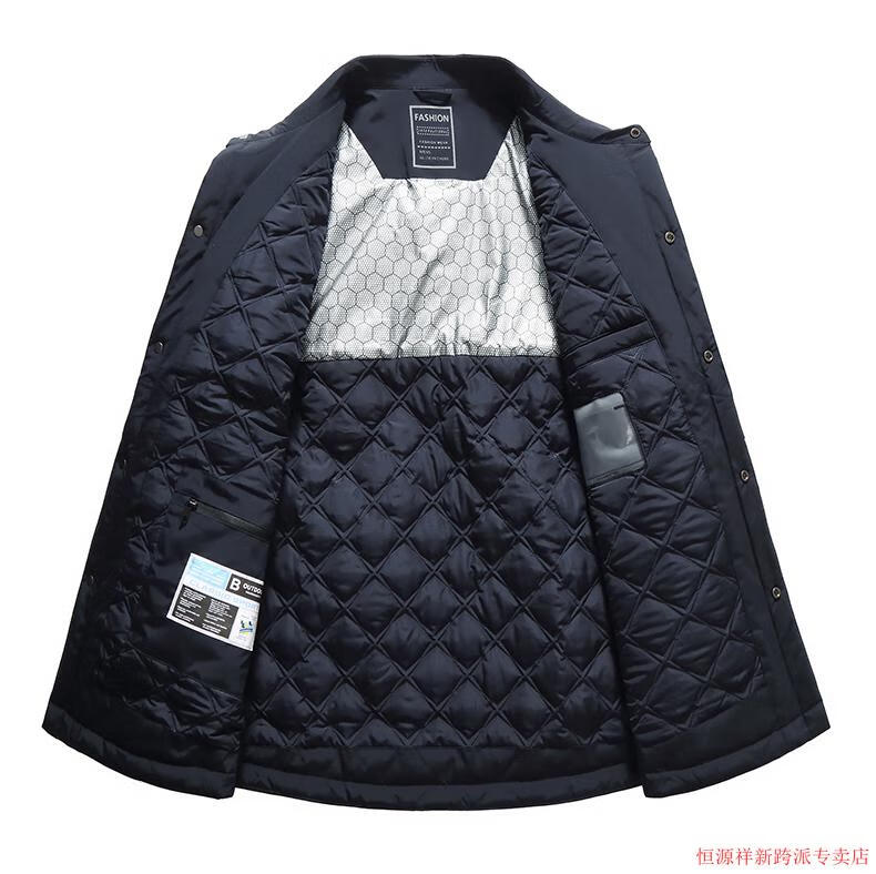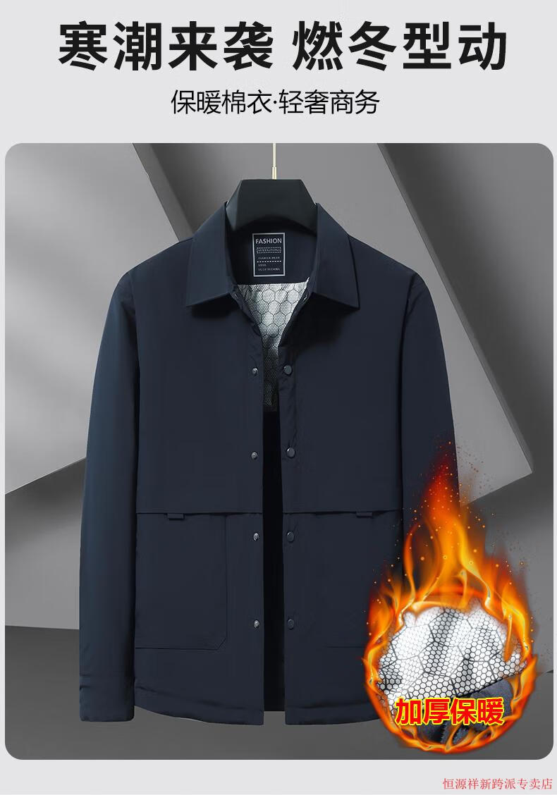 Hengyuanxiang папа зимнее пальто с лацканами двуххлопковое пальто мужское хлопковое пальто большого размера свободное 2025 новое деловое повседневное хлопковое пальто черного цвета 2XL