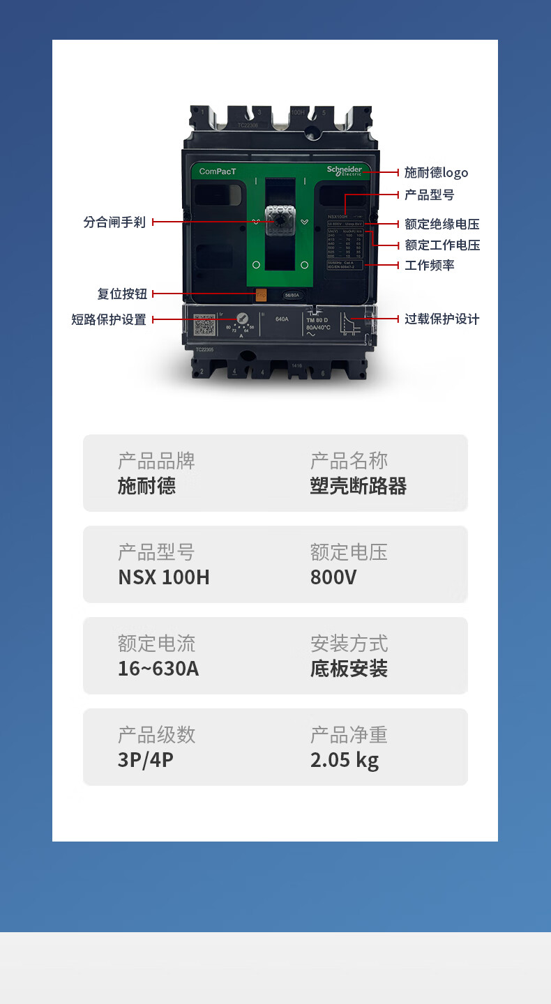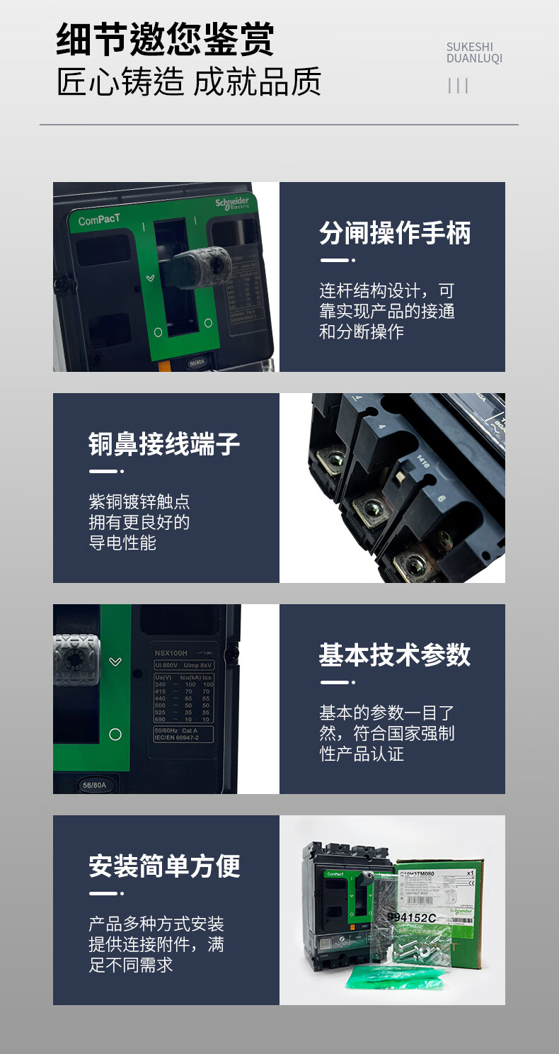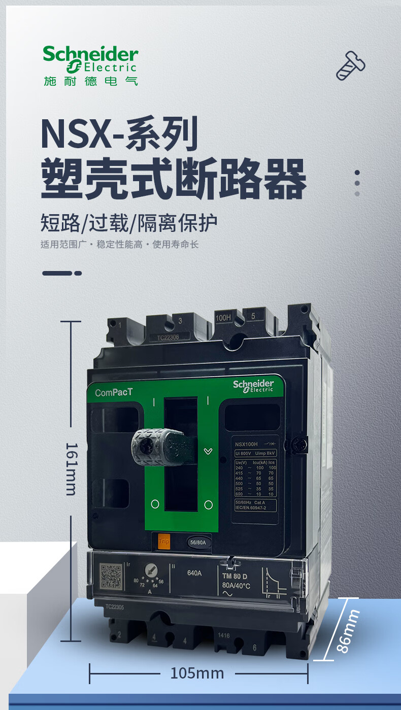 Original Schneider molded case circuit breaker NSX100N/F/H3PNSX160N 250N 400N 630TMDMIC NSX100_TMD_16A F_36KA_3P