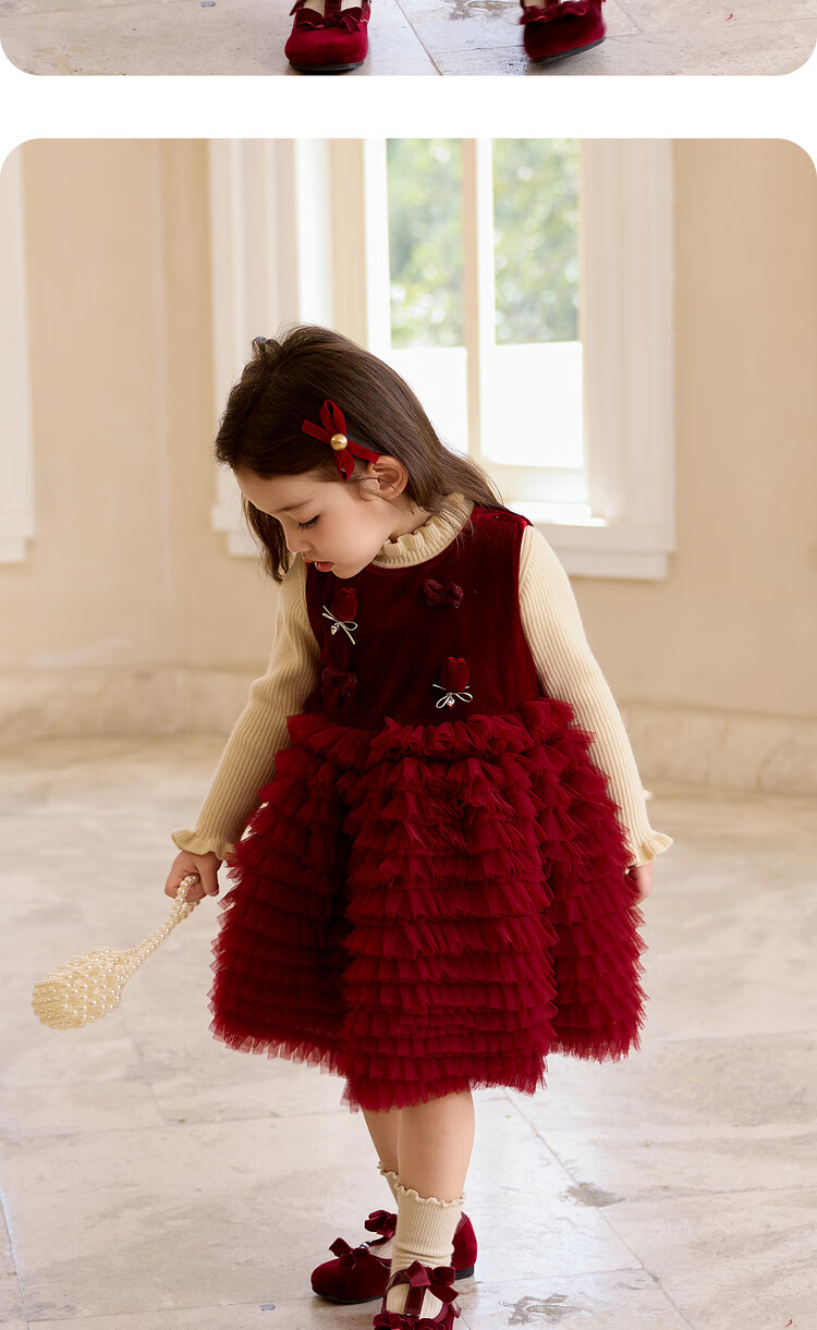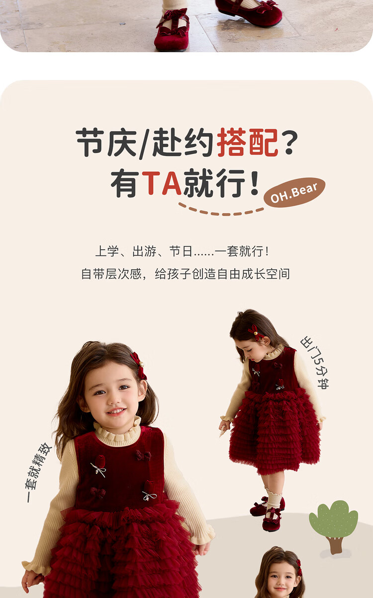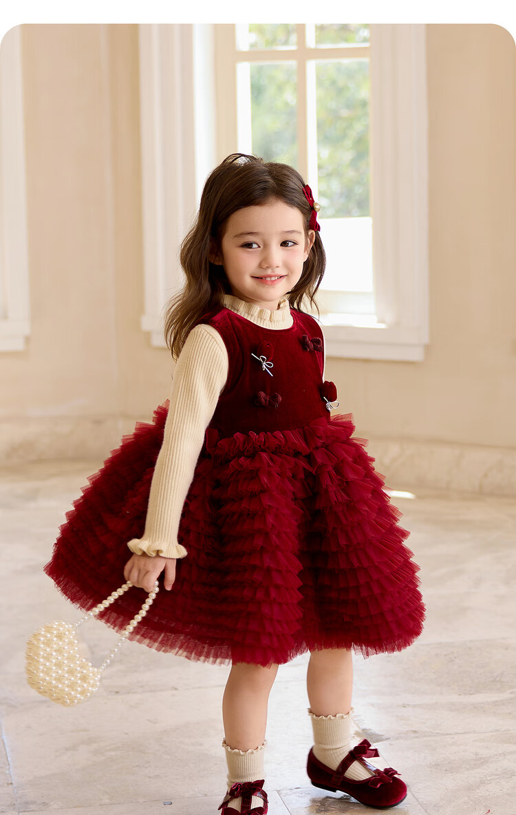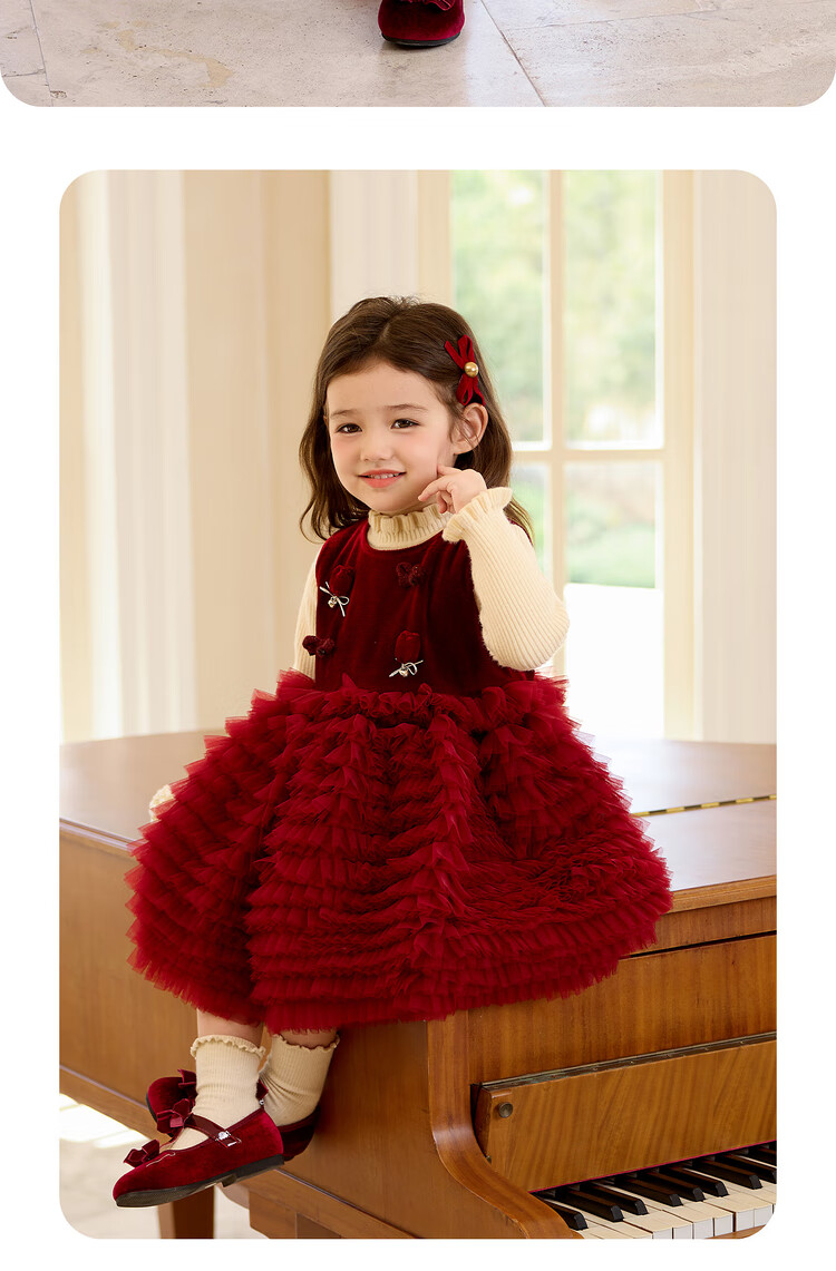 Om Bear Girls Dress 2025 New Baby Girl Party Birthday One-Year-Old Dress Children's Autumn and Winter Princess Dress Red Skirt 90 90cm