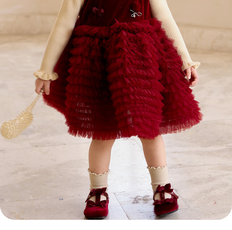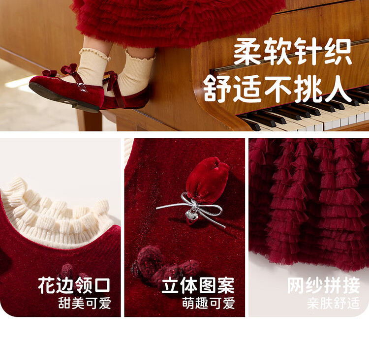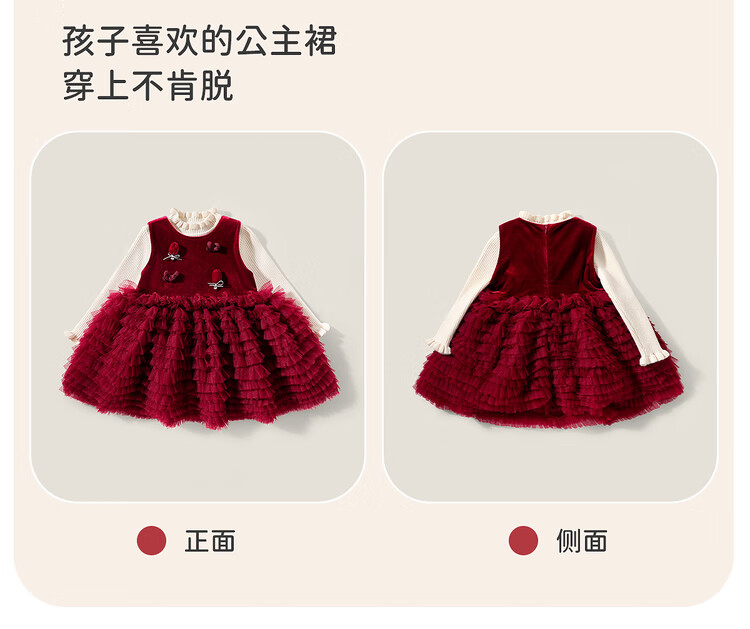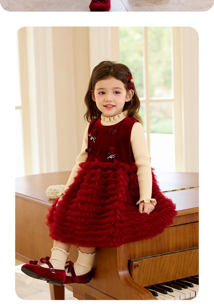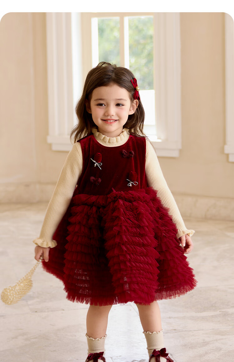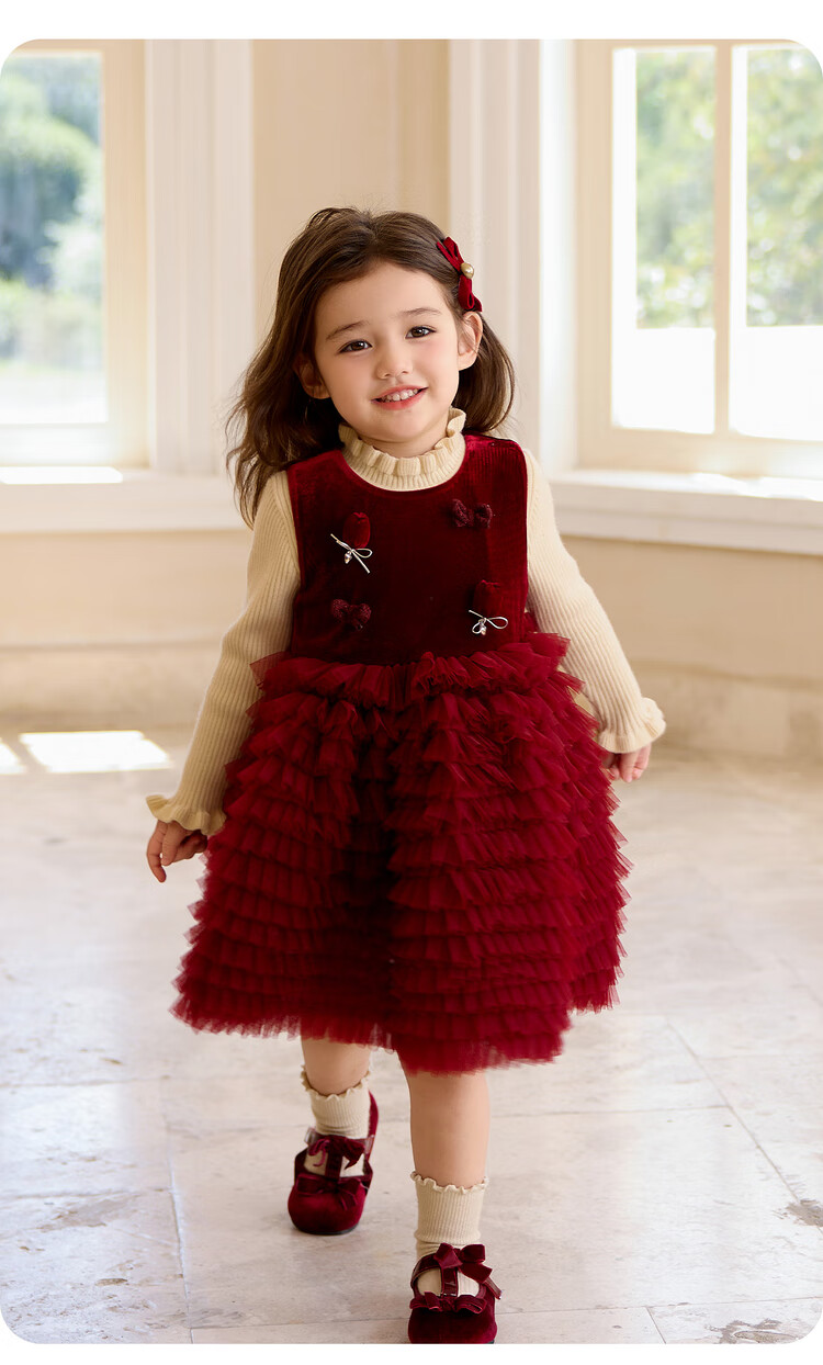Om Bear Girls Dress 2025 New Baby Girl Party Birthday One-Year-Old Dress Children's Autumn and Winter Princess Dress Red Skirt 90 90cm