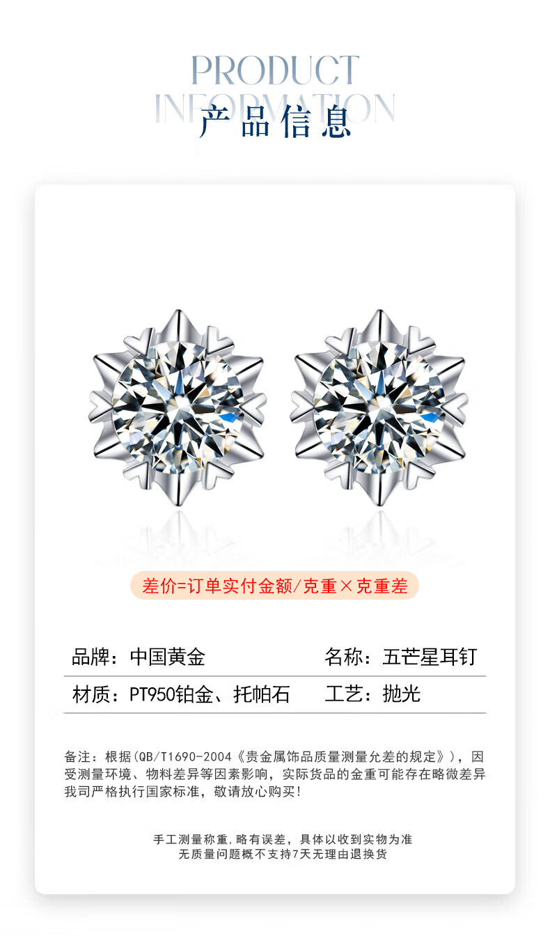 China Gold (CHINA GOLD) pt950 platinum earrings for women platinum five-pointed star topaz earrings Valentine's Day birthday gift for girlfriend and wife topaz five-pointed star earrings about 1.8g