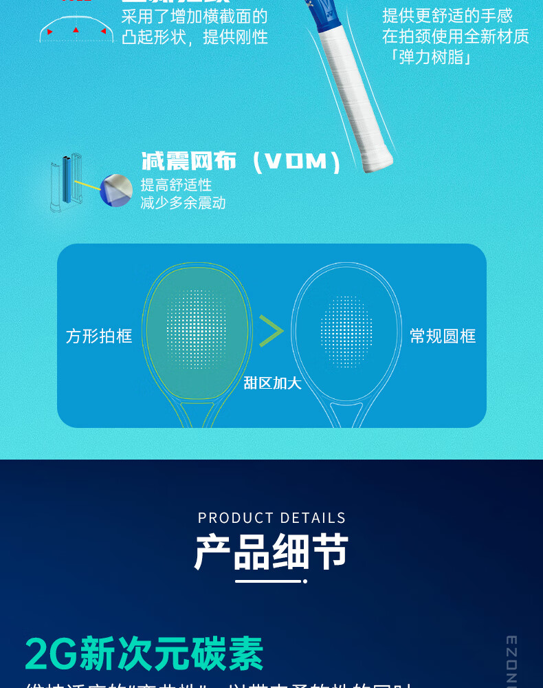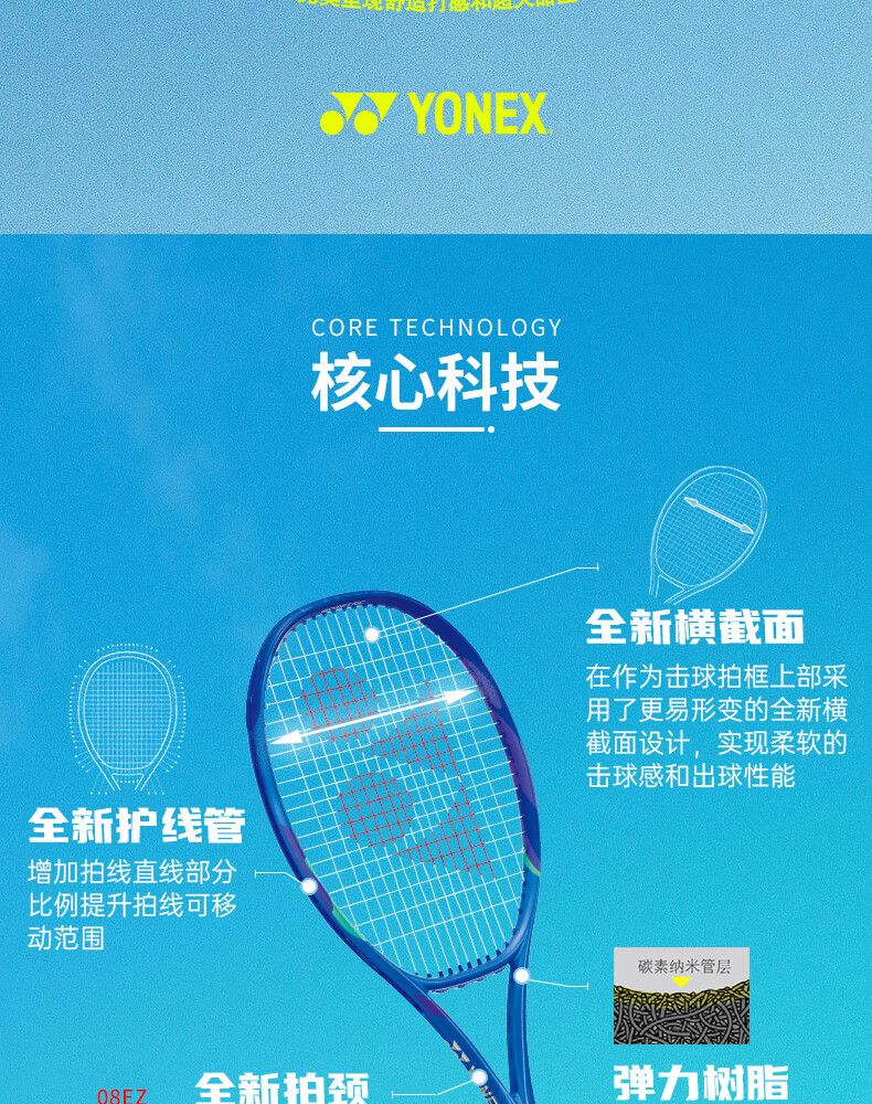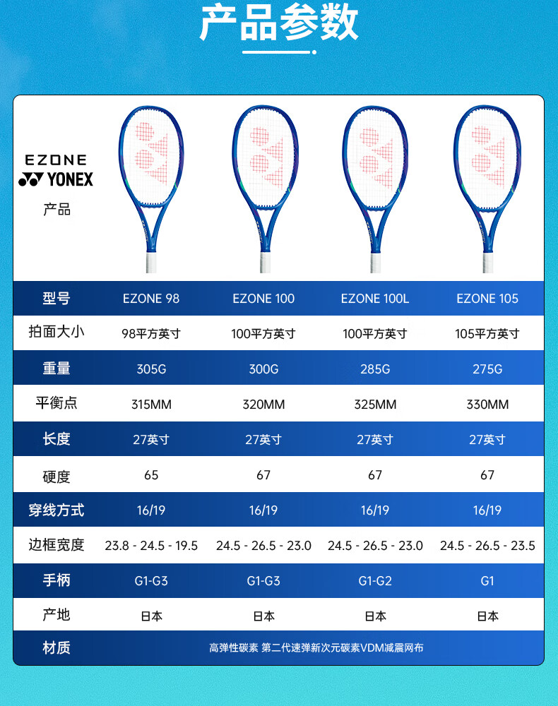 Yonex (YONEX) tennis racket full carbon 25 years new 8th generation EZONE 100 Australian Open Ruder same style royal blue yy offensive professional racket Shanghai Masters joint model Ezone 98 No. 2 handle