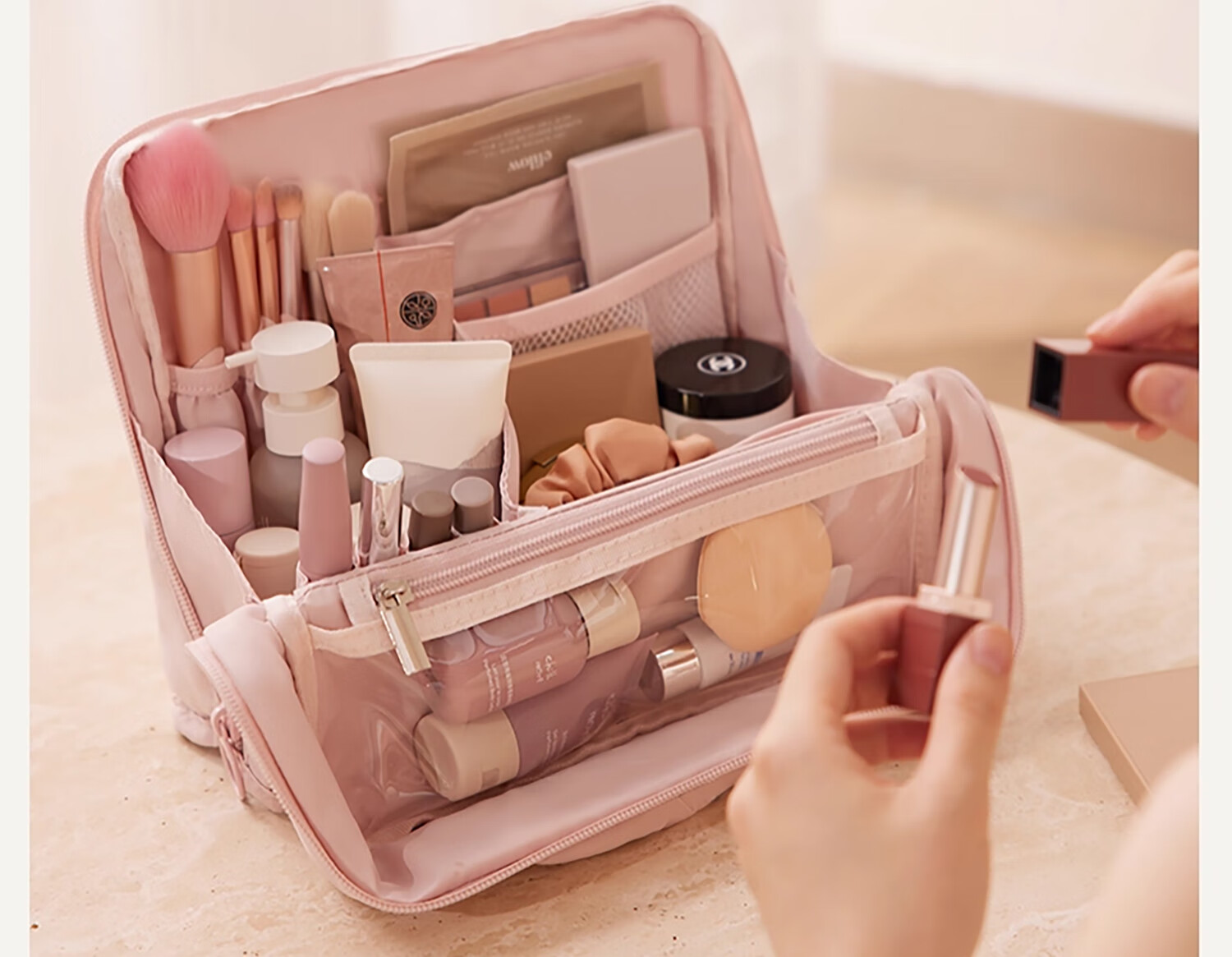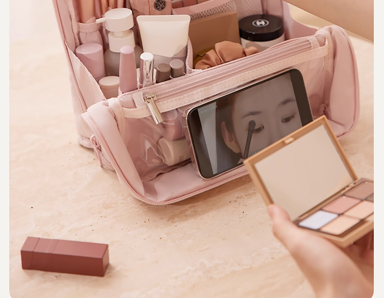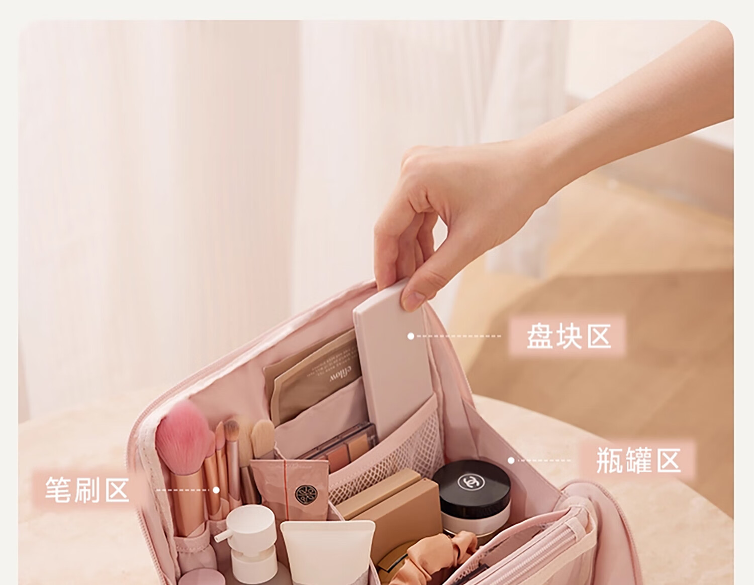 Nayijia cosmetic bag portable out-going ladies 2025 new high-end travel and large-capacity toiletry storage bag with high appearance value Muyun powder standing cosmetic bag/no odor