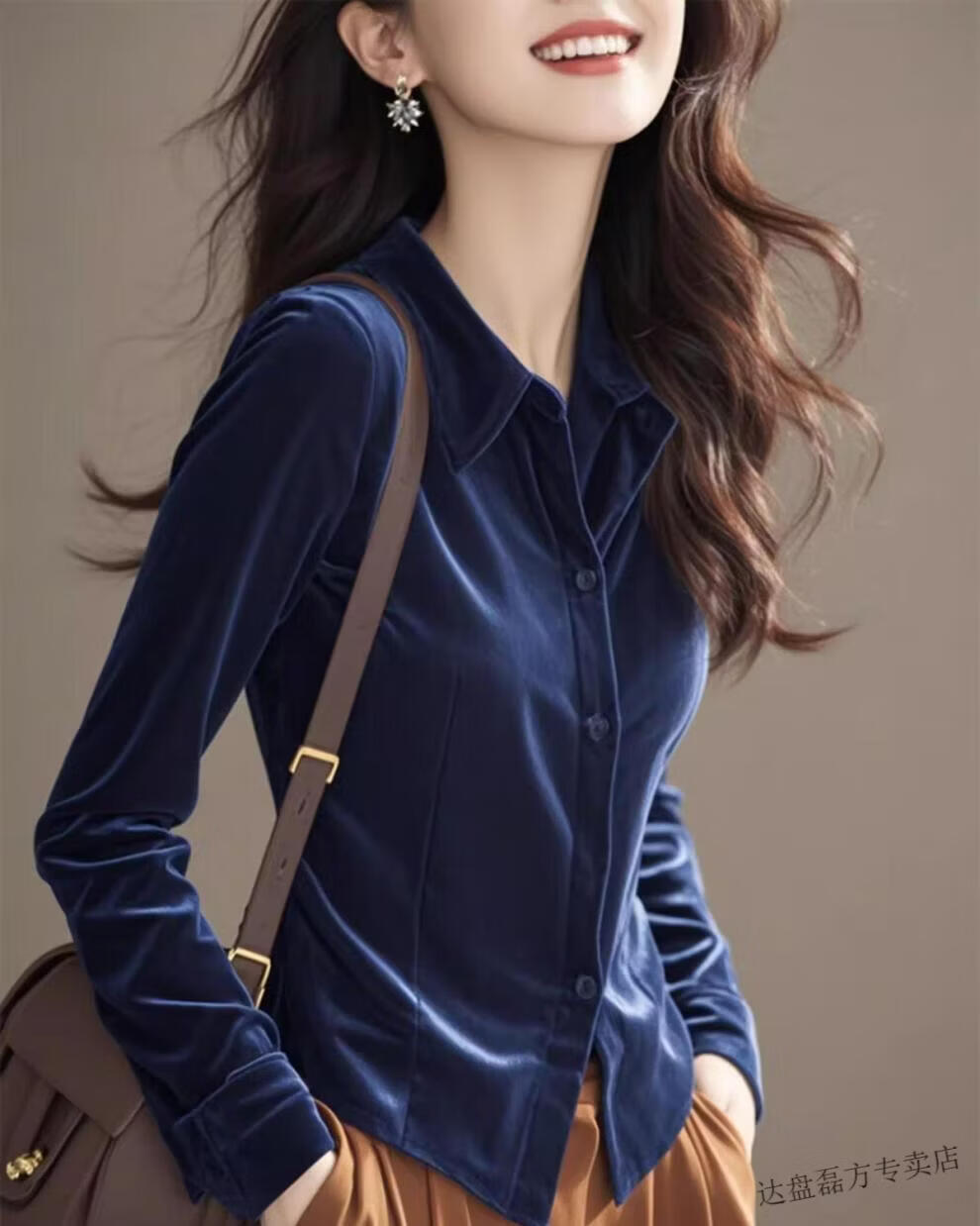 Lomon gold velvet bottoming shirt in autumn and winter, beautiful, high-end and temperamental top, super good-looking, unique and unique shirt, navy blue L 110-120Jin Jin is equal to 0.5 kg