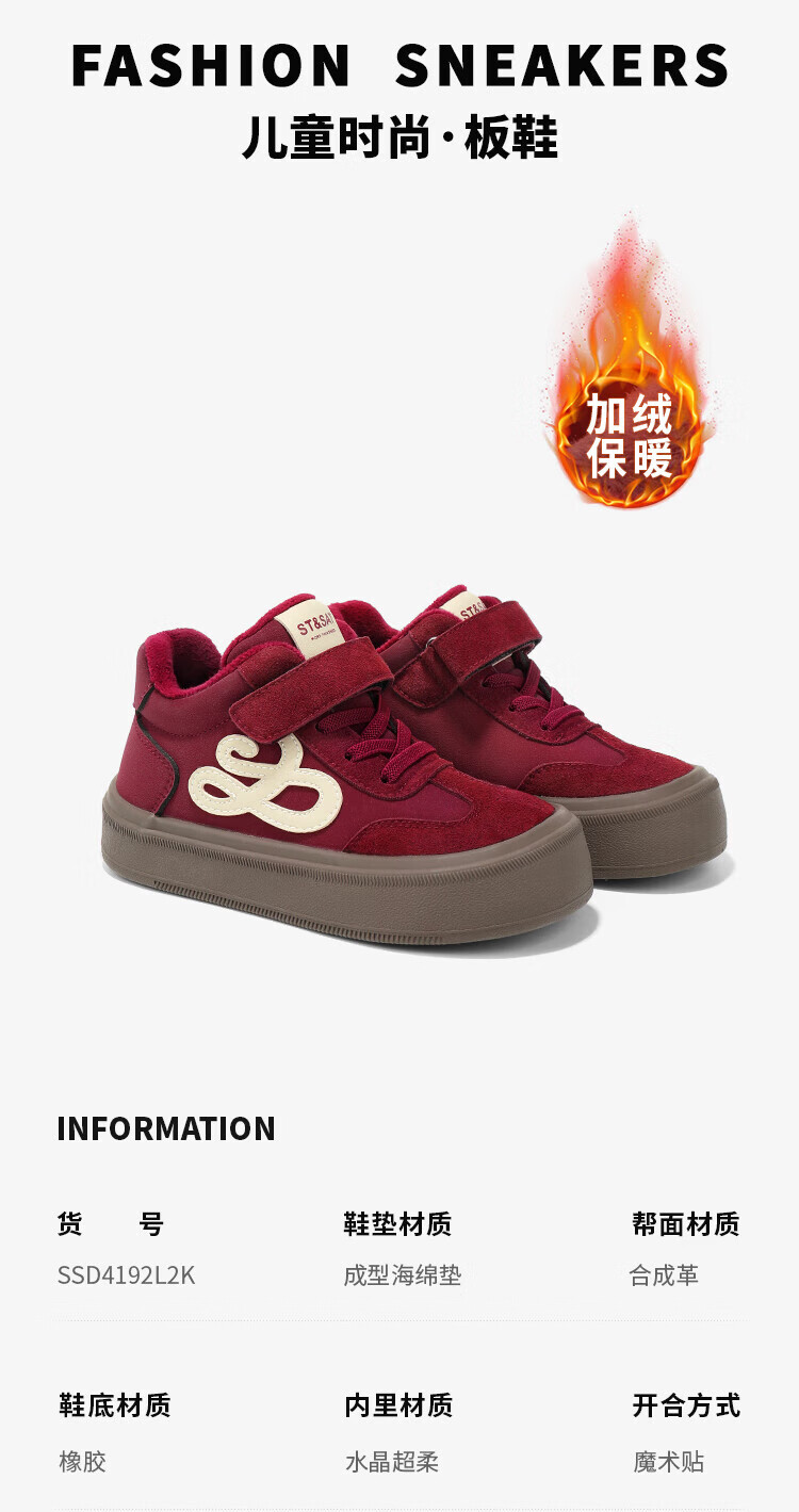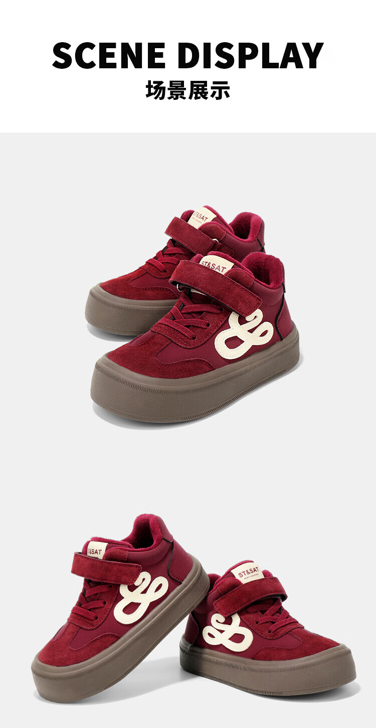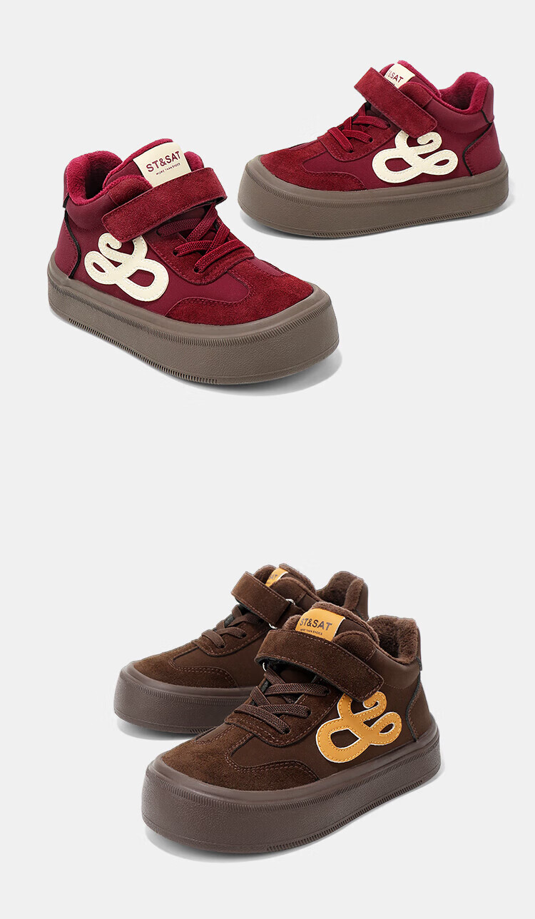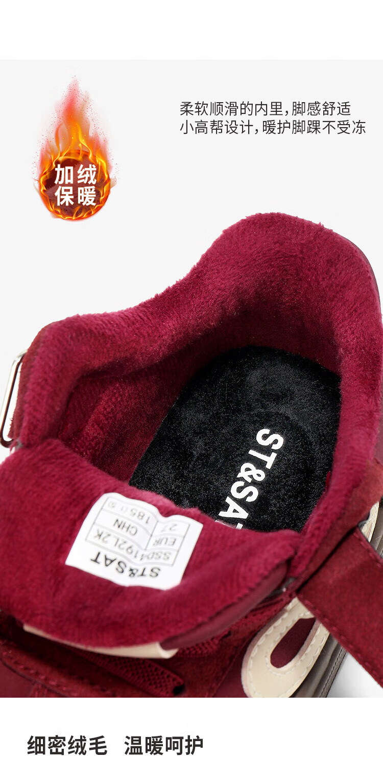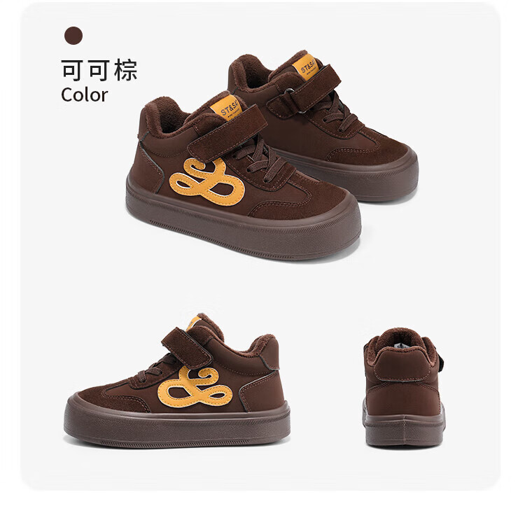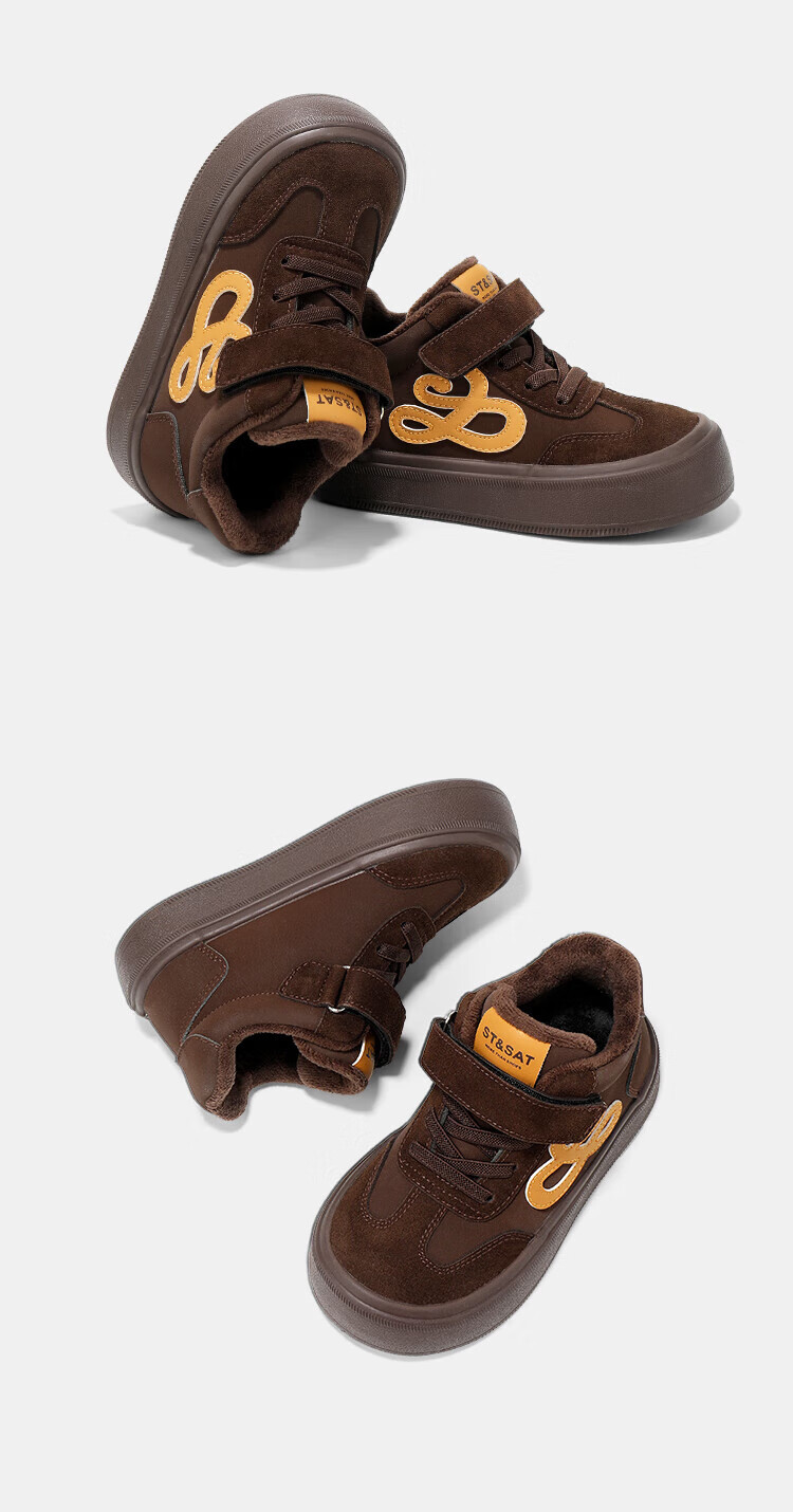 Saturday children's shoes, children's cotton shoes, autumn and winter new style, girls' thickened casual shoes, boys' warm sports shoes, sneakers, cocoa brown 31, inner length 19.8cm/suitable for feet 19.0cm