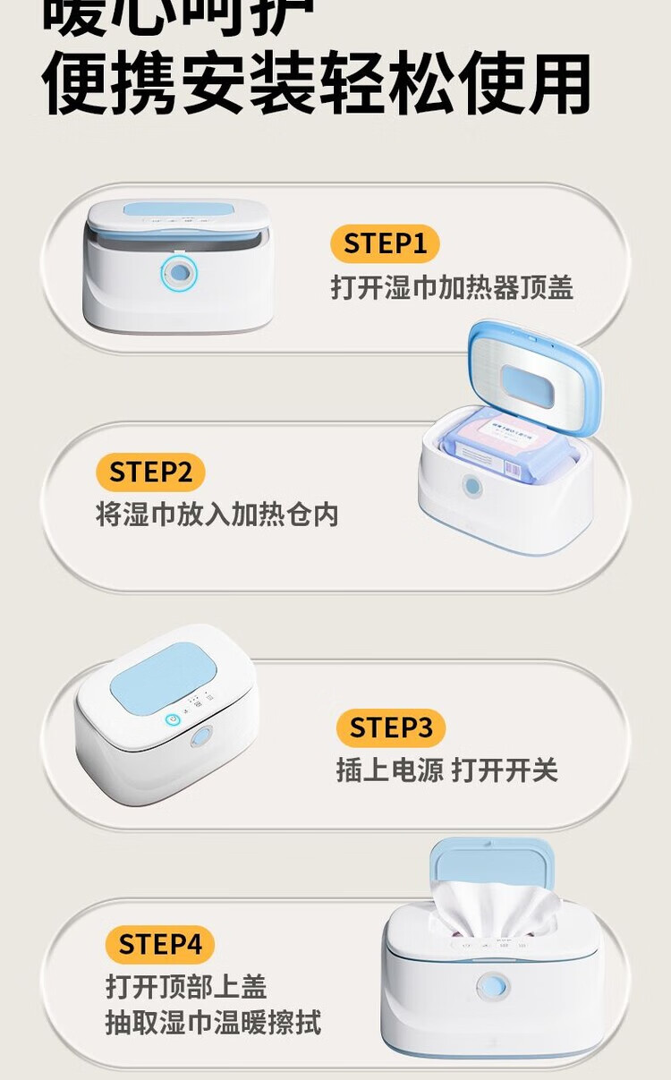 Miaopule Wet Tissue Heater Constant Temperature Portable Baby Wet Tissue Insulation Box Heater Household Wet Tissue Heating Box All-Day Intelligent Constant Temperature 3-level Adjustment Wet Tissue Heater