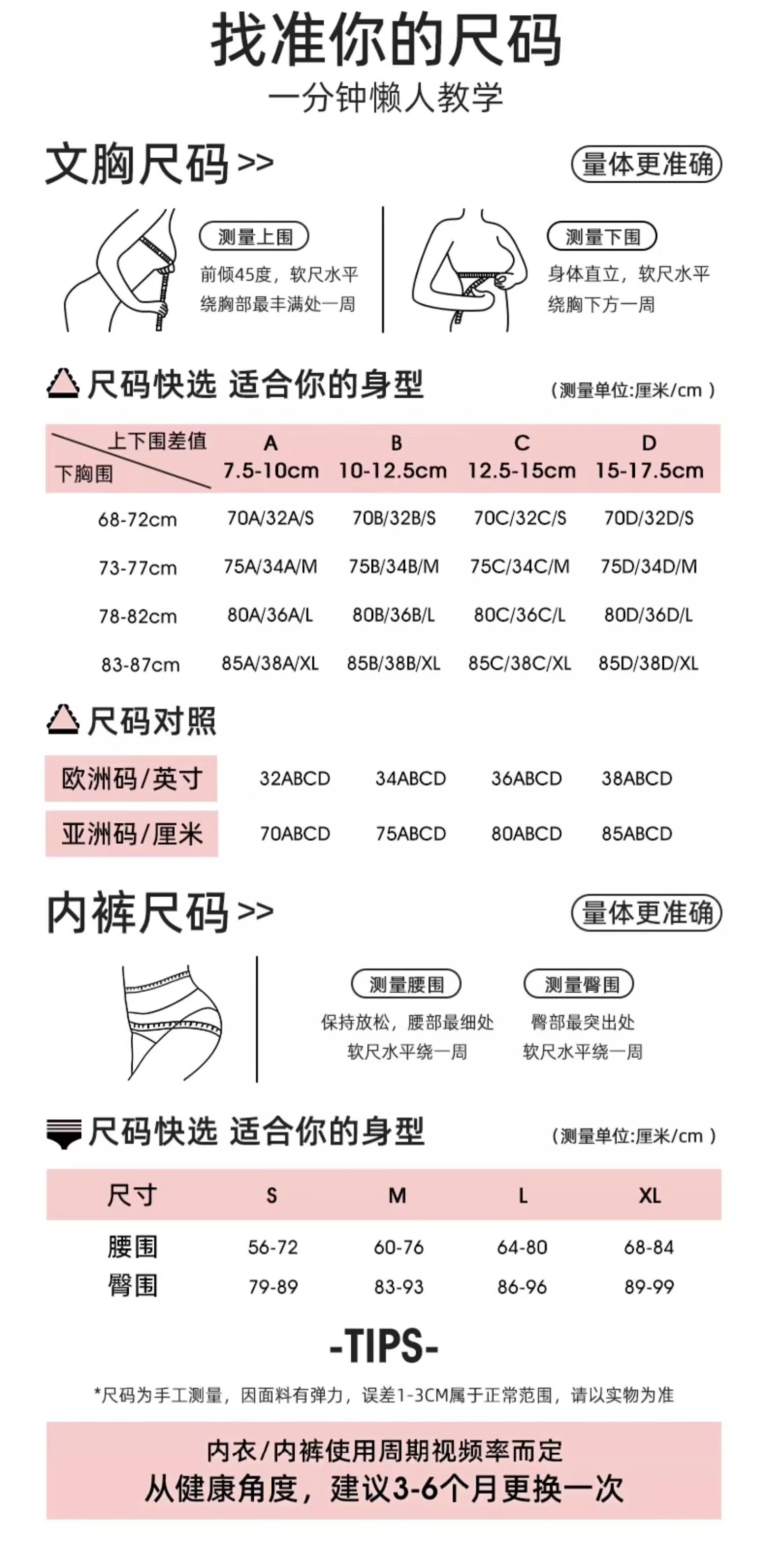 China (cm) 160-165/84-86 165-170 / 88-90 167-172 / 92-96 168-173 / 98-102 170-176 / 106-110