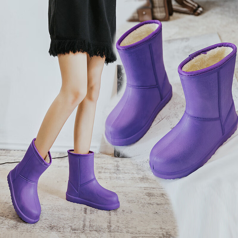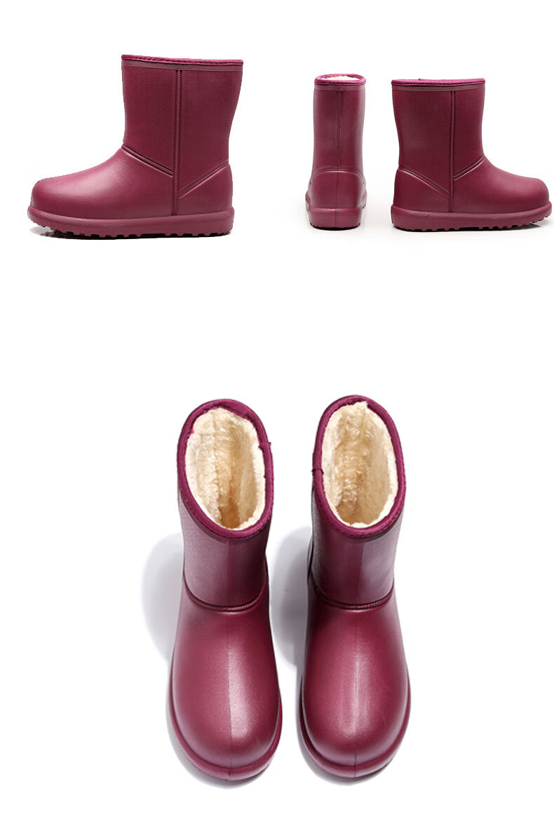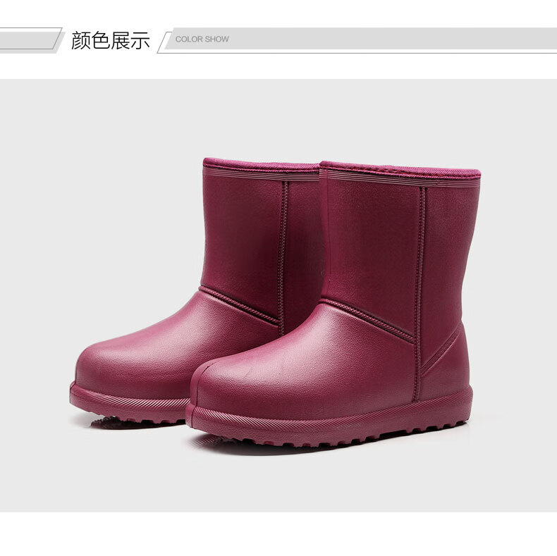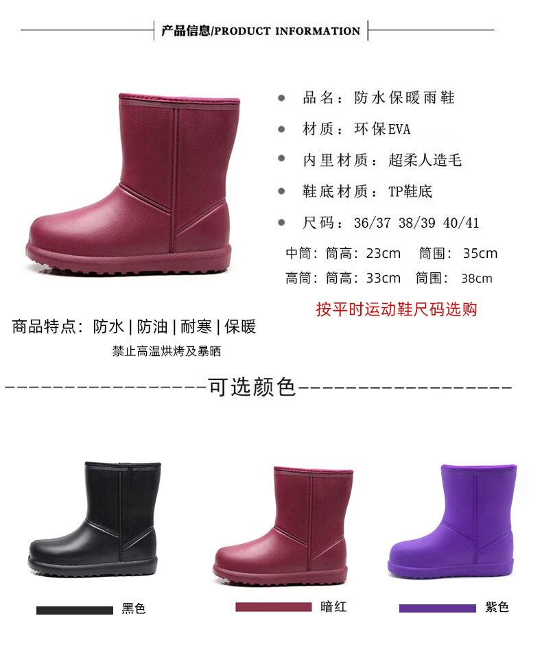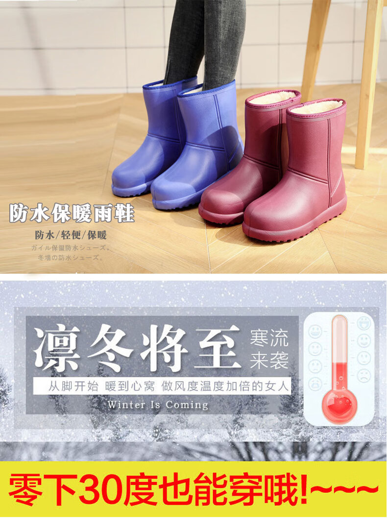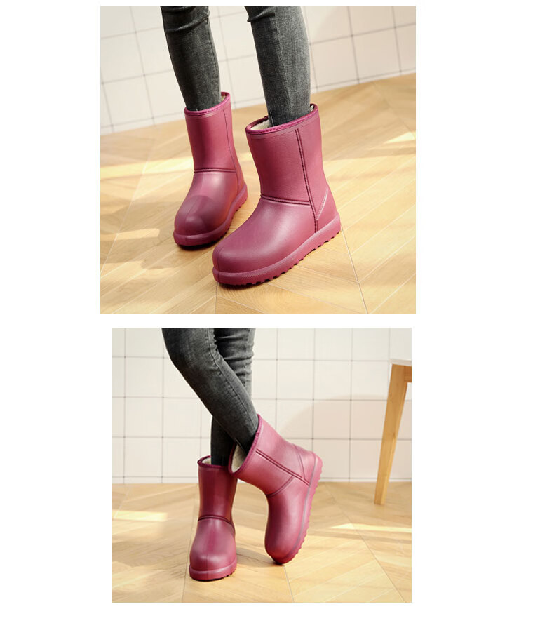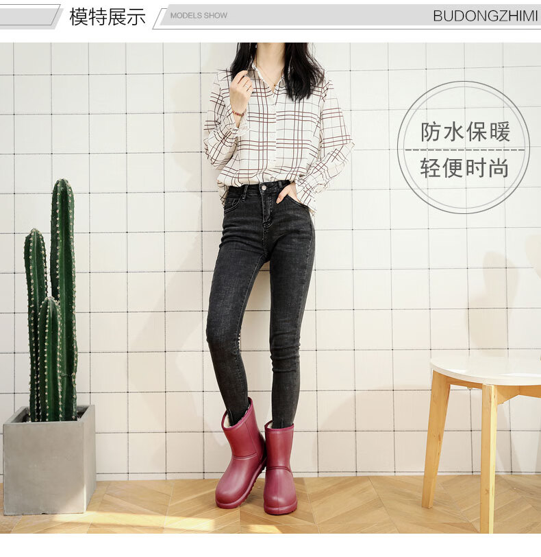 冬季加绒保暖雨鞋女防水防滑中筒加棉雨靴EVA轻便厨房洗车工作鞋 黑色 36-37