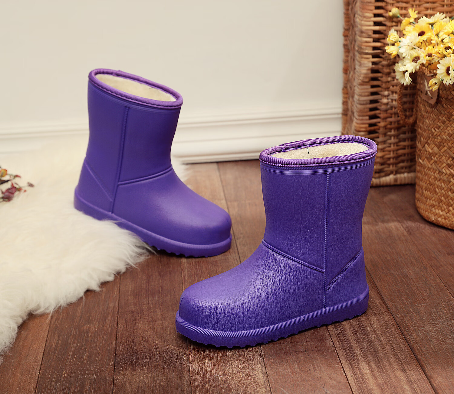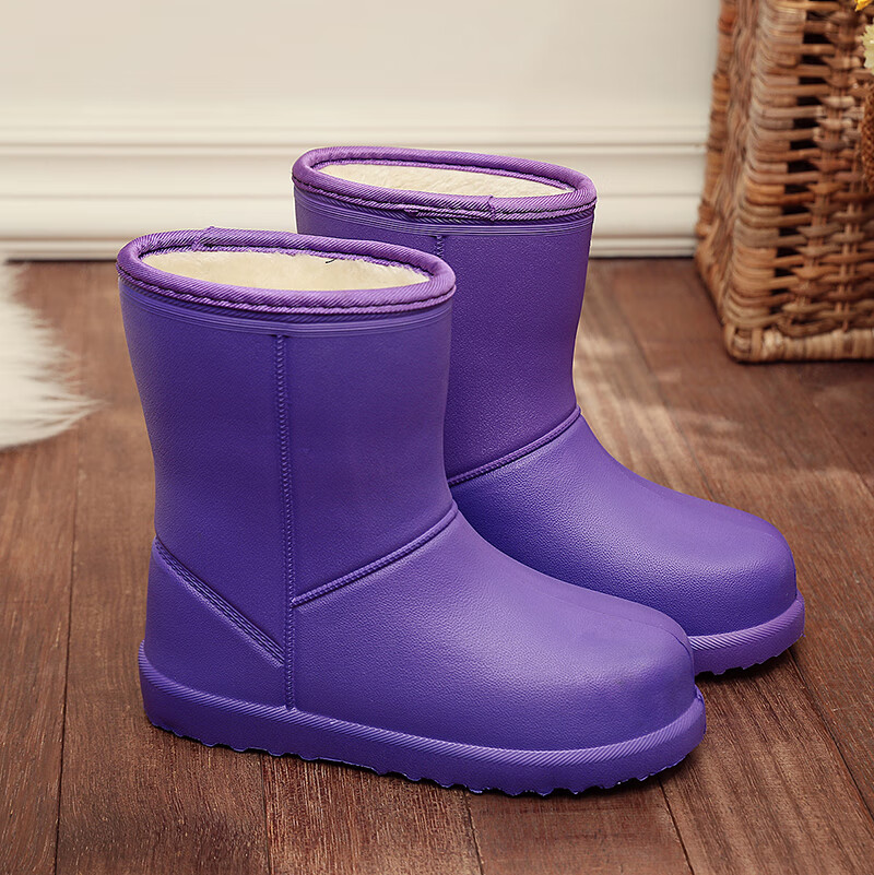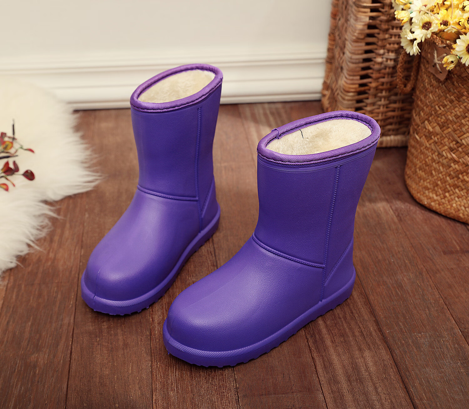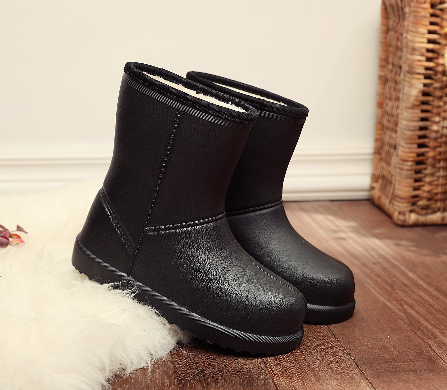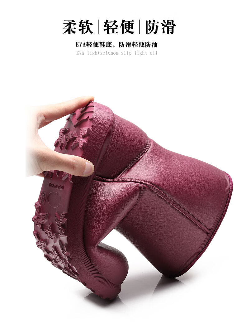 冬季加绒保暖雨鞋女防水防滑中筒加棉雨靴EVA轻便厨房洗车工作鞋 黑色 36-37