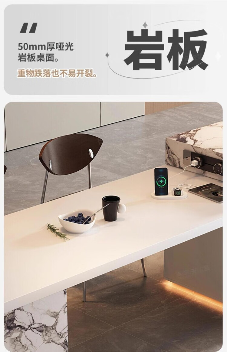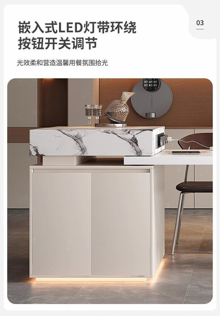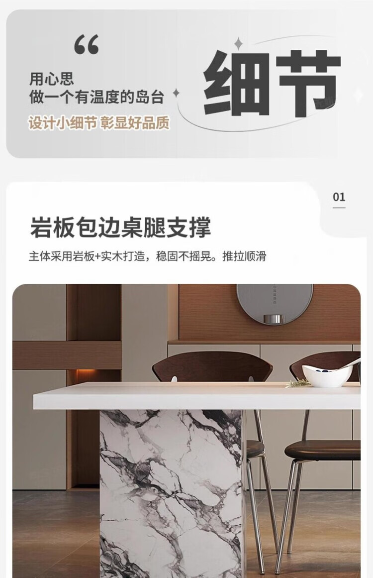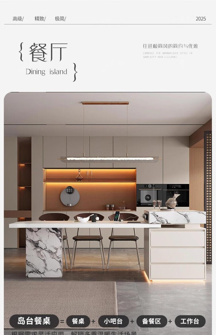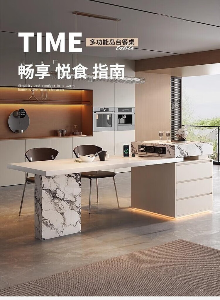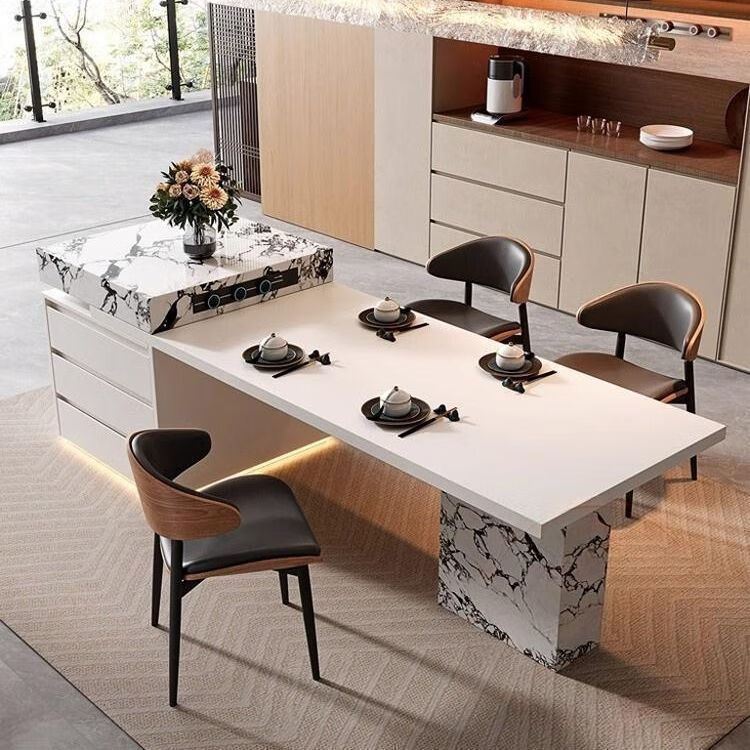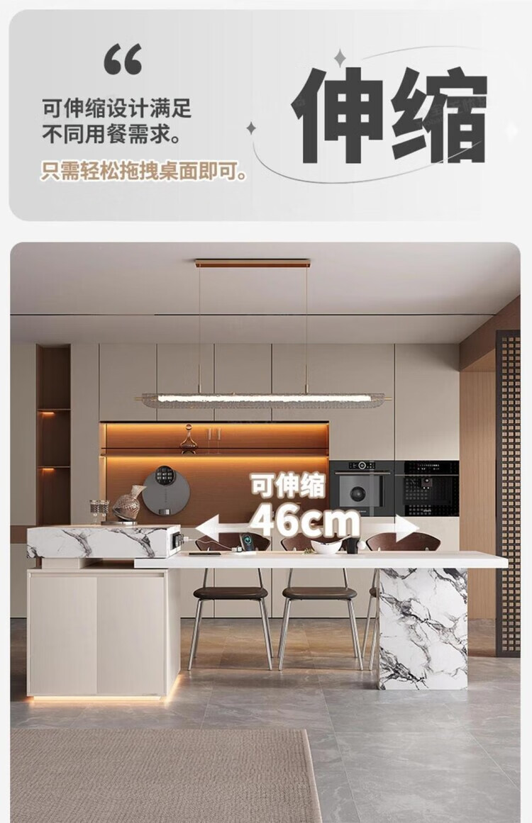 Shanghuashi island dining table integrated modern simple light luxury retractable dining table small apartment living room home dining table and chairs complete set 1.6 meters total length 1.95 (total length after telescopic 2.4 meters) hanging rock plate + slide rail socket (induction cooker model)