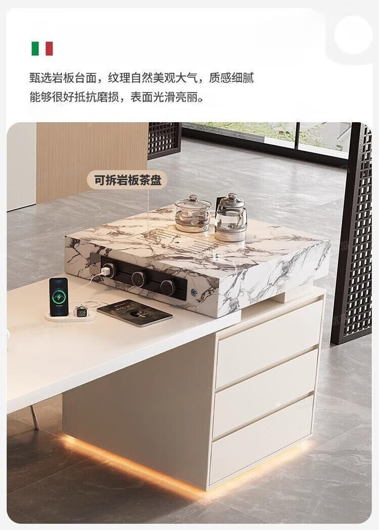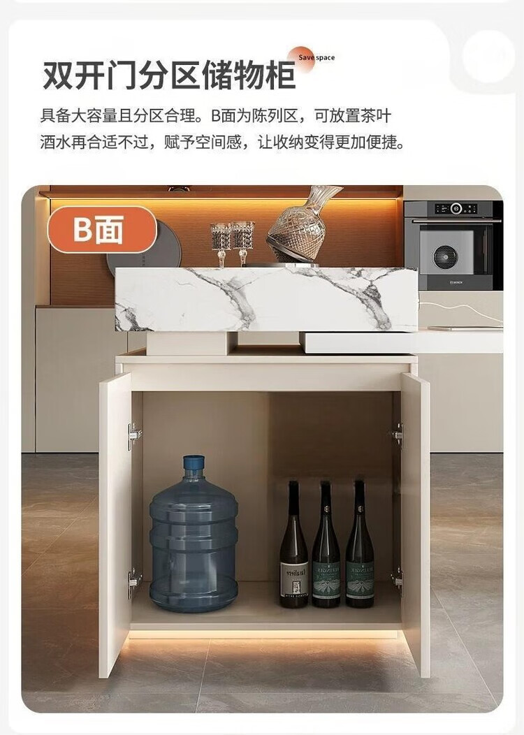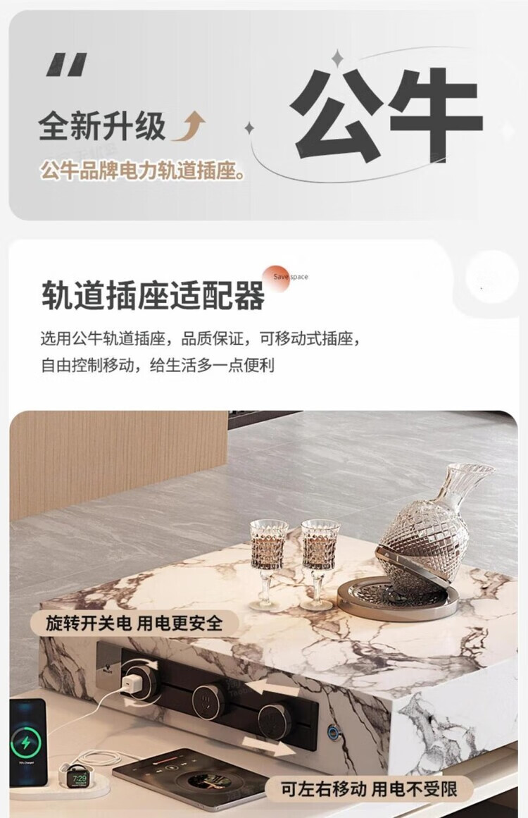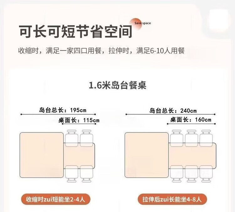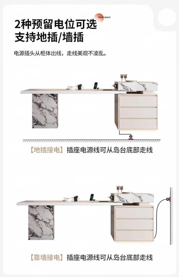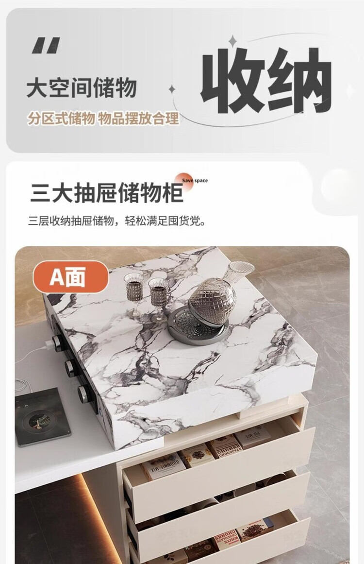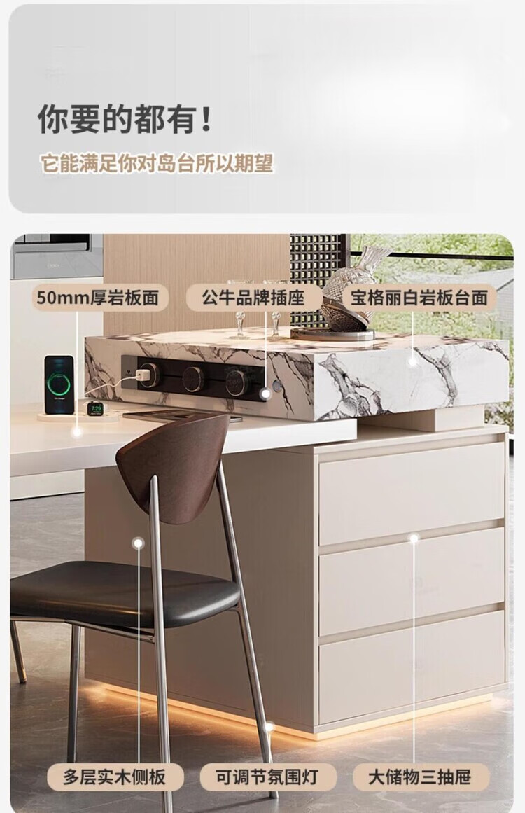 Shanghuashi island dining table integrated modern simple light luxury retractable dining table small apartment living room home dining table and chairs complete set 1.6 meters total length 1.95 (total length after telescopic 2.4 meters) hanging rock plate + slide rail socket (induction cooker model)