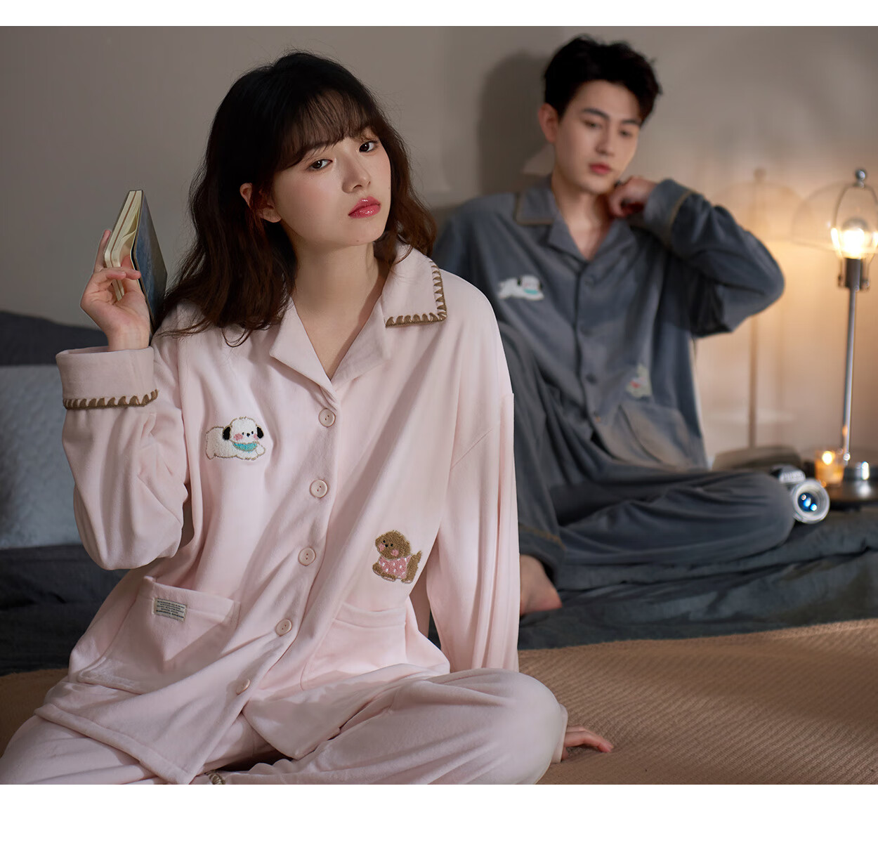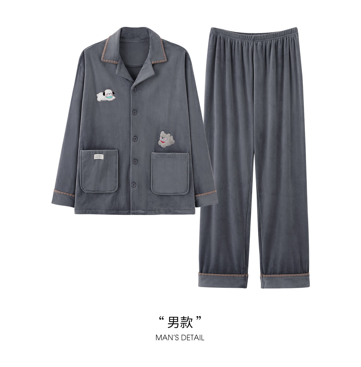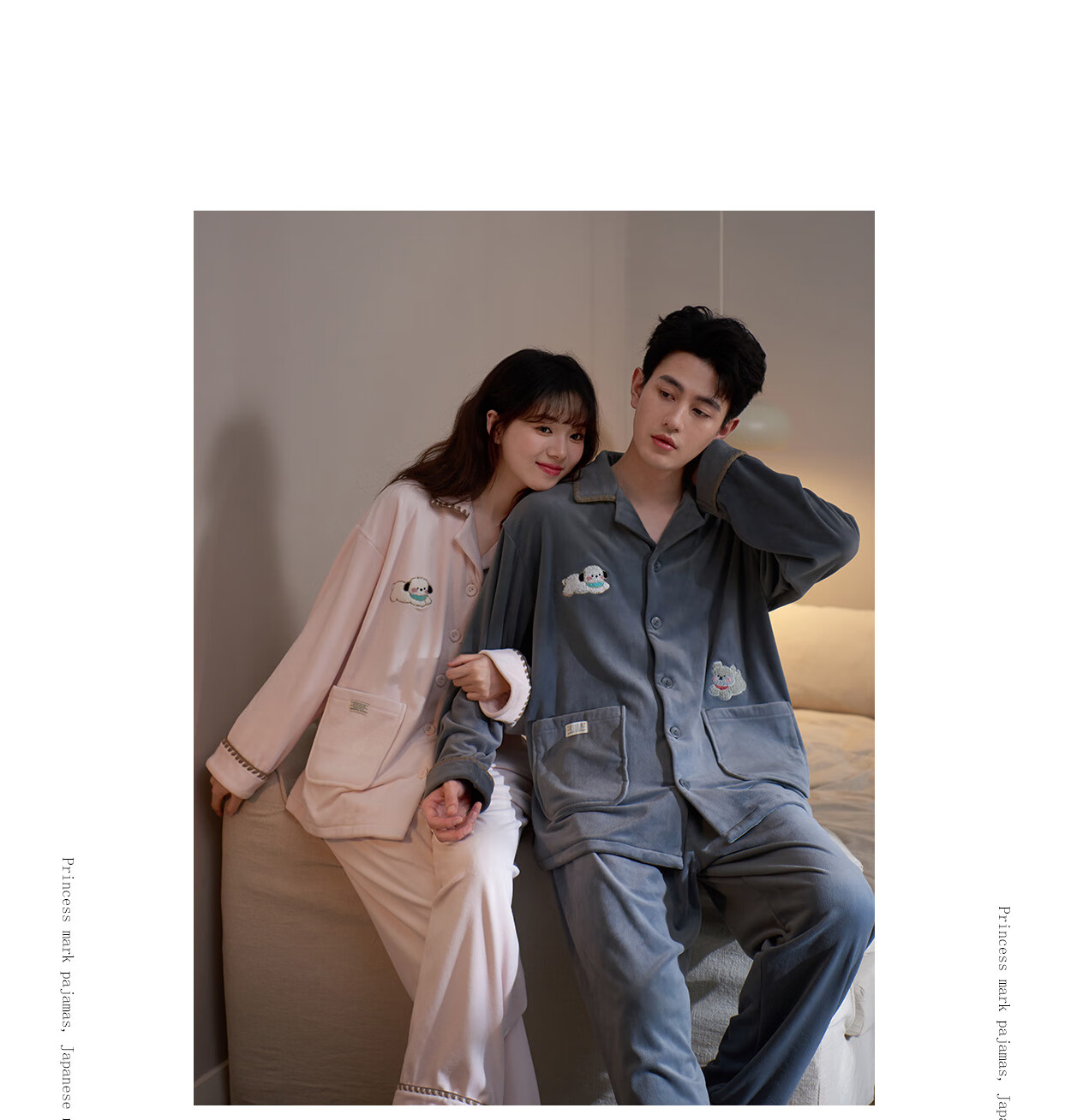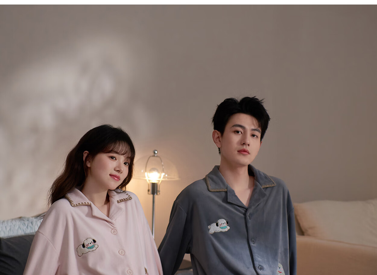Princess Mark Autumn and Winter Couple Home Clothes Women's Cute Cartoon Island Velvet Pajamas Men's Warm Soft Thin Velvet Suit LYR1245-Running Puppy Island Velvet Women's XL