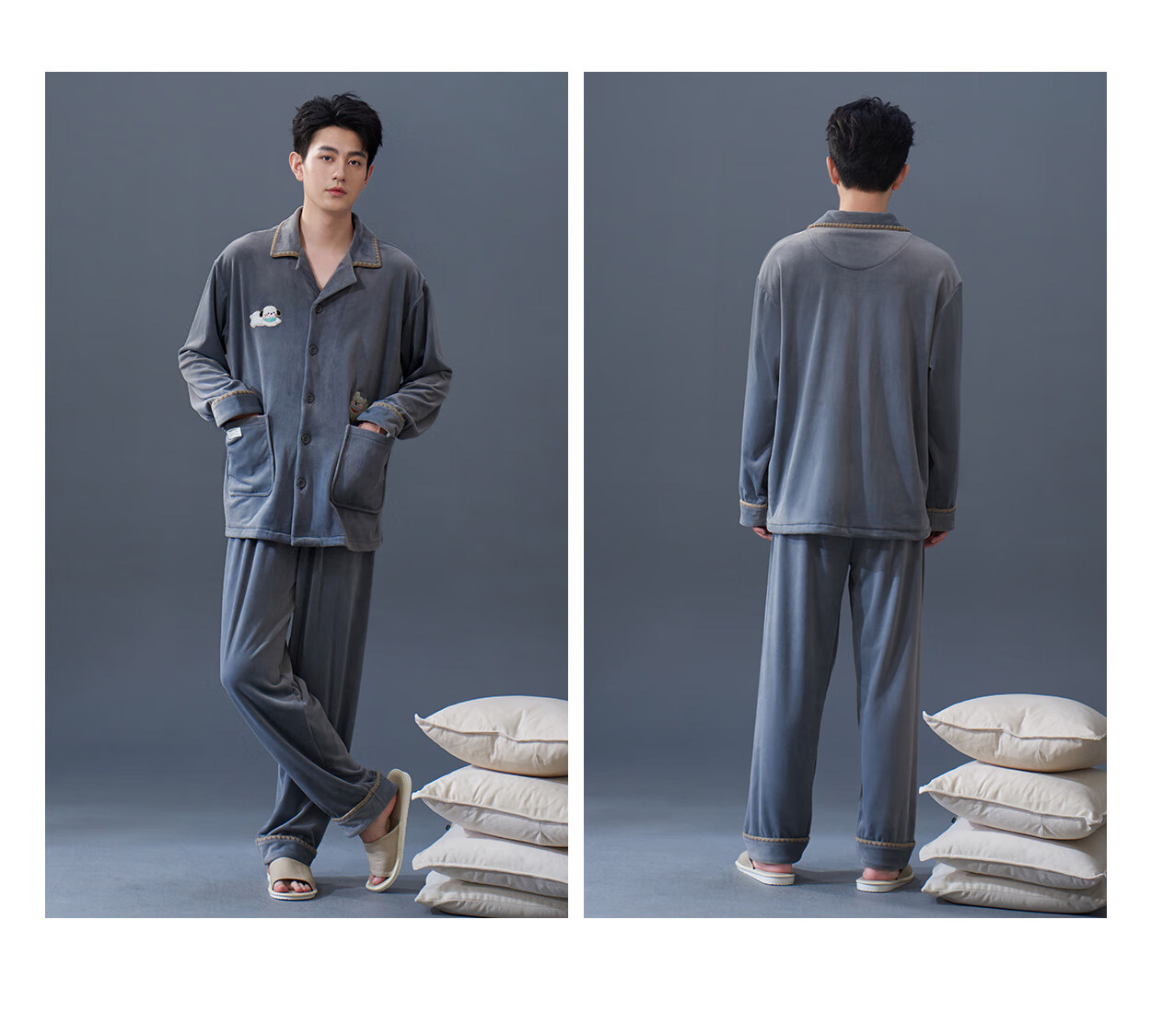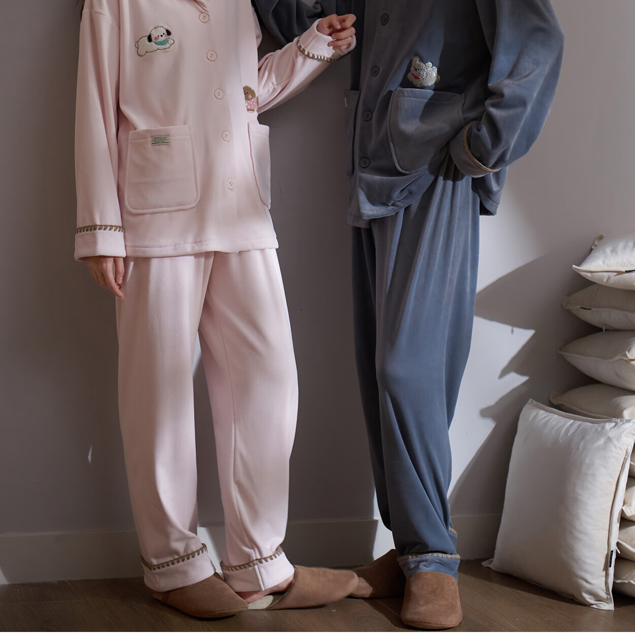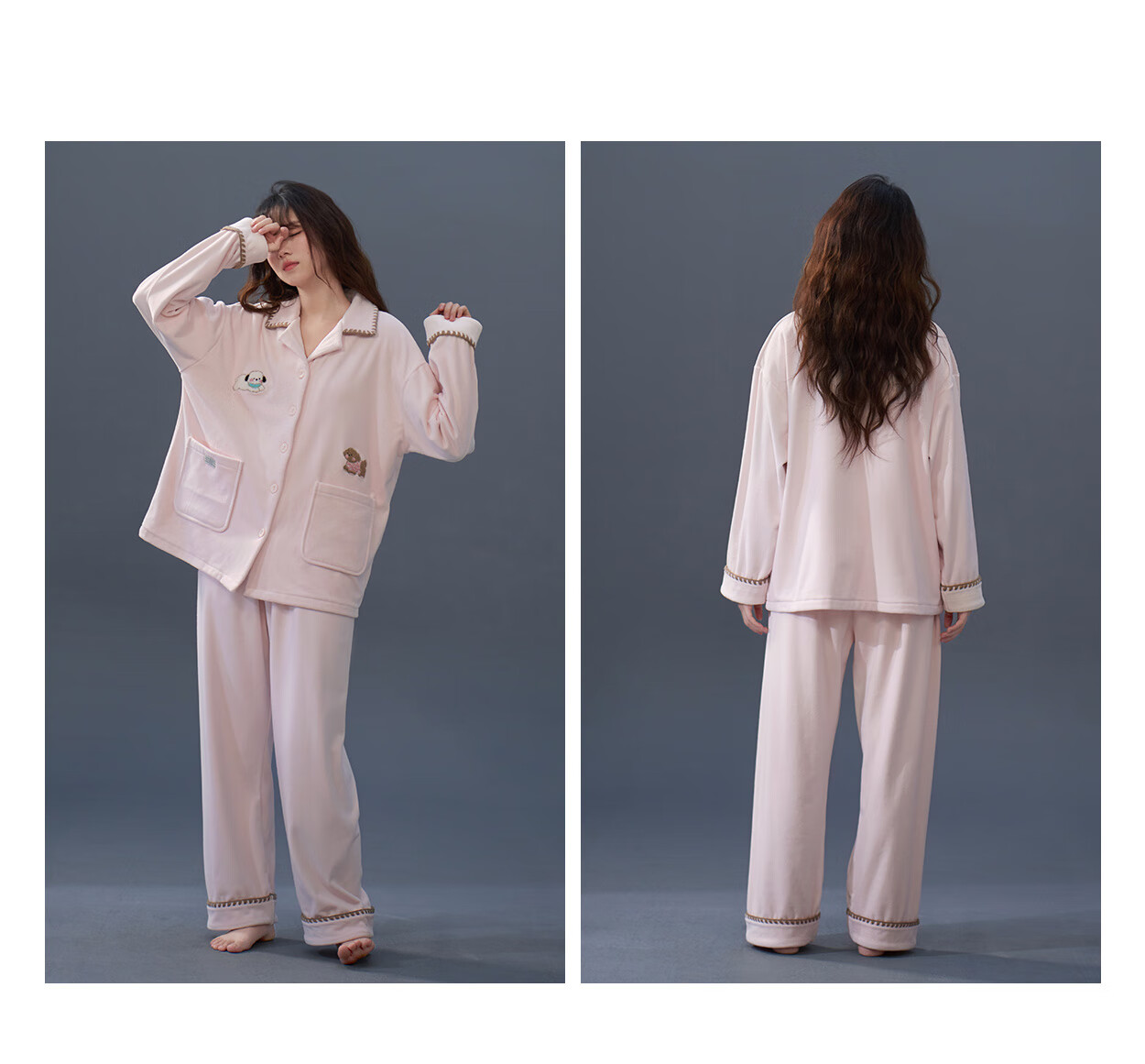 Princess Mark Autumn and Winter Couple Home Clothes Women's Cute Cartoon Island Velvet Pajamas Men's Warm Soft Thin Velvet Suit LYR1245-Running Puppy Island Velvet Women's XL