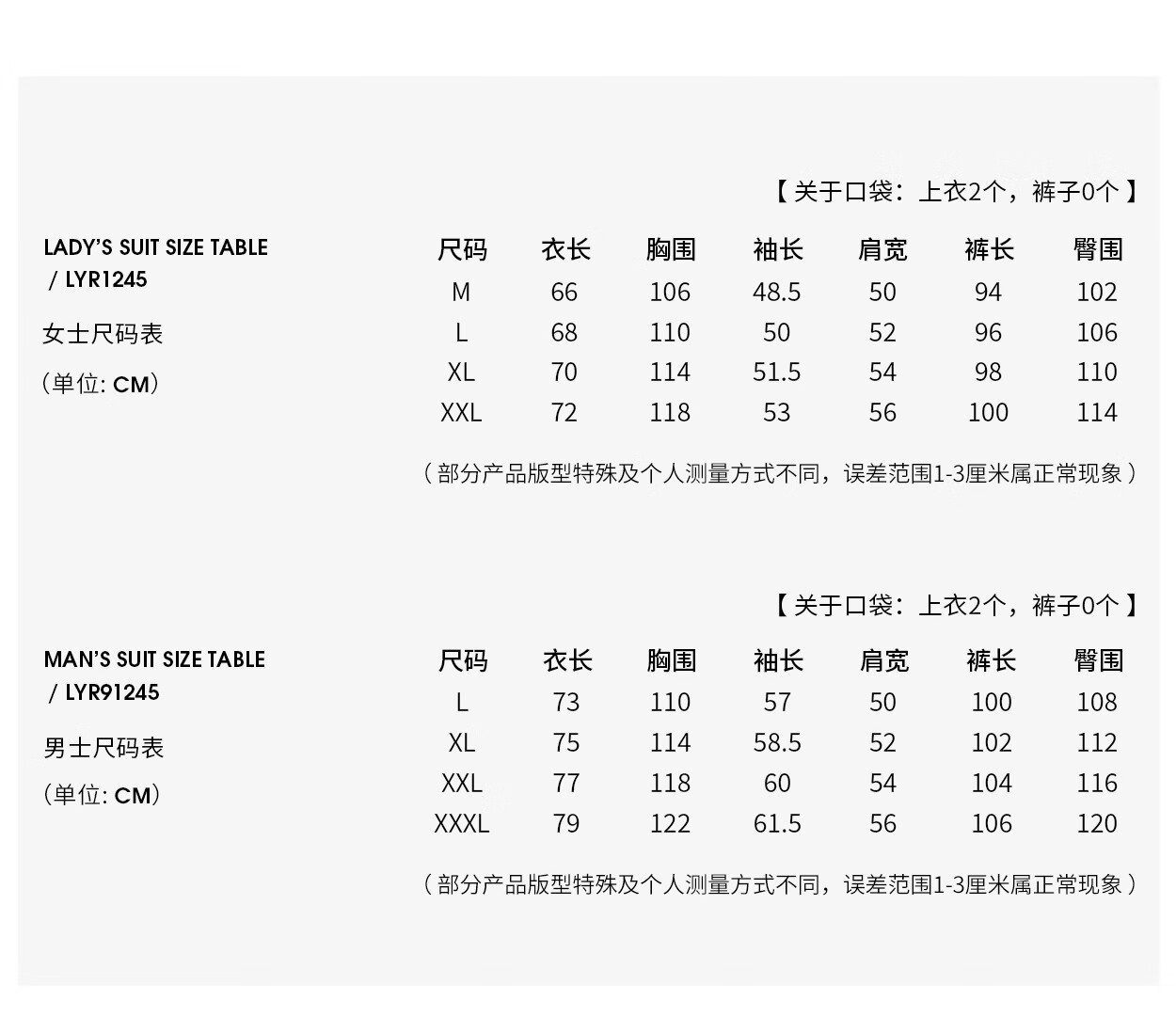 China (cm) 160-165/84-86 165-170 / 88-90 167-172 / 92-96 168-173 / 98-102 170-176 / 106-110