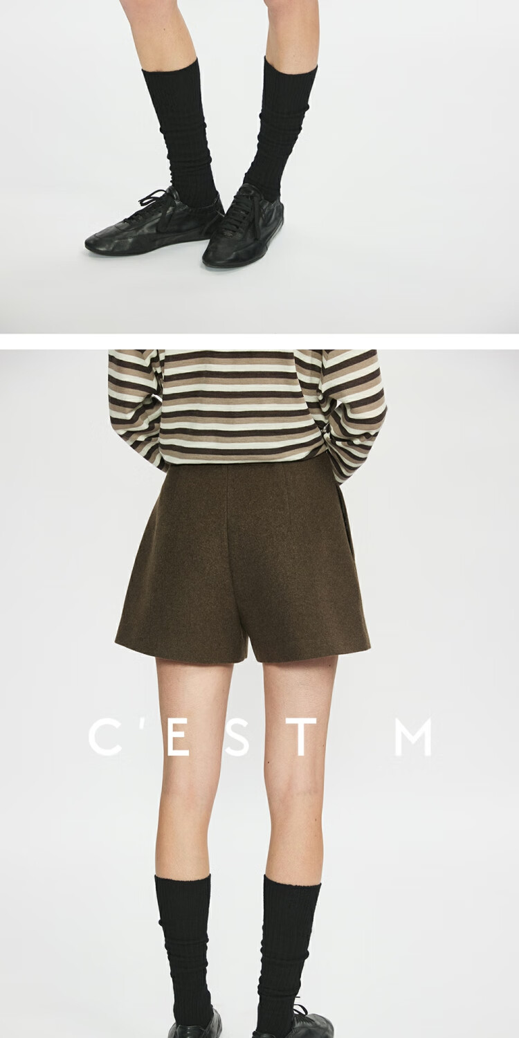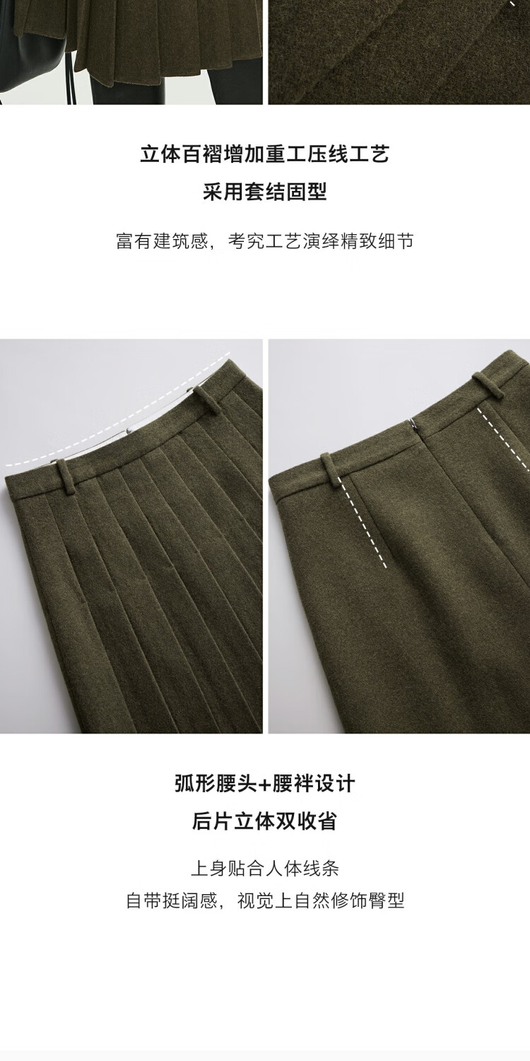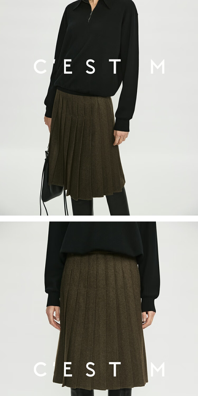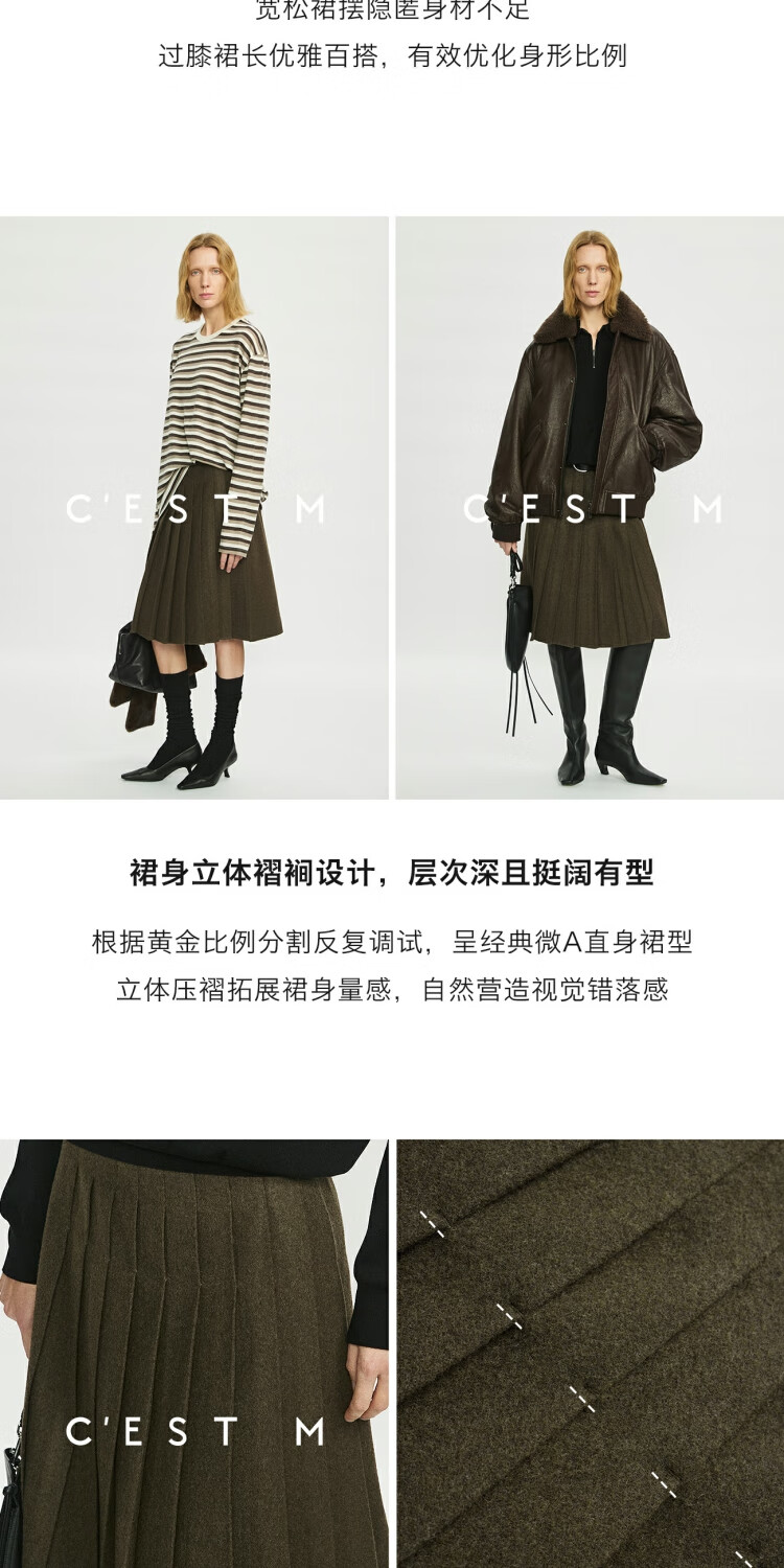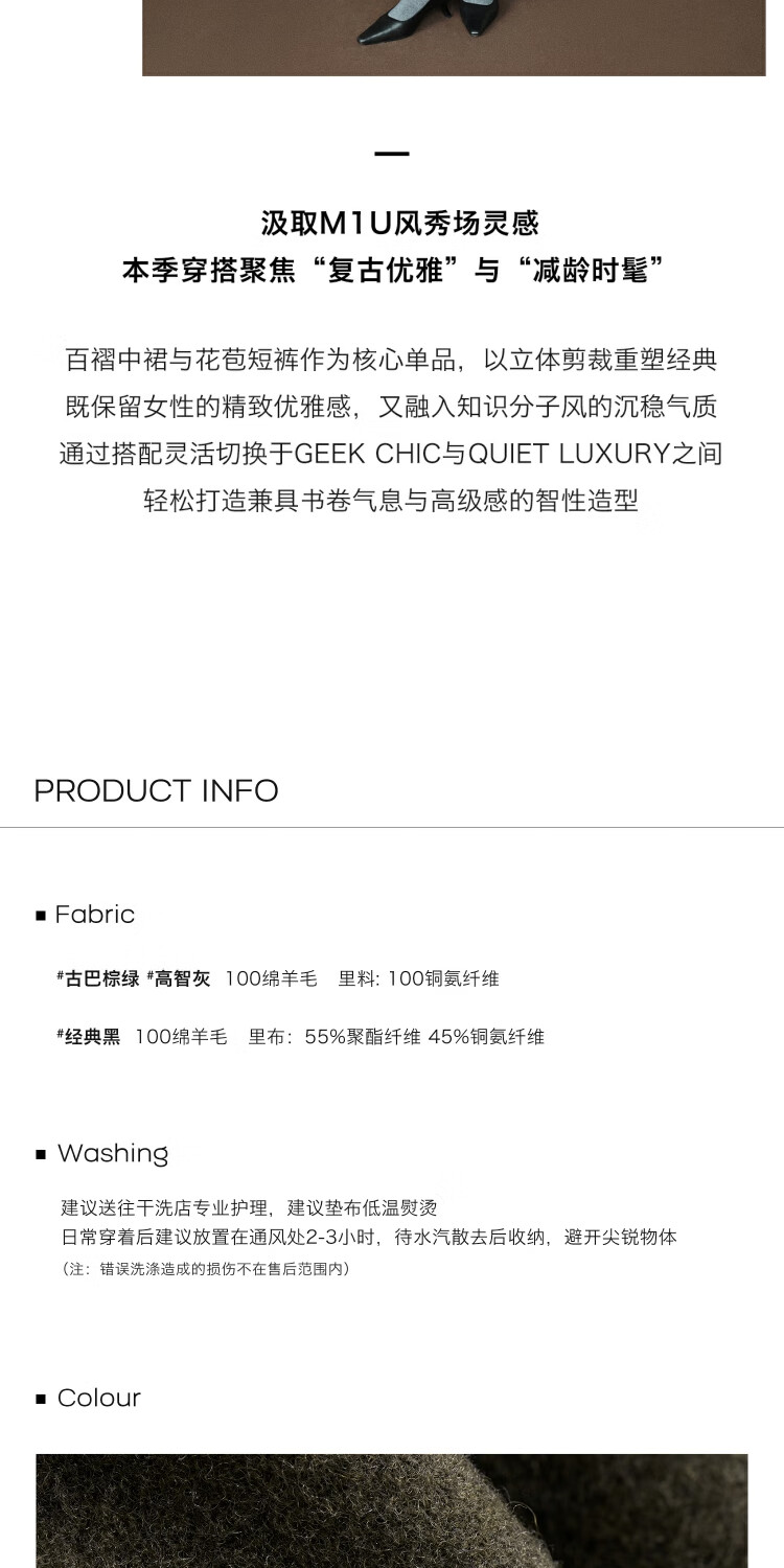 C EST M丨M1U style show intellectual style Exquisite and elegant wool pleated midi skirt & bud shorts Cuban brown green (shorts) S Ready in stock