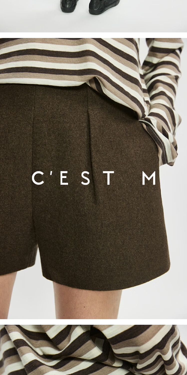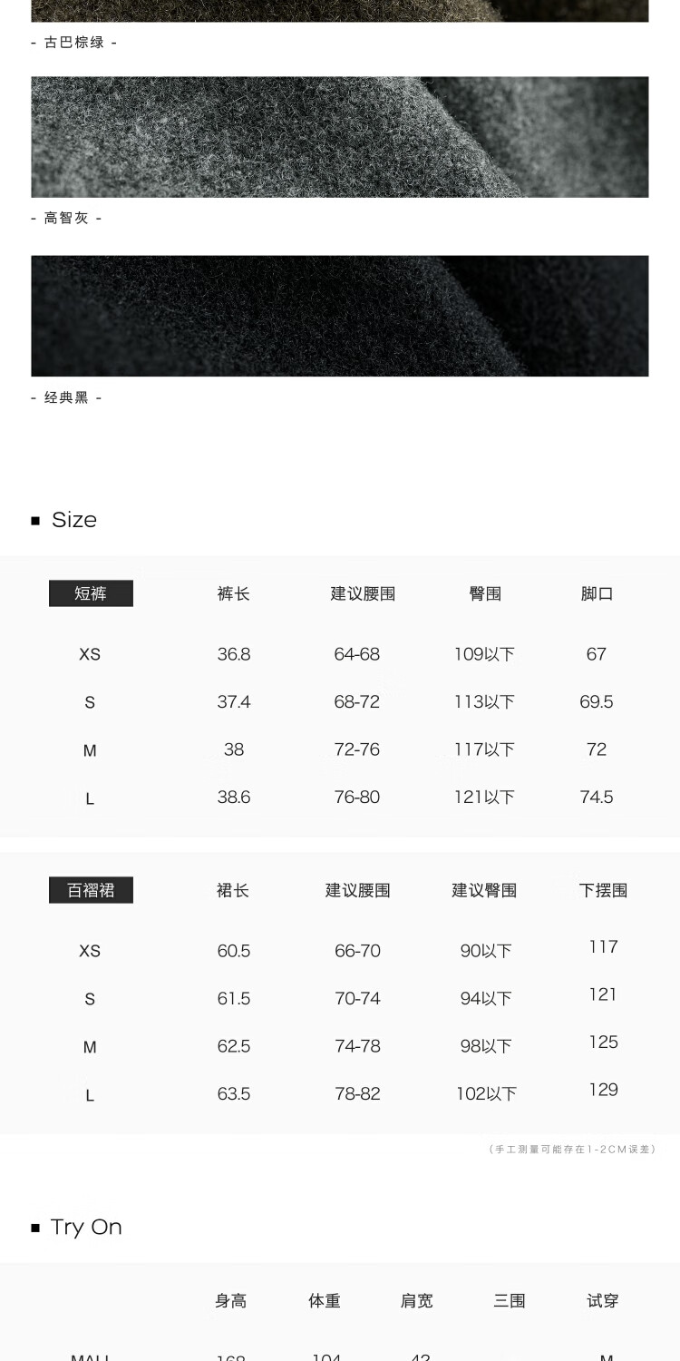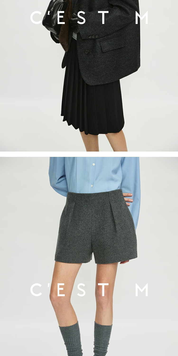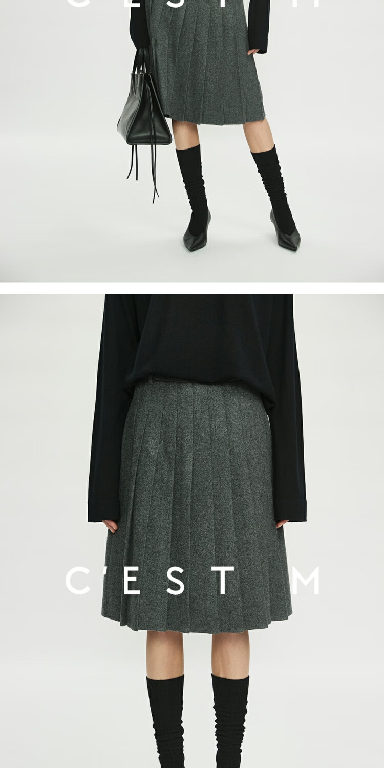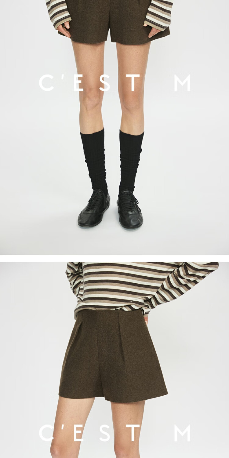 C EST M丨M1U style show intellectual style Exquisite and elegant wool pleated midi skirt & bud shorts Cuban brown green (shorts) S Ready in stock