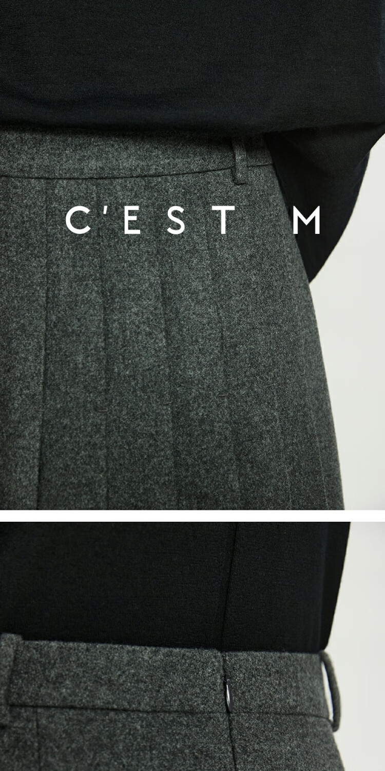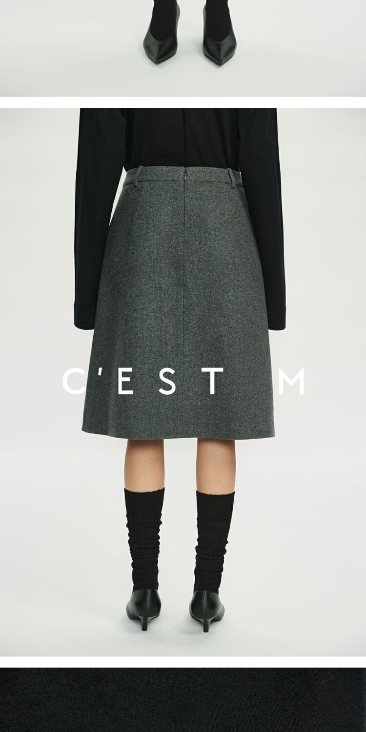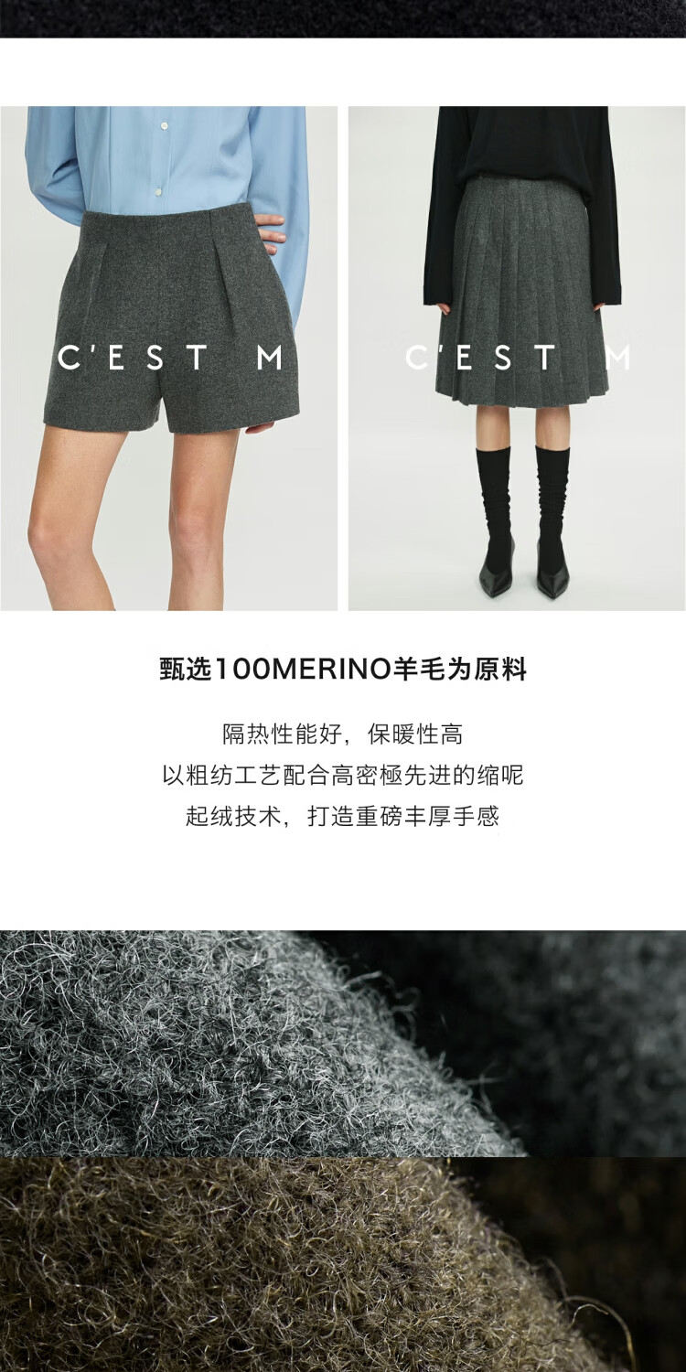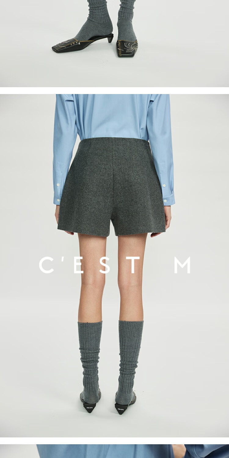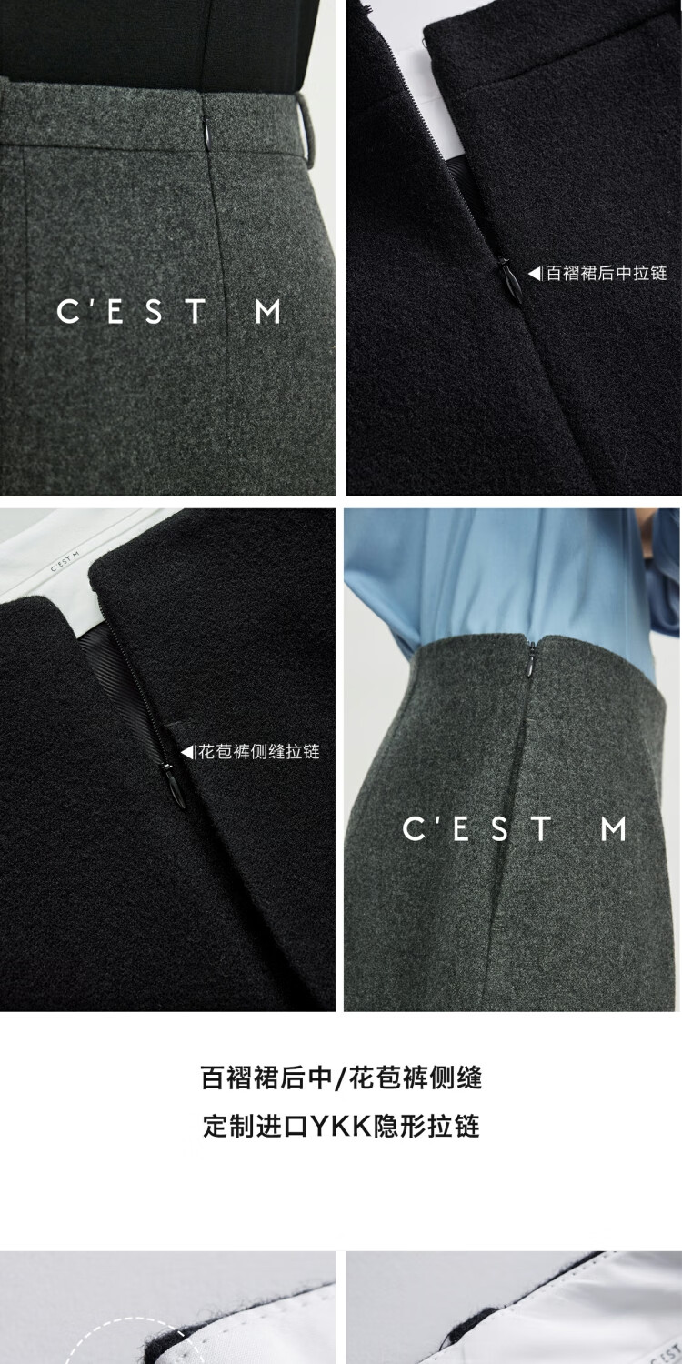 C EST M丨M1U style show intellectual style Exquisite and elegant wool pleated midi skirt & bud shorts Cuban brown green (shorts) S Ready in stock