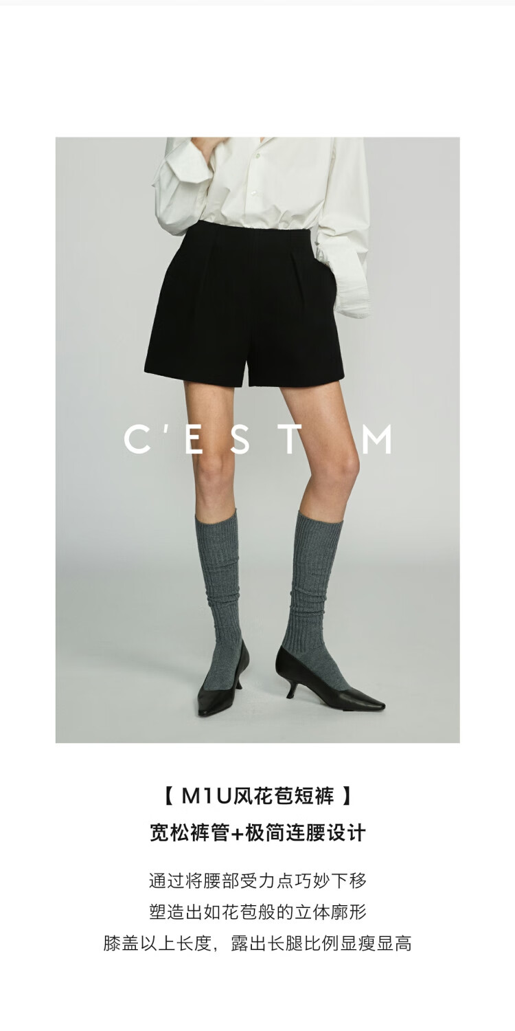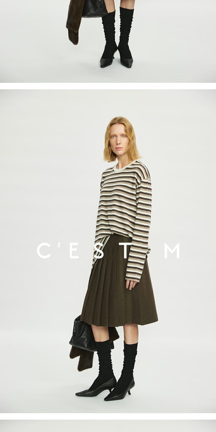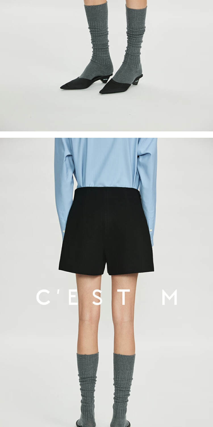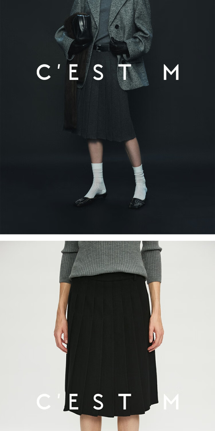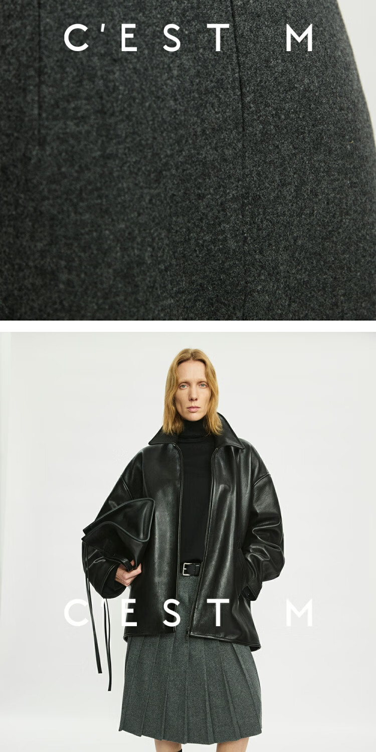 C EST M丨M1U style show intellectual style Exquisite and elegant wool pleated midi skirt & bud shorts Cuban brown green (shorts) S Ready in stock