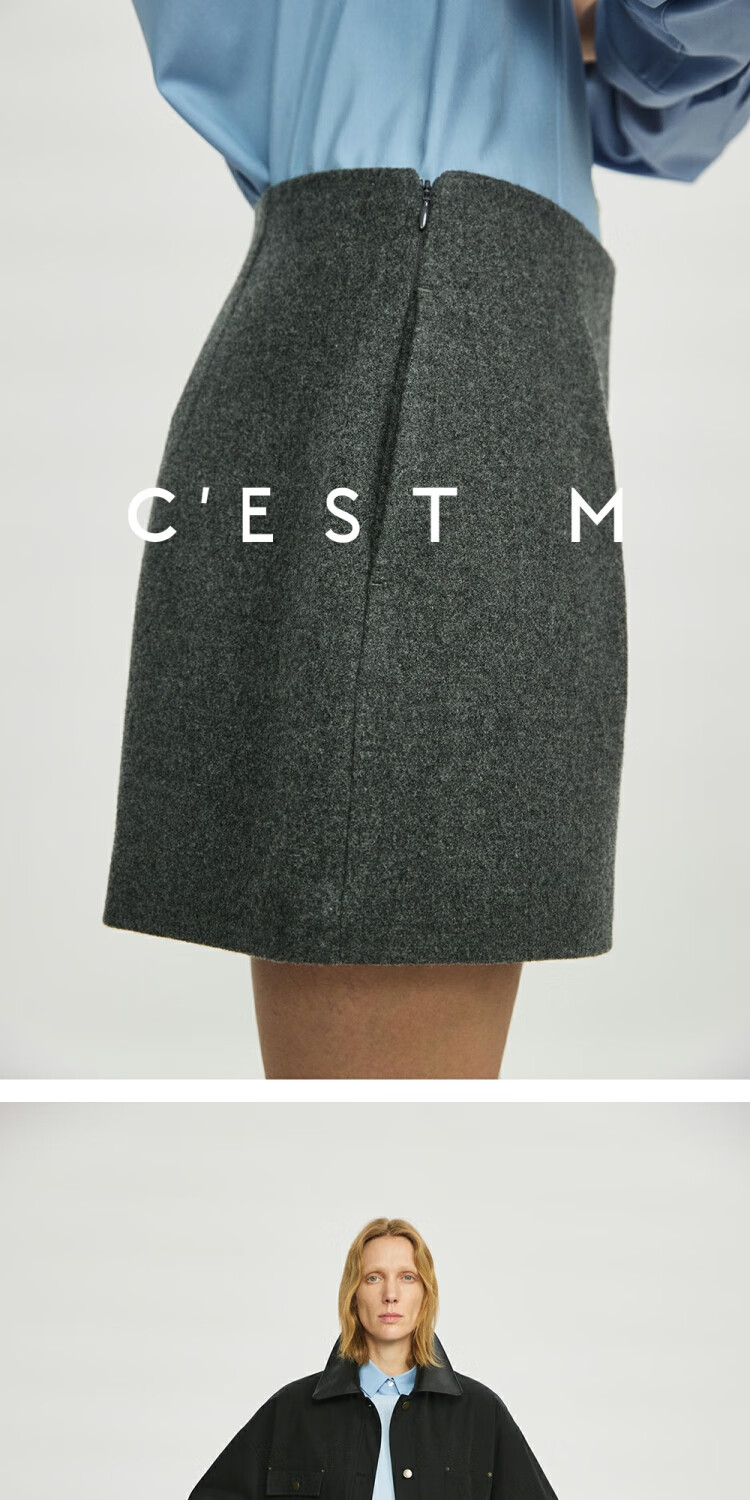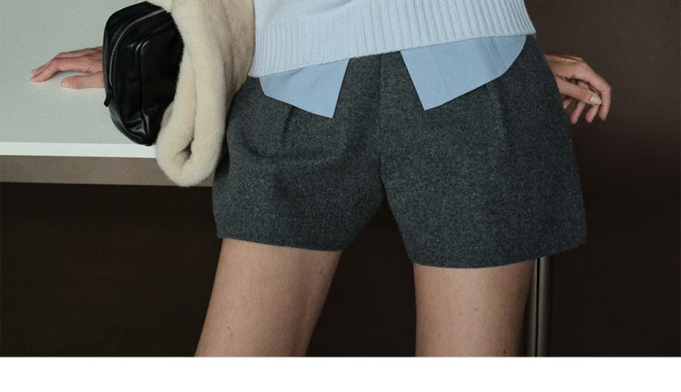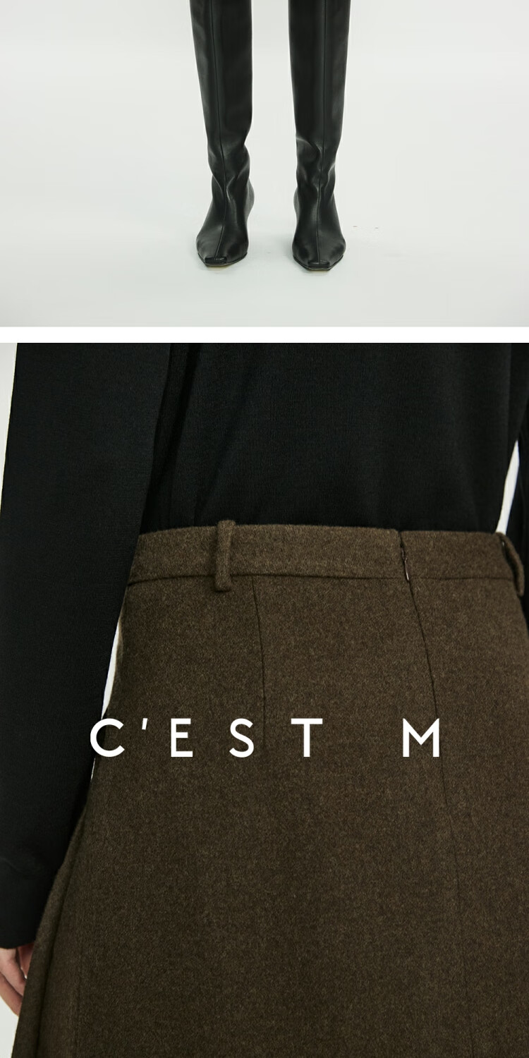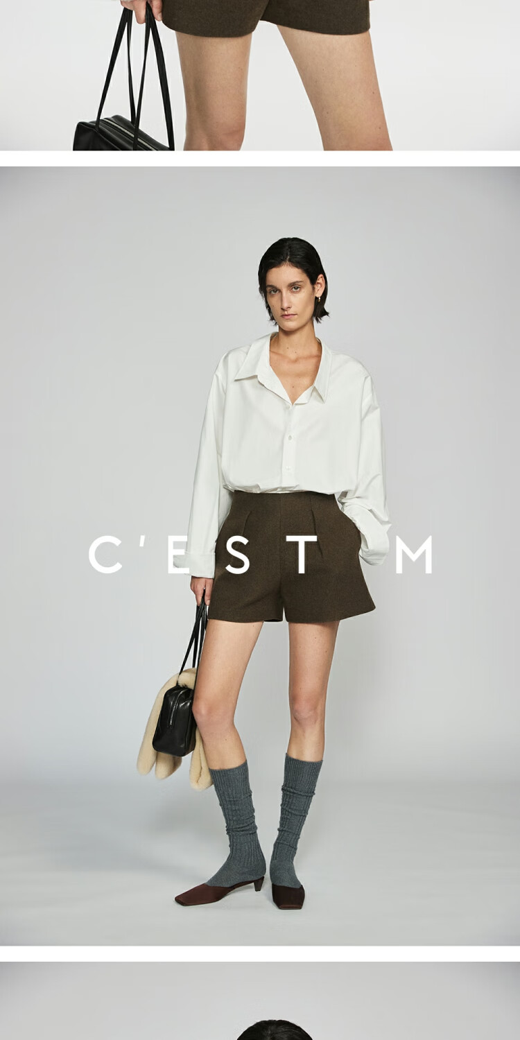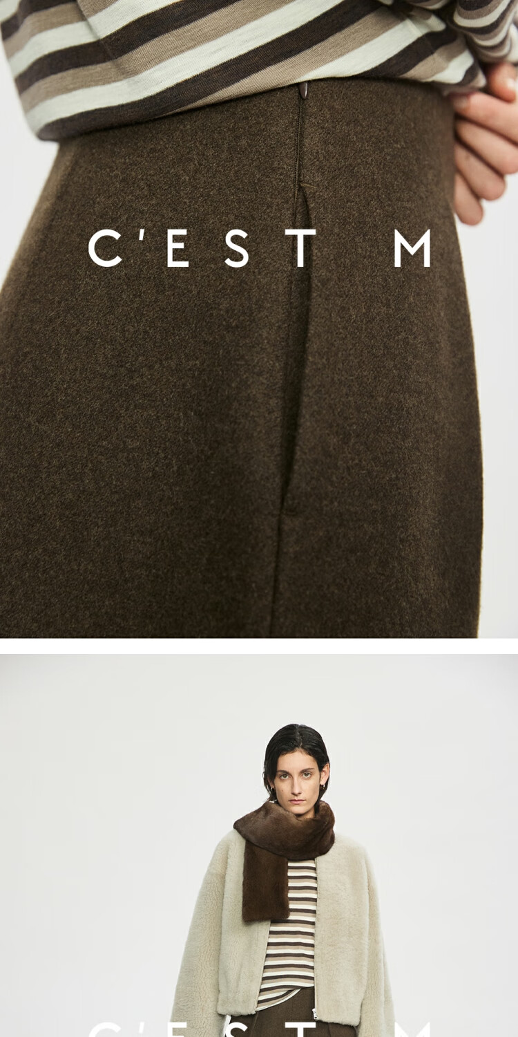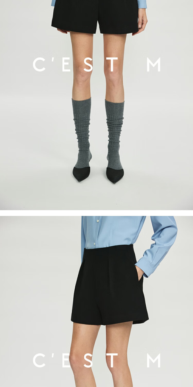 C EST M丨M1U style show intellectual style Exquisite and elegant wool pleated midi skirt & bud shorts Cuban brown green (shorts) S Ready in stock